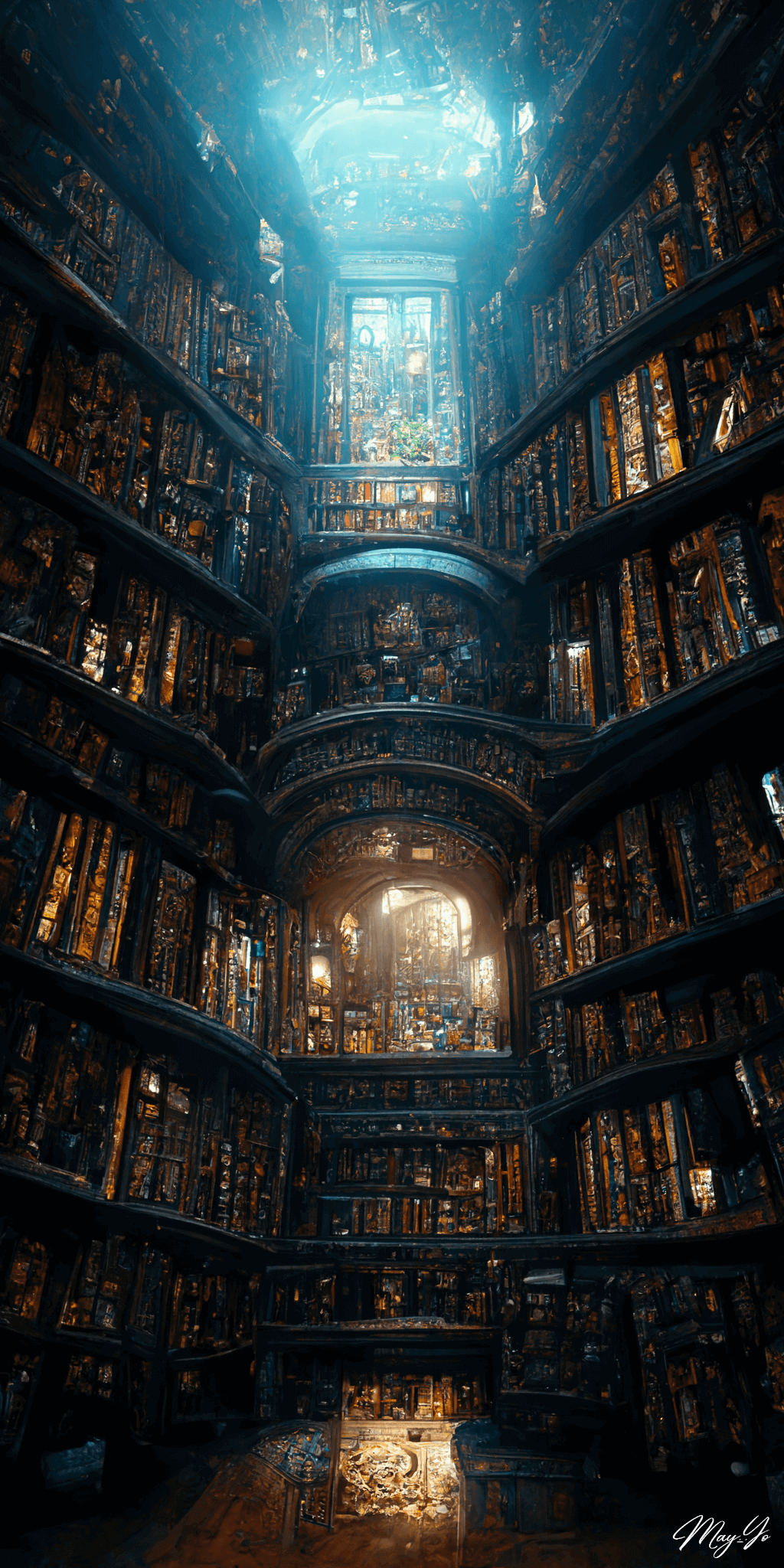 荘厳な魔法図書館のイラスト壁紙・待受画像 -