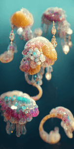宝石でできたクラゲのイラスト壁紙・待受画像