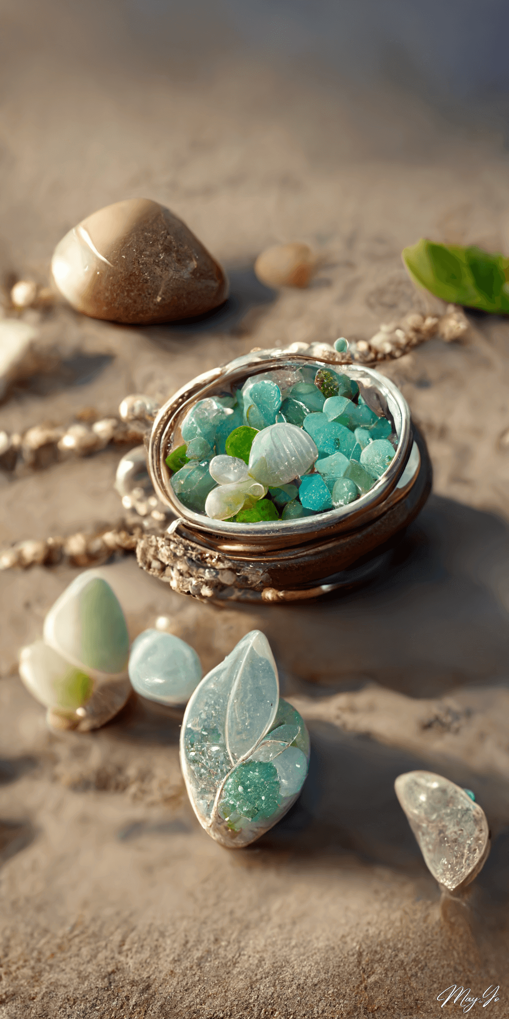 - イラスト生成に使用した呪文(プロンプト):seaglass,jewelry ほか