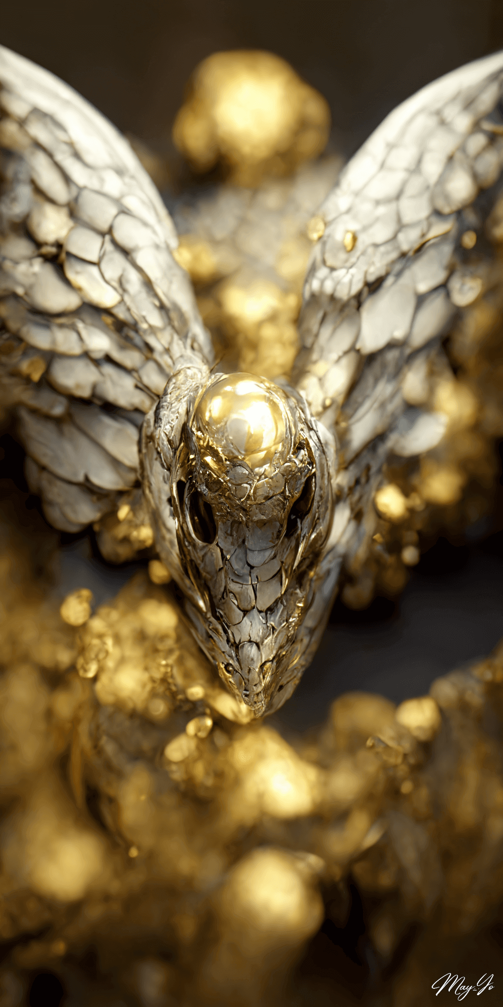 白い翼と金をあしらった豪華な宝飾品をイメージしたイラスト