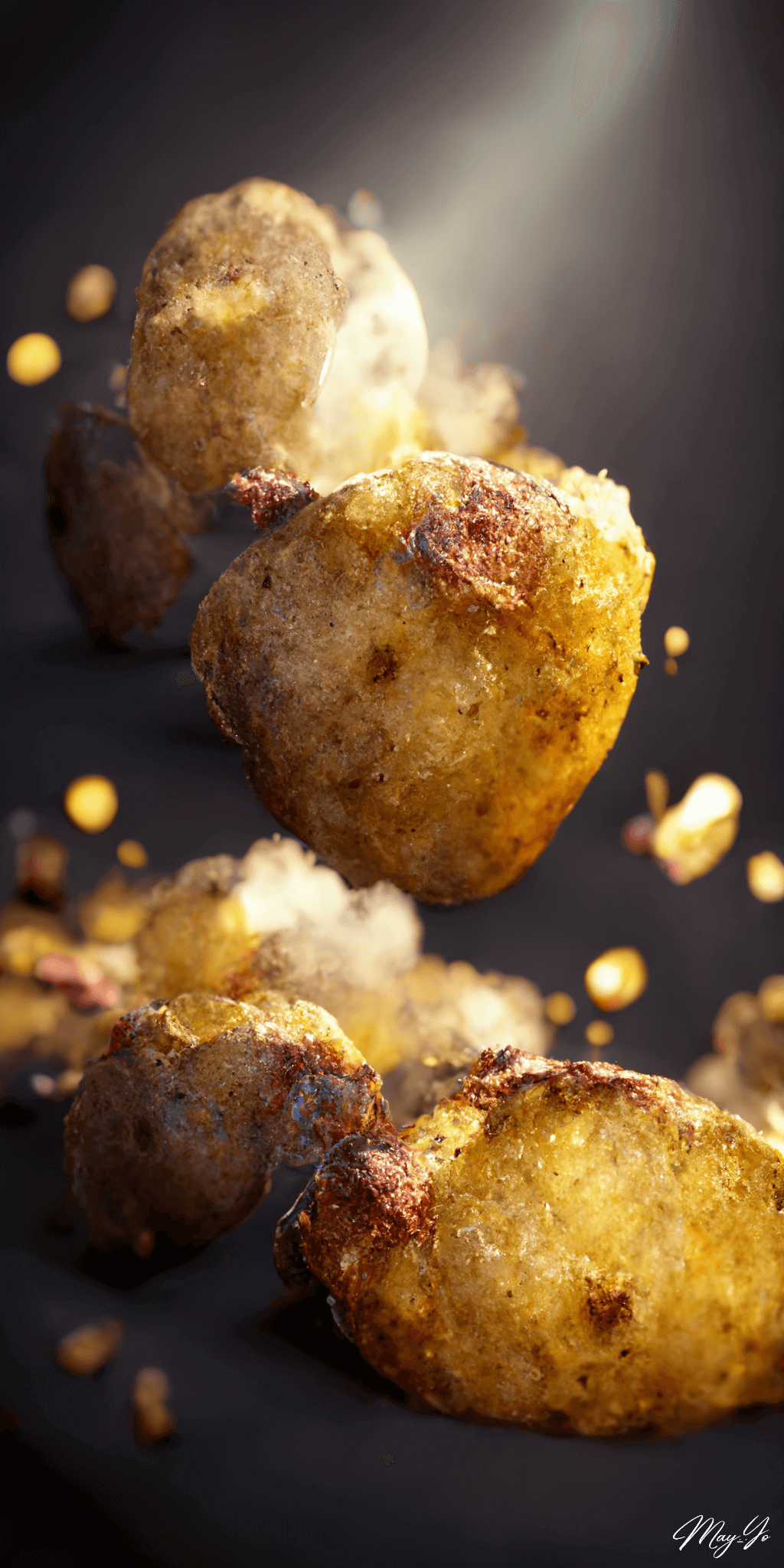 砂糖がけドーナツやカップケーキのイラストが美味しそうにできたので、フード系もテーマにしたいと考えてベイクドポテトのイラストを作成しました。皮つきでホクホクしていそうなポテトに光が当たって湯気のように熱々な印象です。ジャーマンポテトよりもポテトまるごとの、じゃがバターのような芋感とさりげないベーコンがマッチしています。