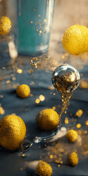 空中で果物からソーダを作る魔法風イラスト壁紙・待受画像
