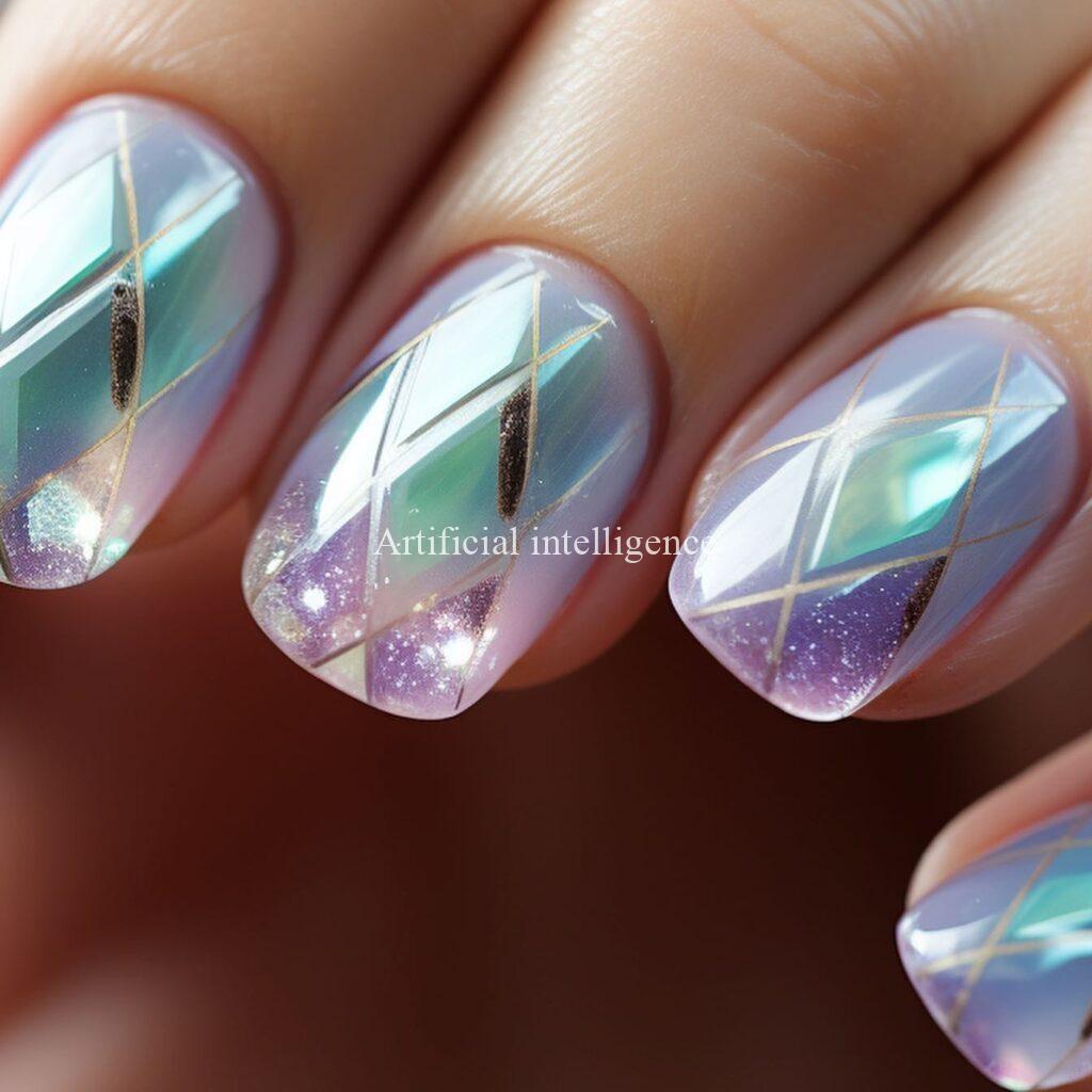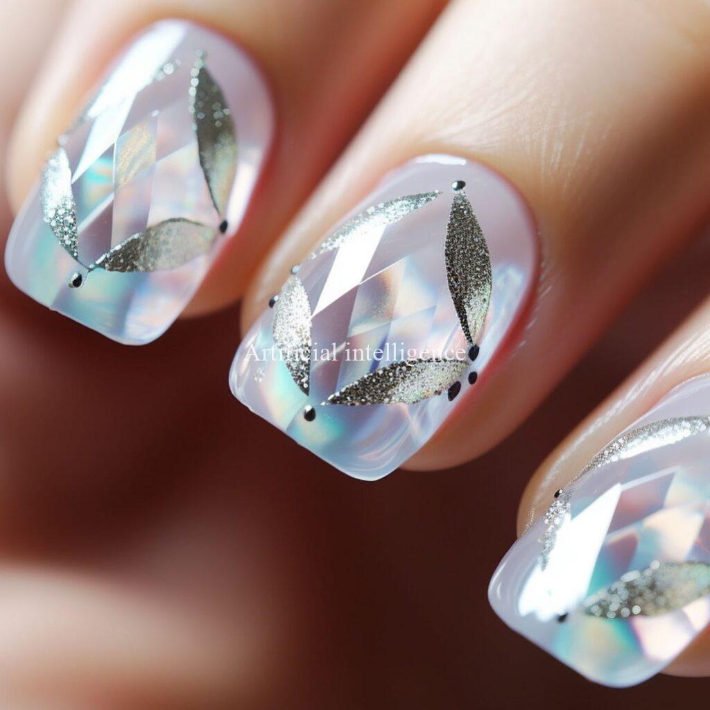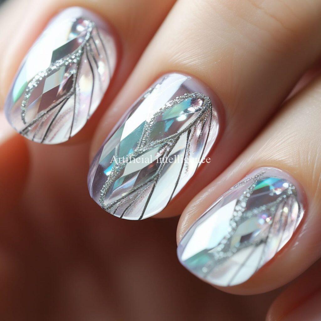 ひんやり輝くガラスのネイルをコンセプトにAIイラストツールで架空の画像を生成しました。