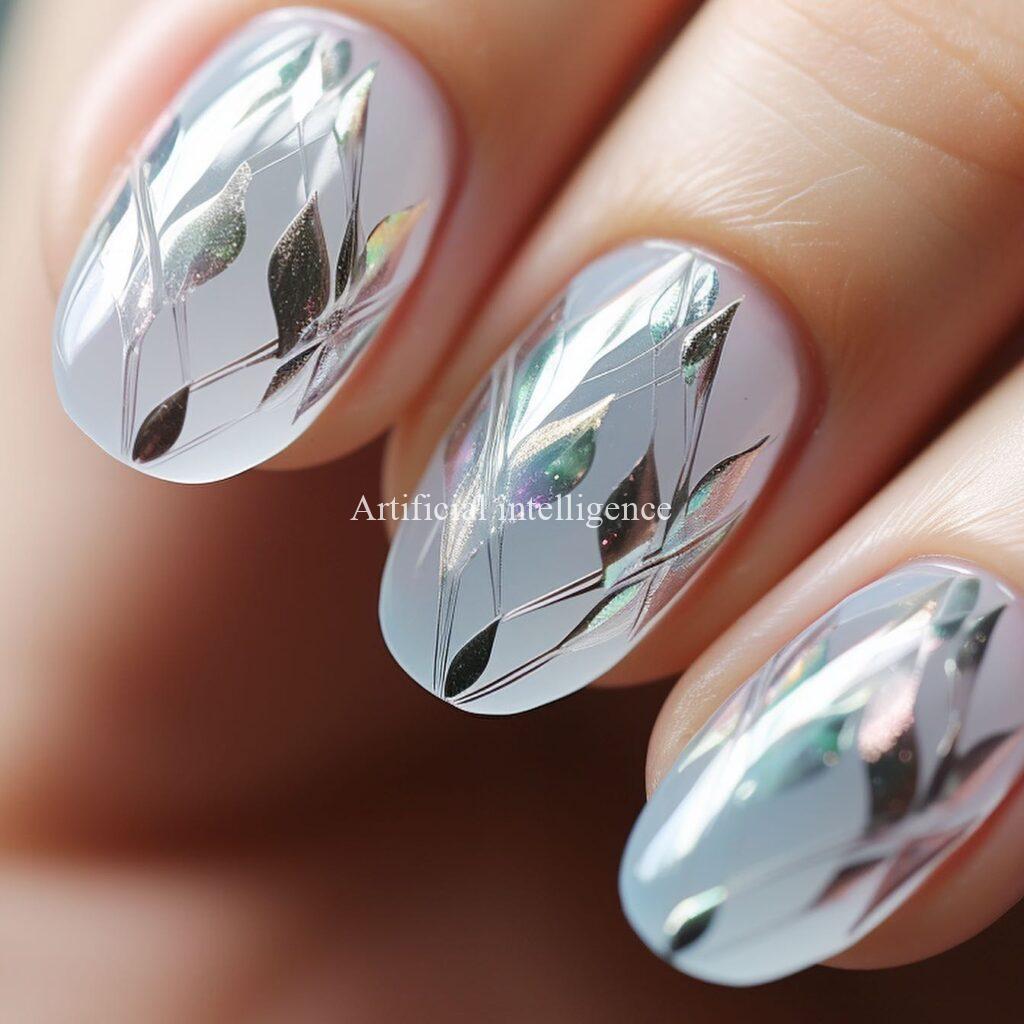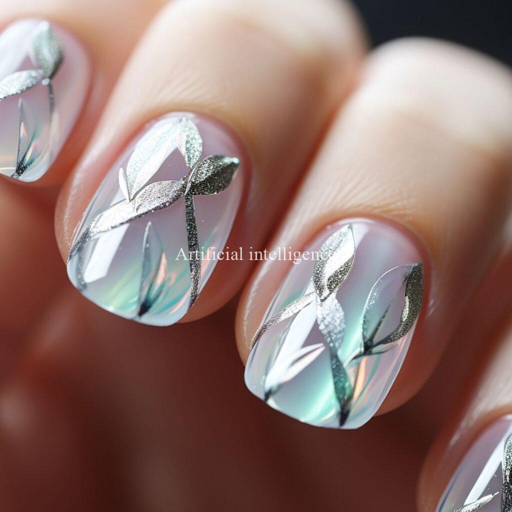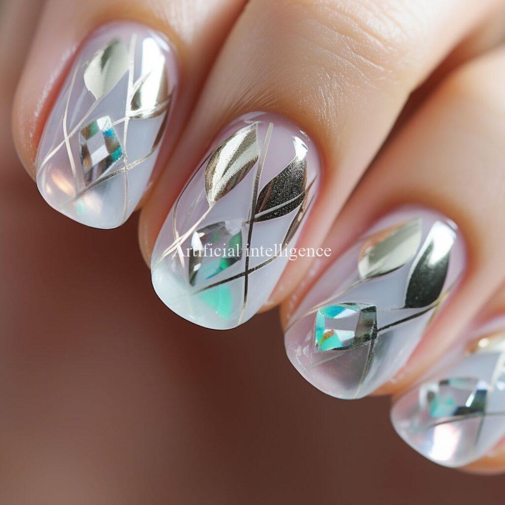 ひんやり輝くガラスのネイルをコンセプトにAIイラストツールで架空の画像を生成しました。