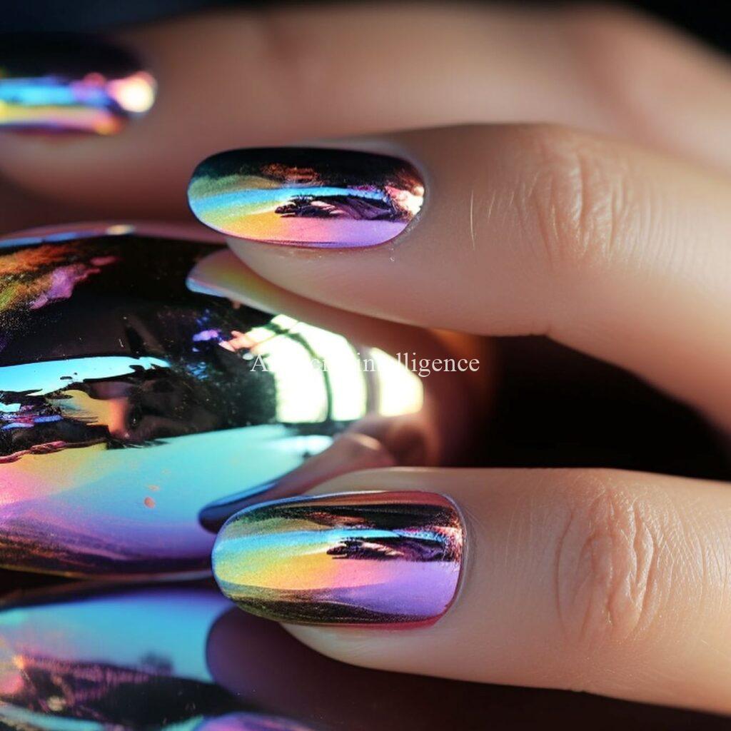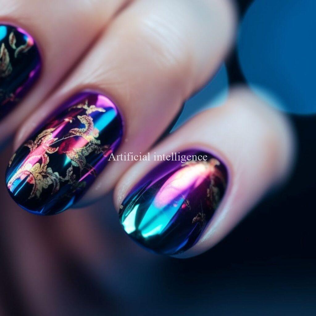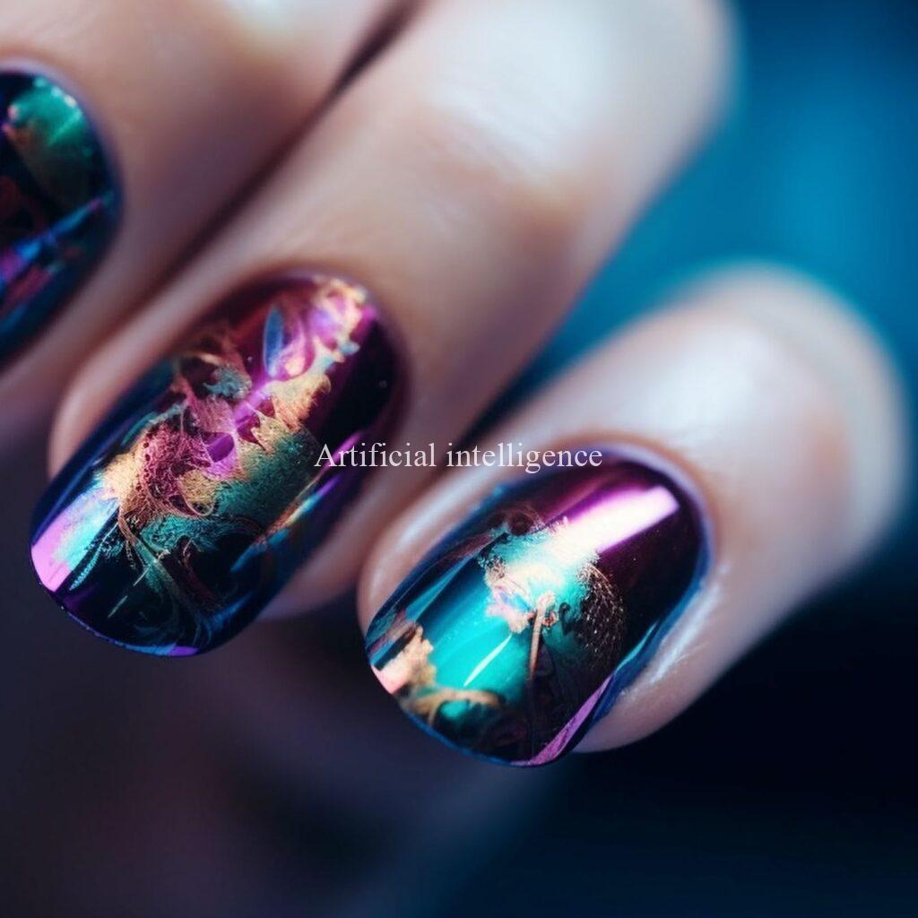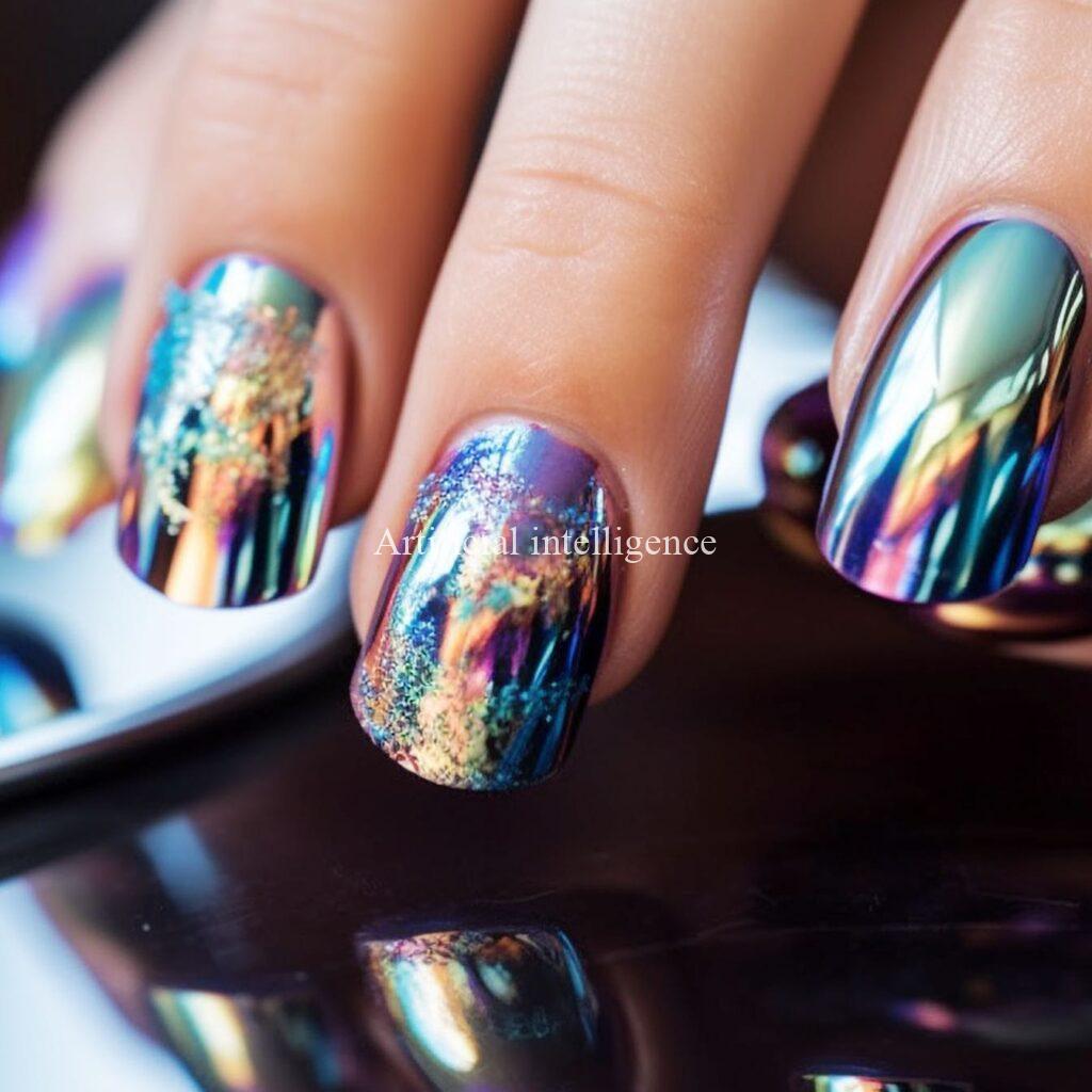 mysterious metalic mirror nails by AI