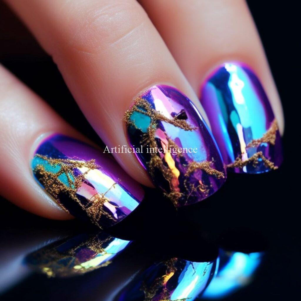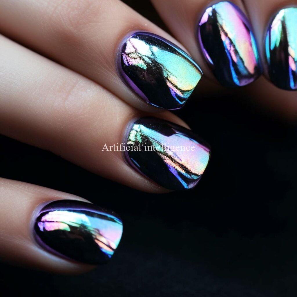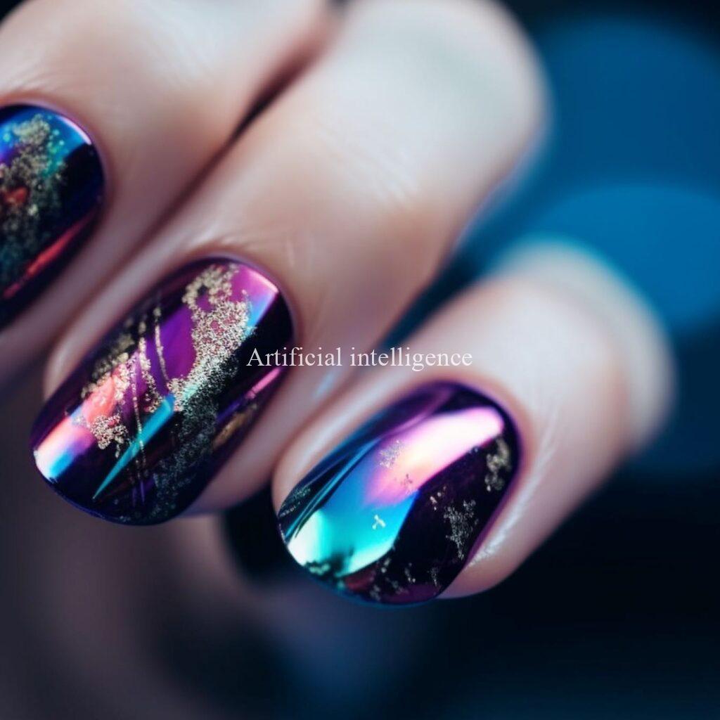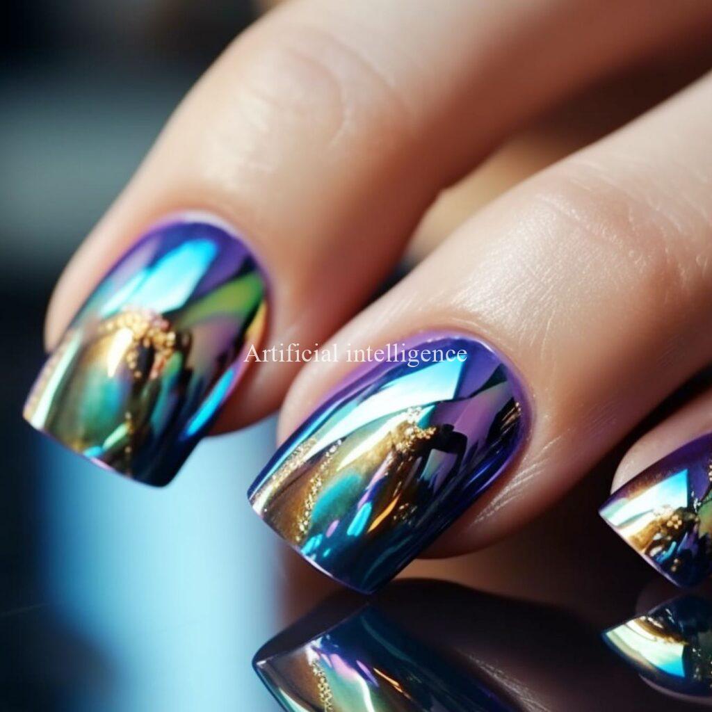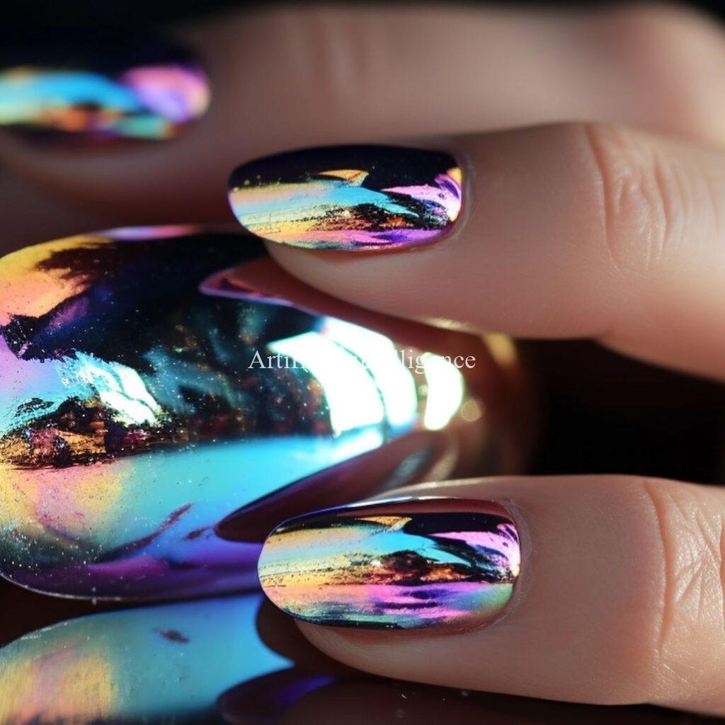 mysterious metalic mirror nails by AI