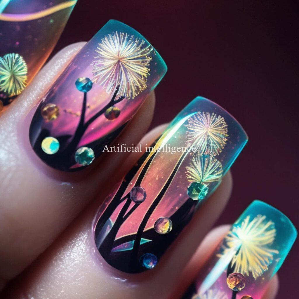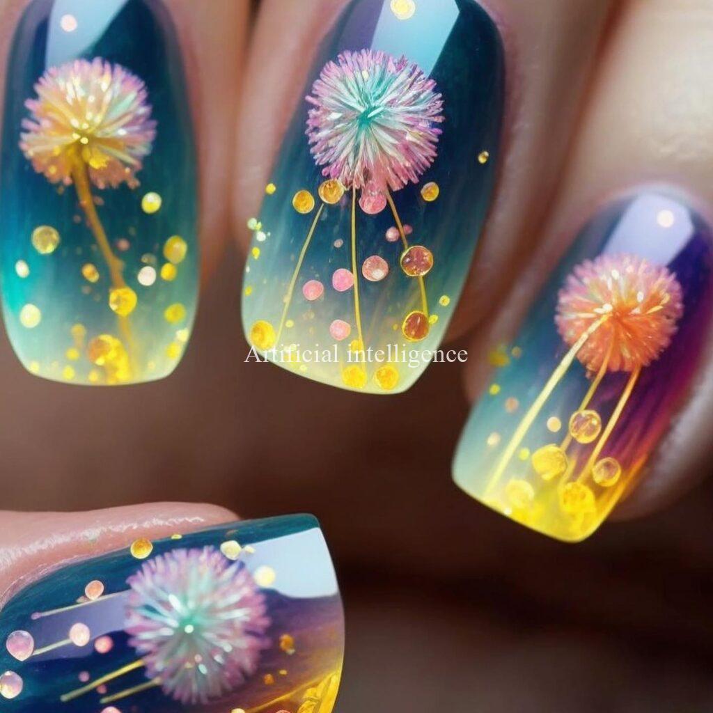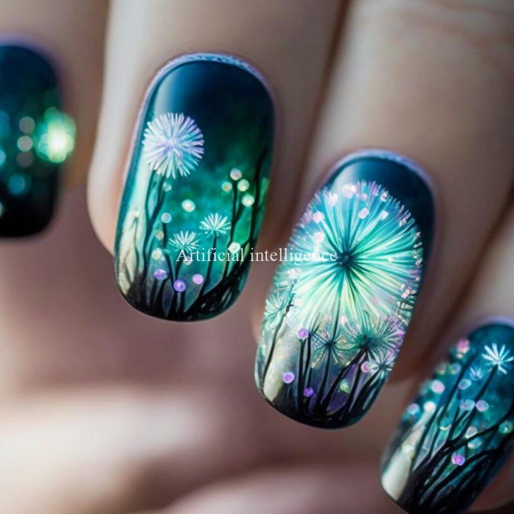 mysterious night dandelion nails by AI