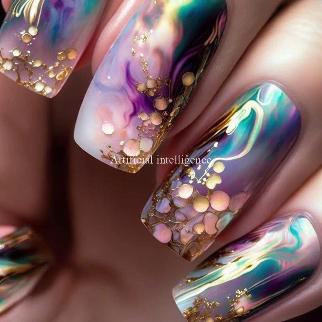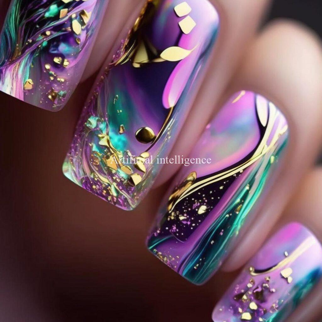 purple fluidart style nail by AI