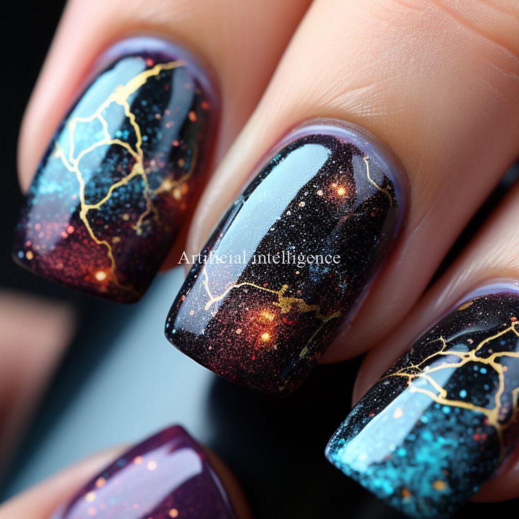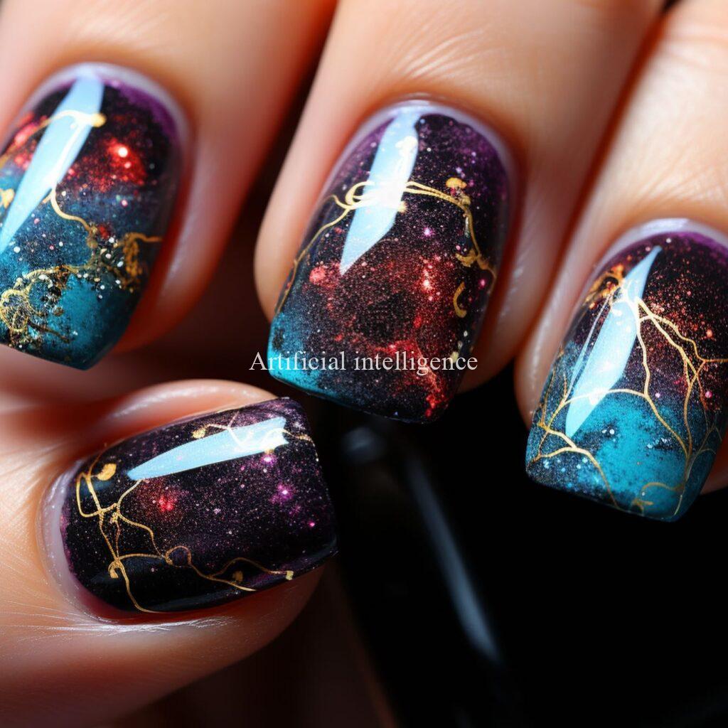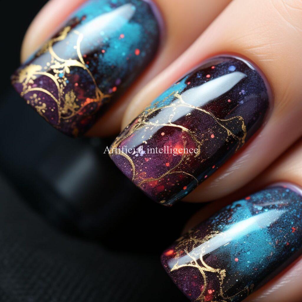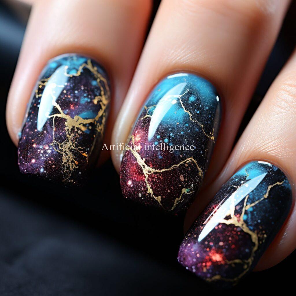 ミステリアスな星雲のネイルをコンセプトにAIイラストツールで架空の画像を生成しました。
