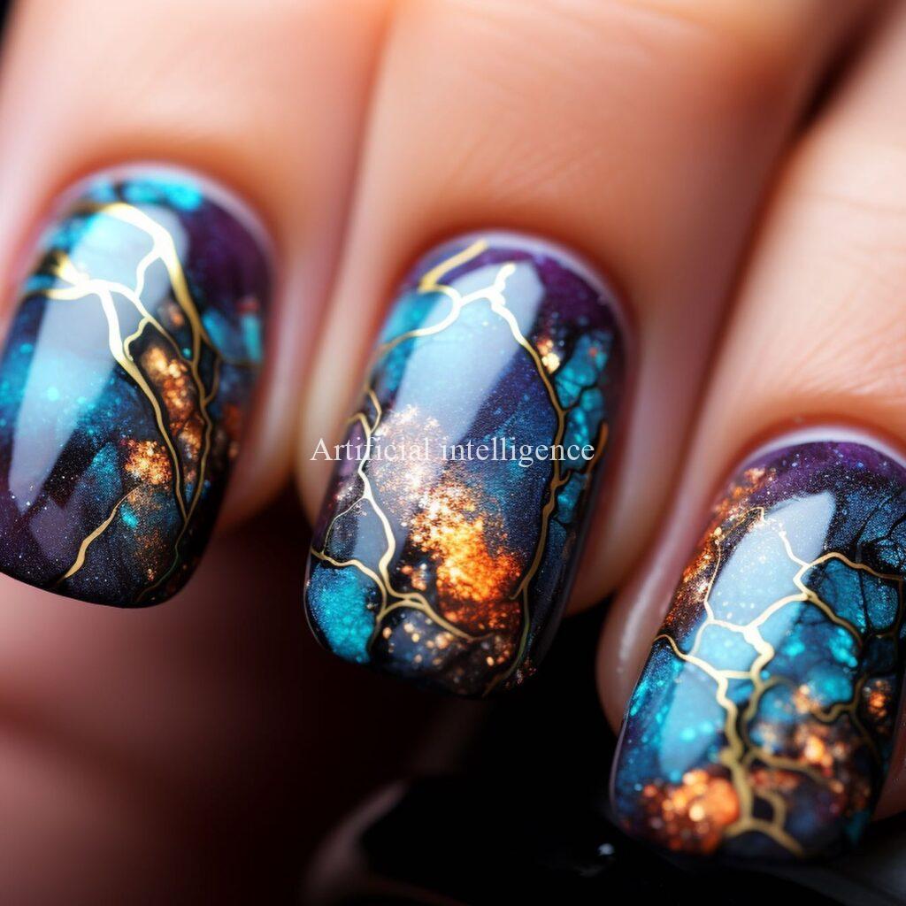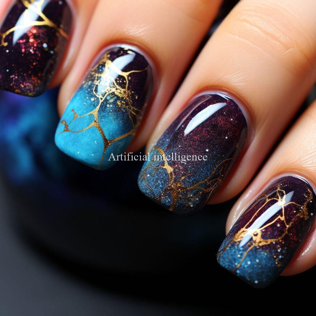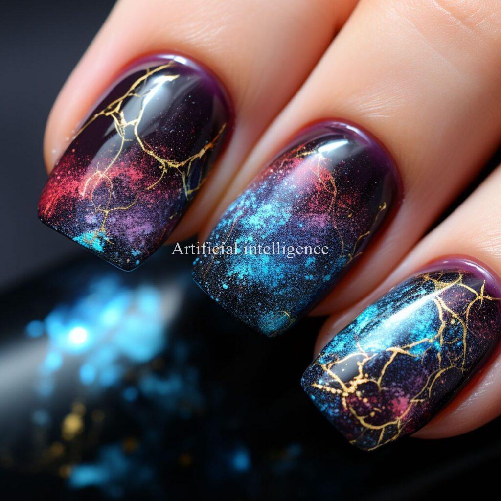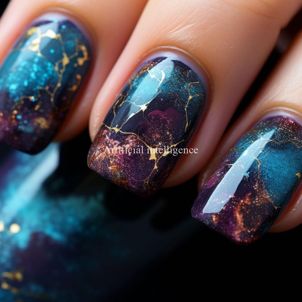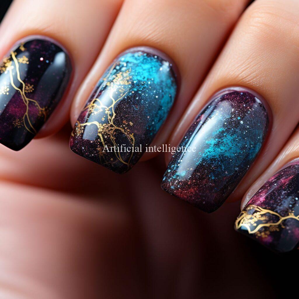 ミステリアスな星雲のネイルをコンセプトにAIイラストツールで架空の画像を生成しました。