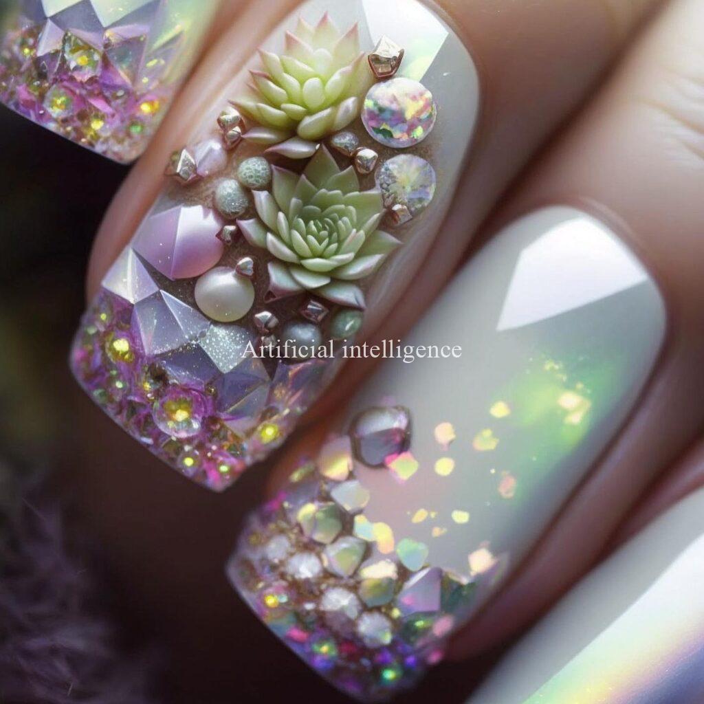 多肉植物のネイルコレクションをコンセプトにAIイラストツールで架空の画像を生成しました。