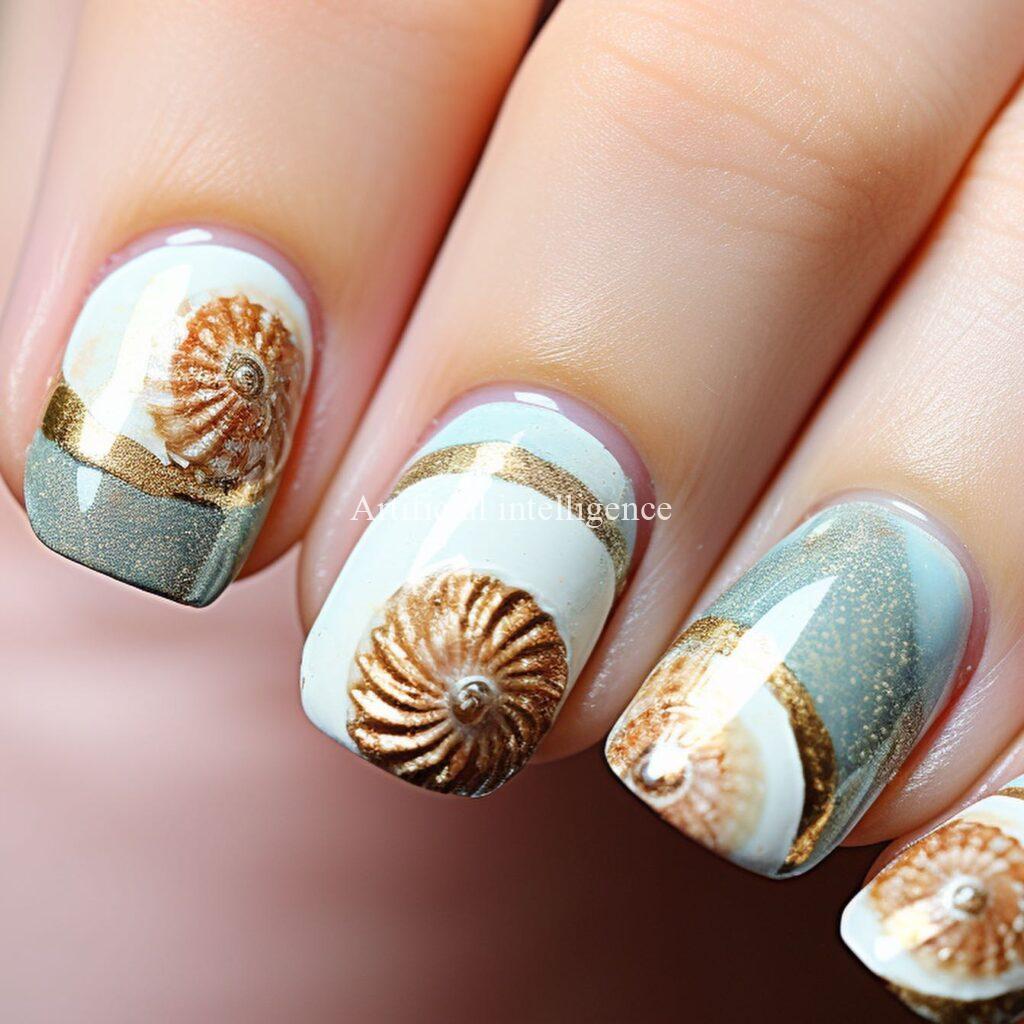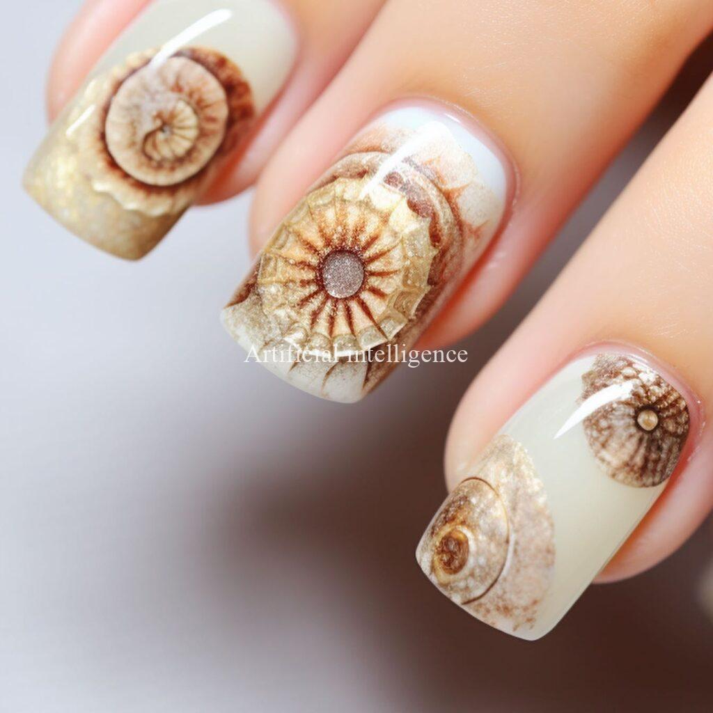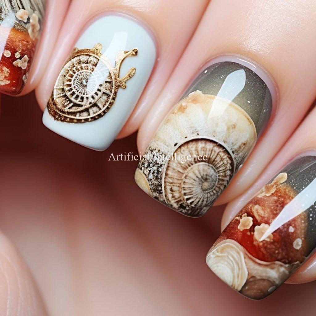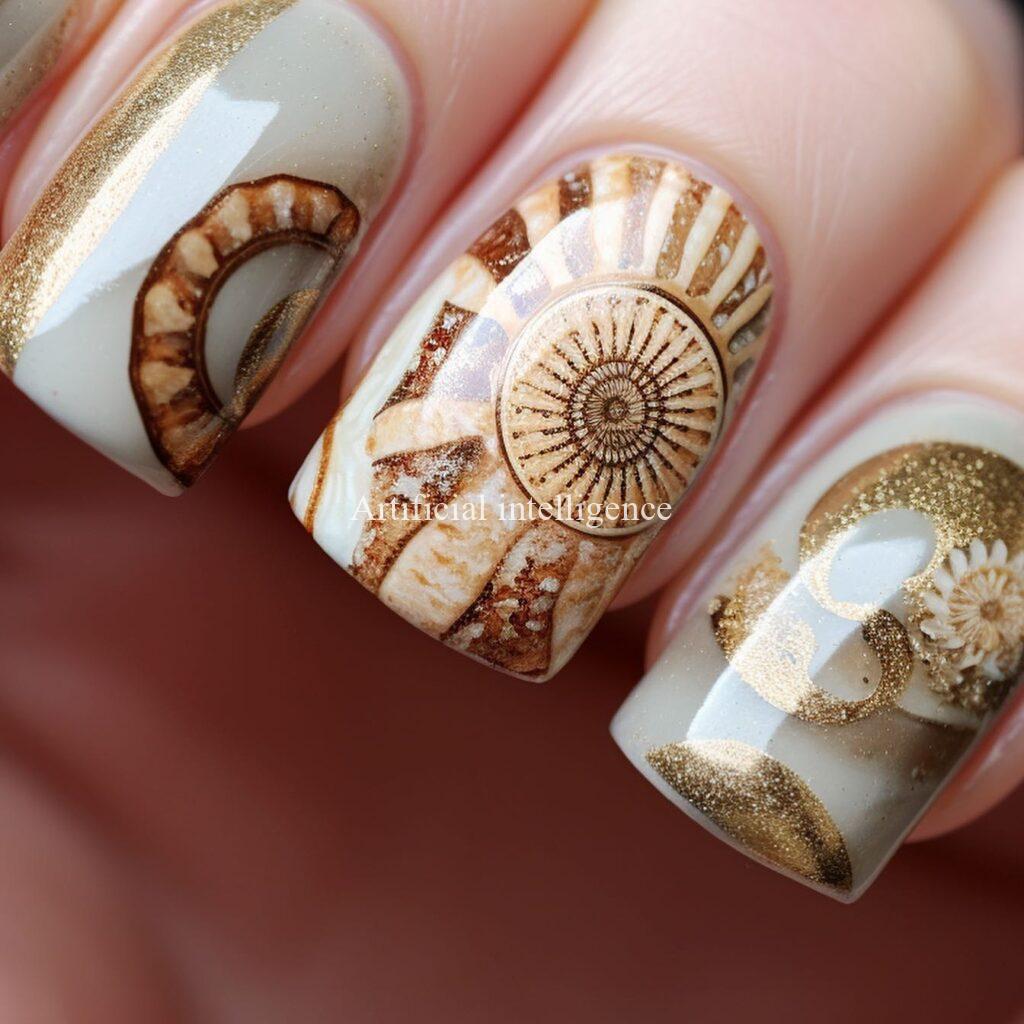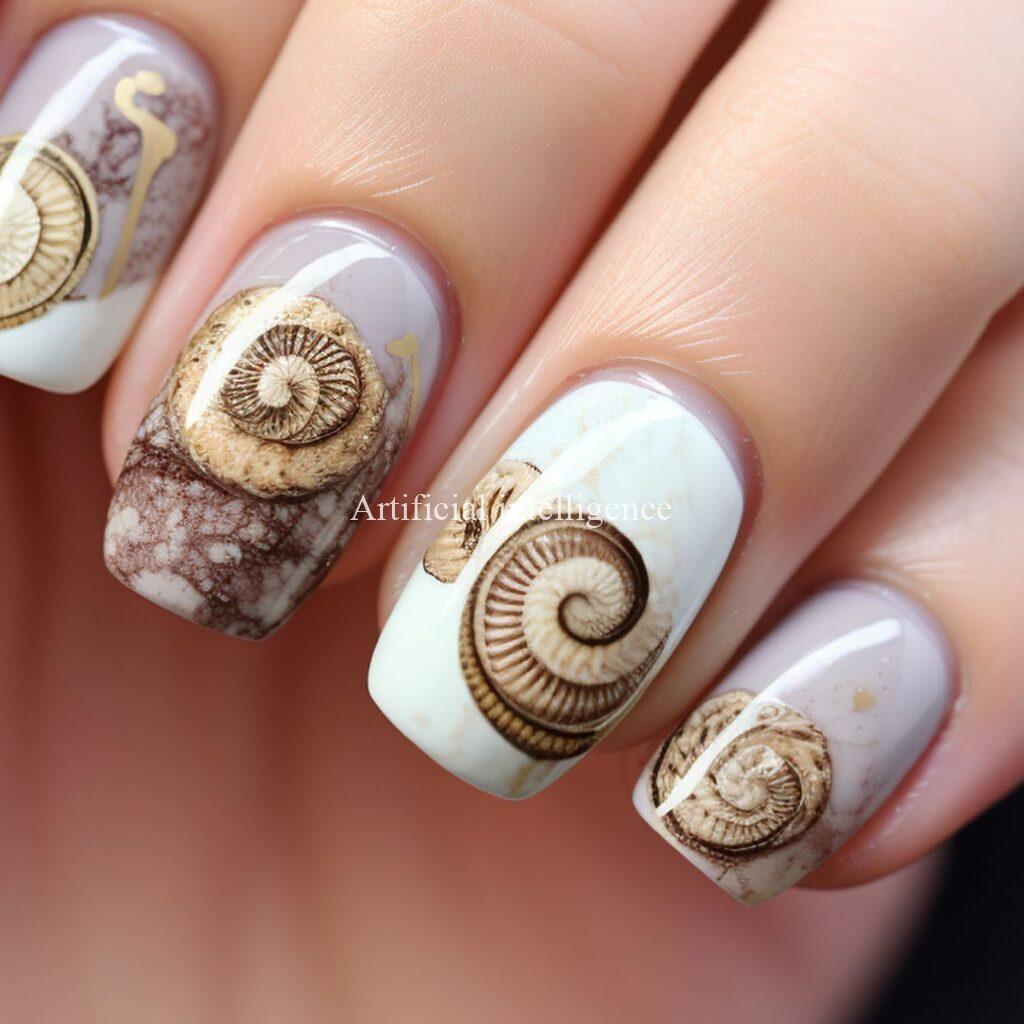 アンティークなアンモナイト風ネイルをコンセプトにAIイラストツールで架空の画像を生成しました。