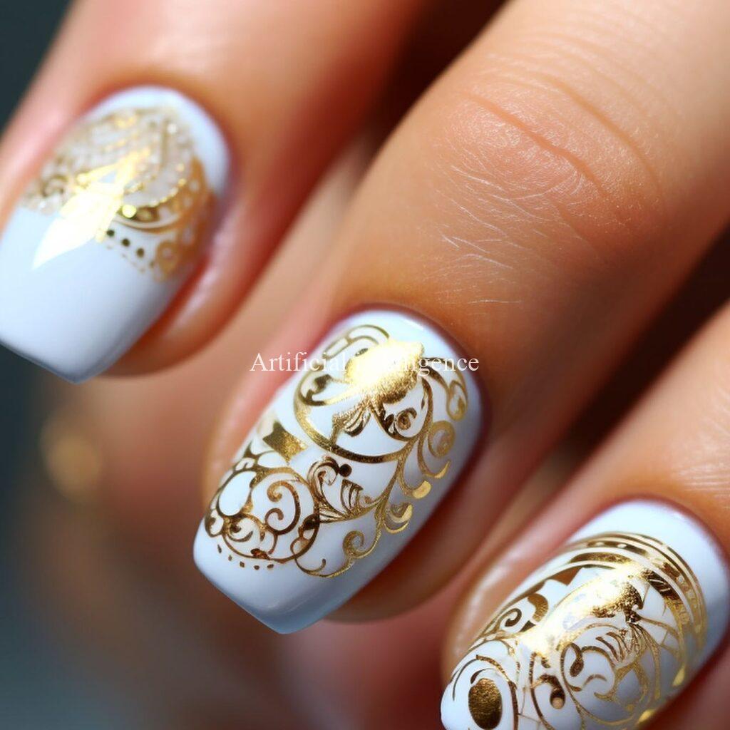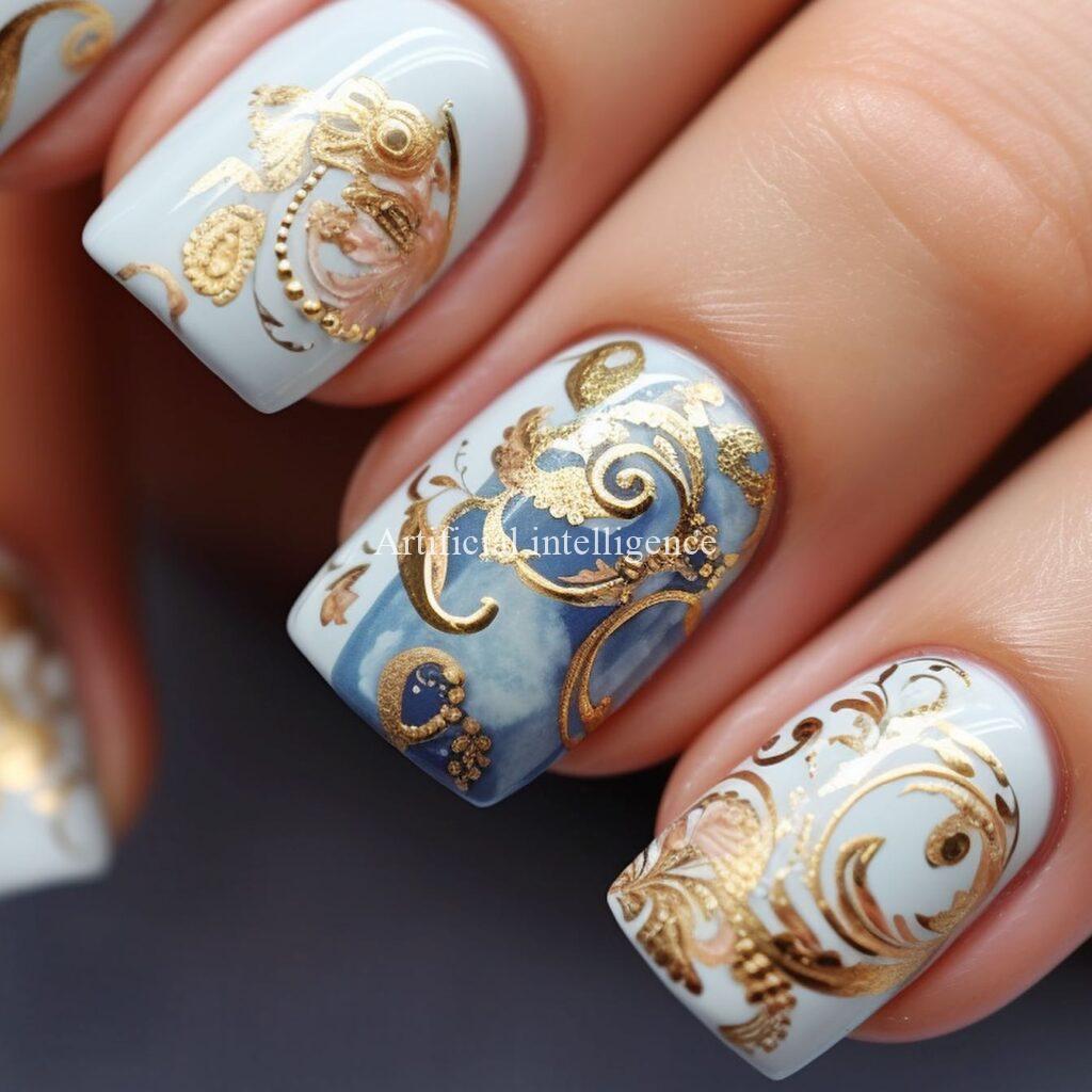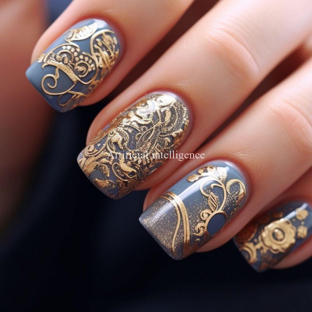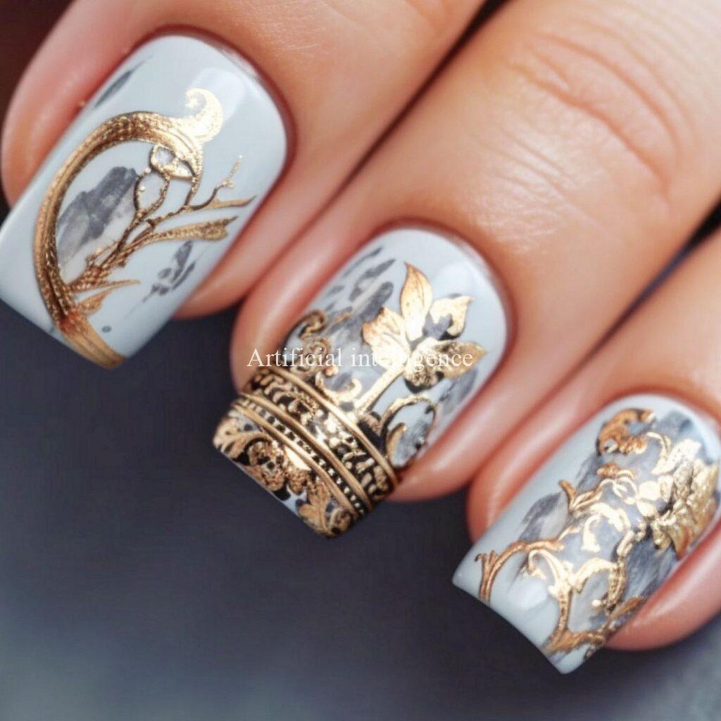 箔押し風ゴールドネイルをコンセプトにAIイラストツールで架空の画像を生成しました。
