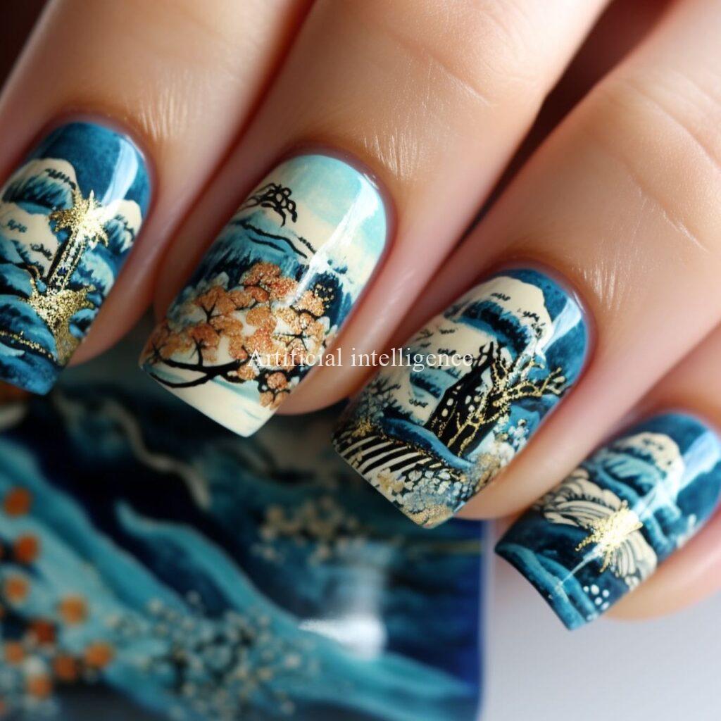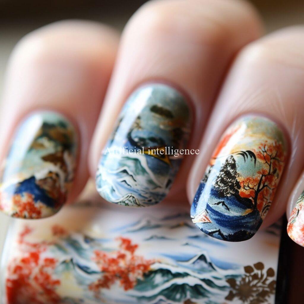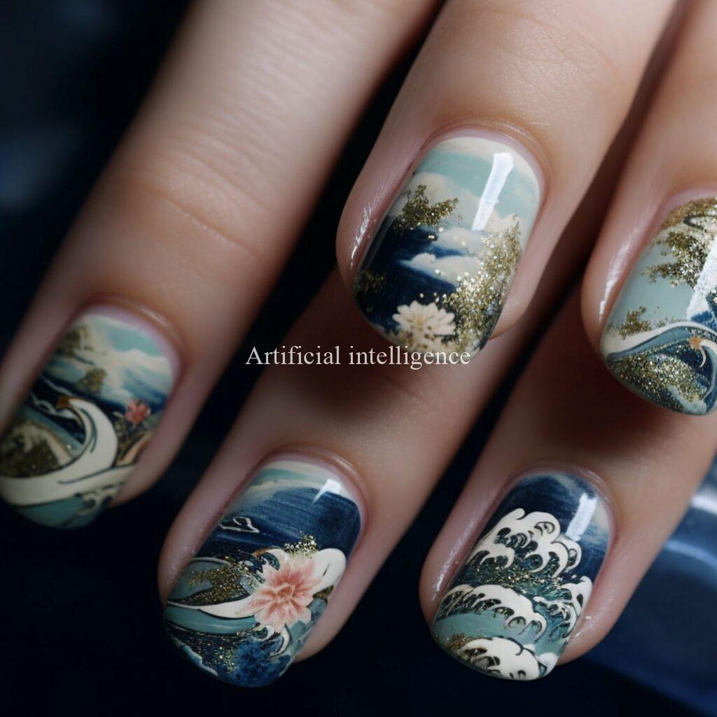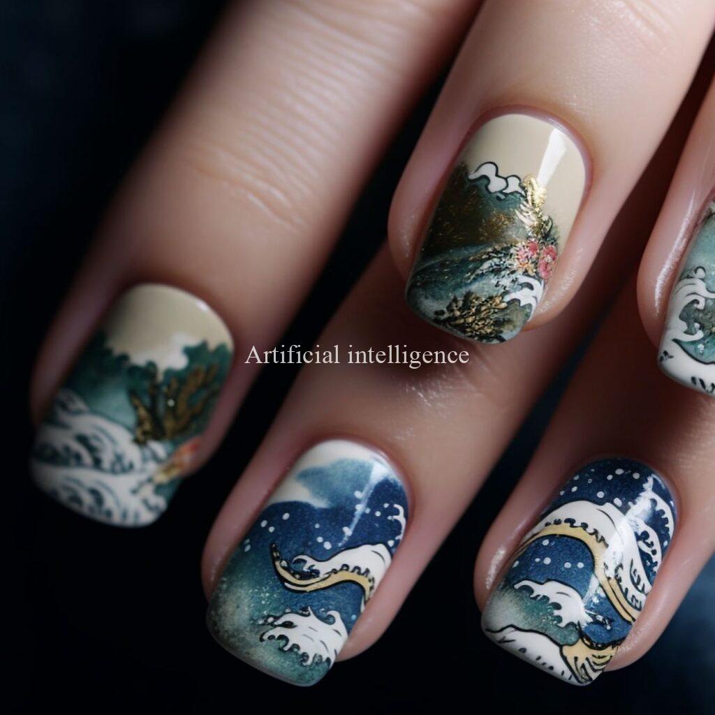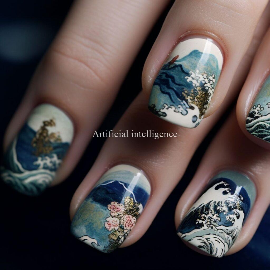 modern ukiyoe nails by AI