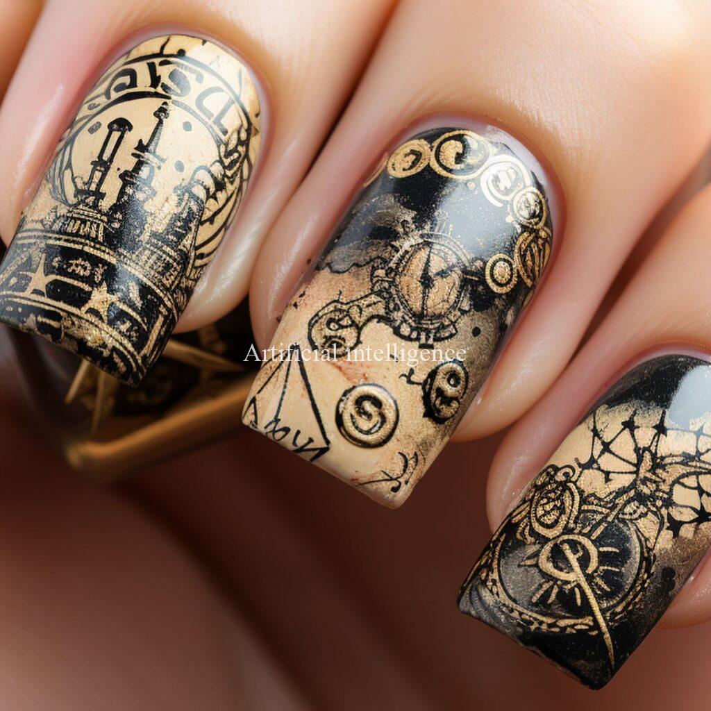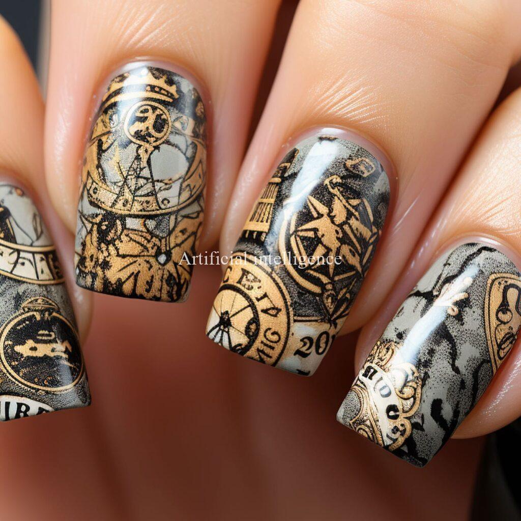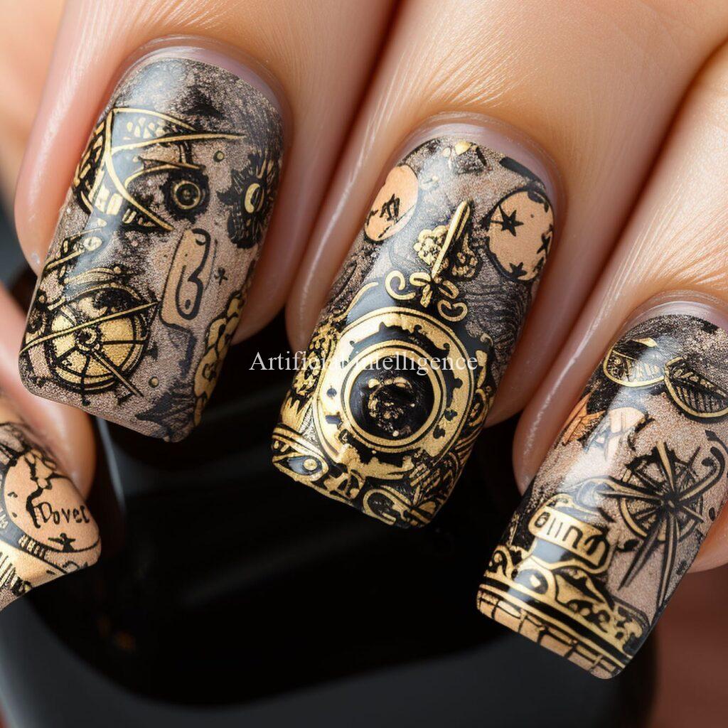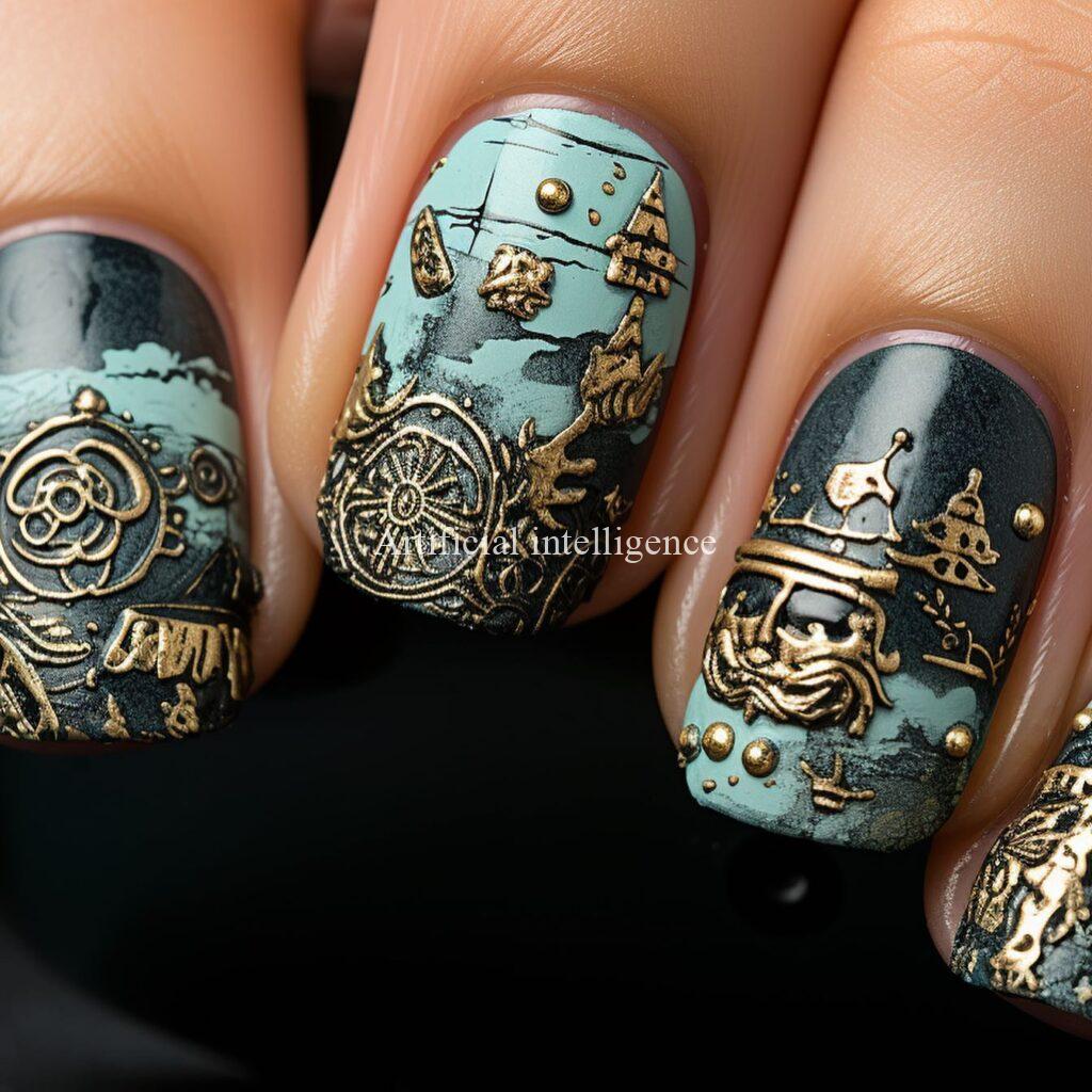 海賊と宝の地図イメージのネイル🏴☠️をコンセプトにAIイラストツールで架空の画像を生成しました。