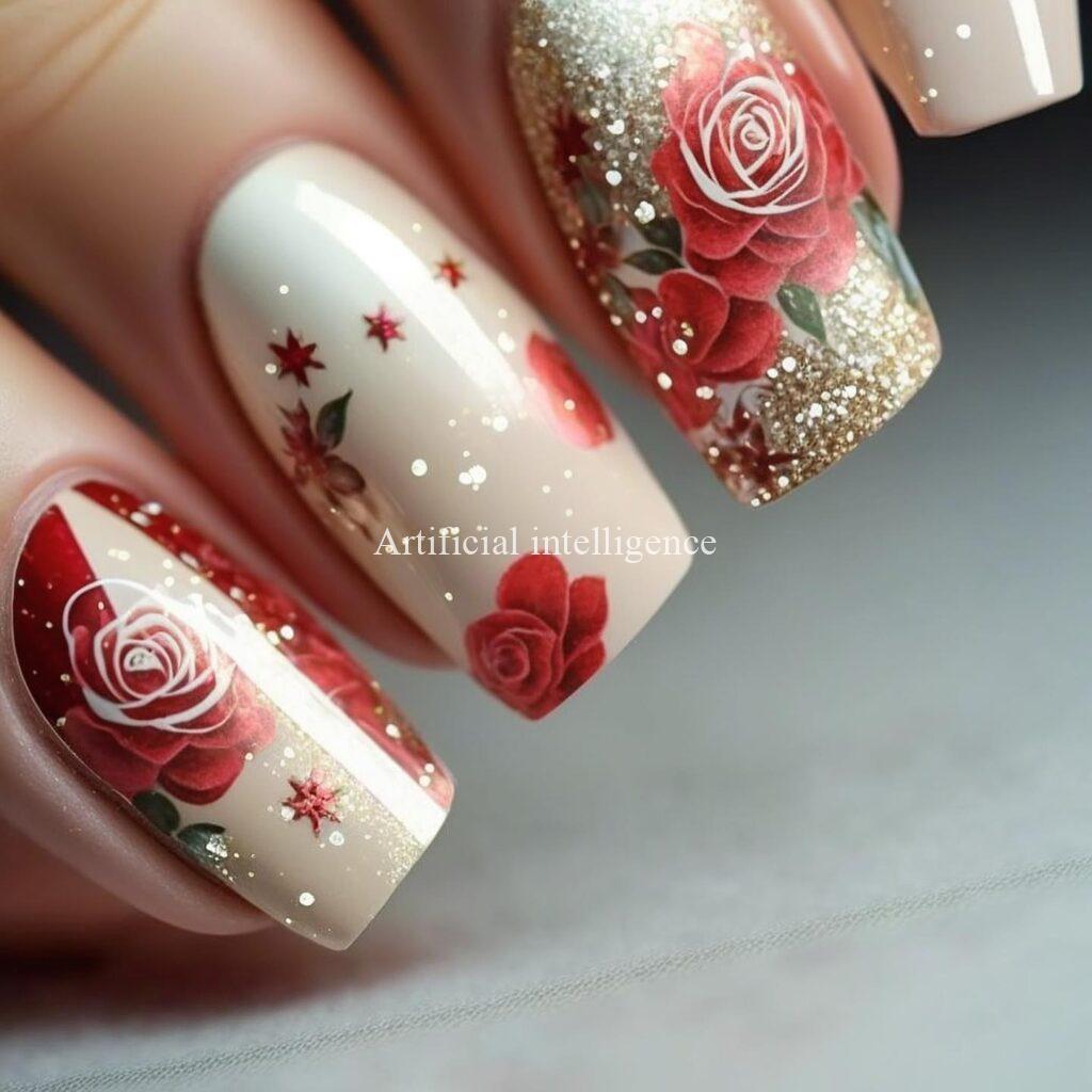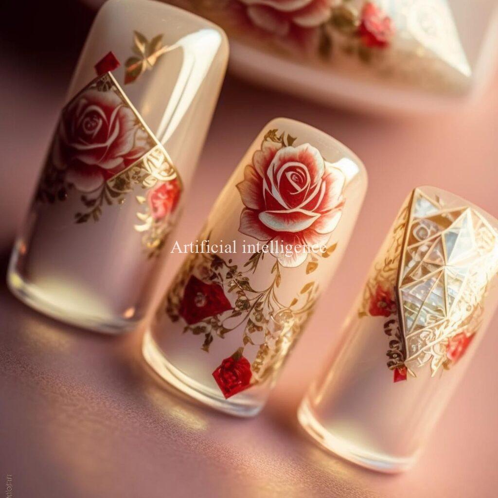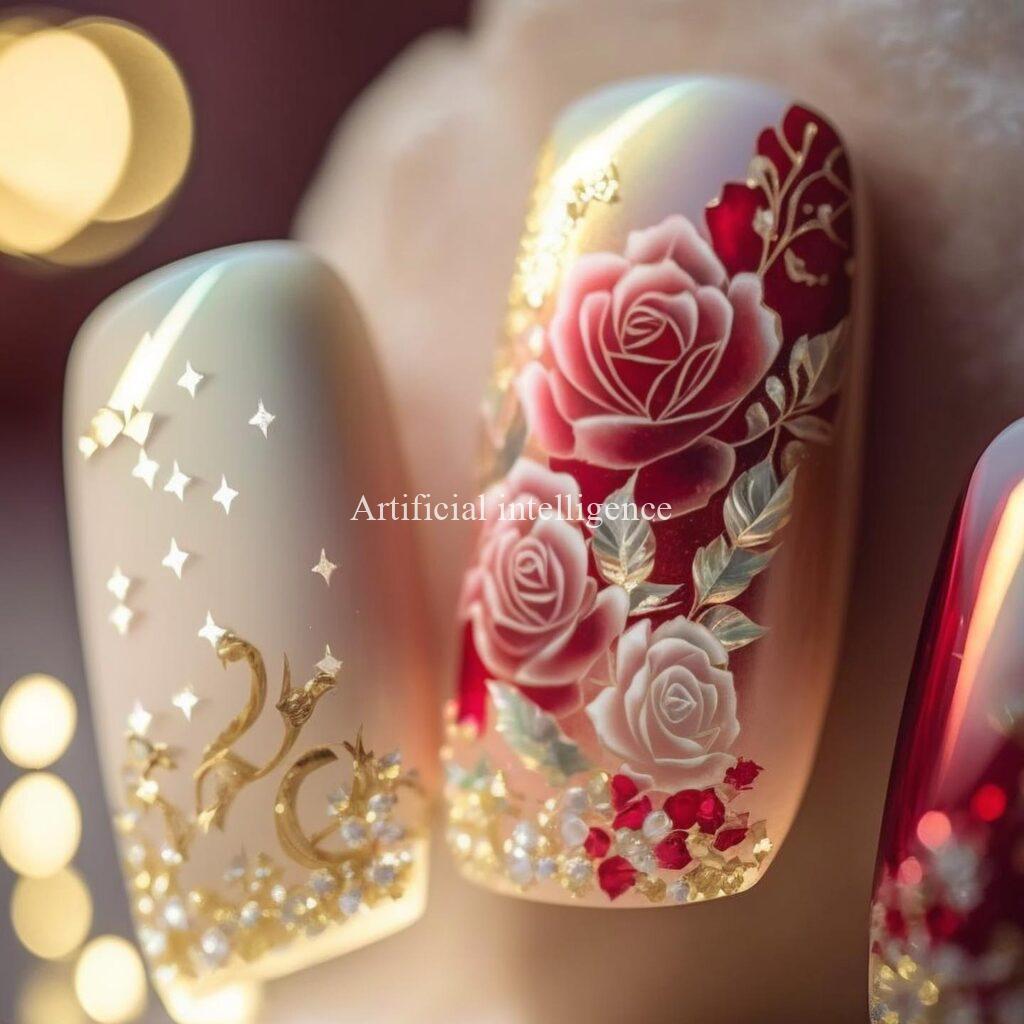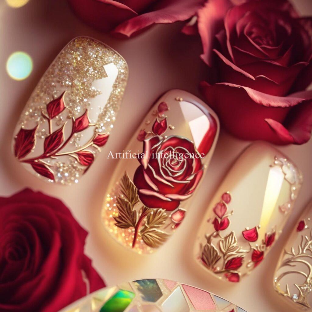 ばらのネイルをコンセプトにAIイラストツールで架空の画像を生成しました。