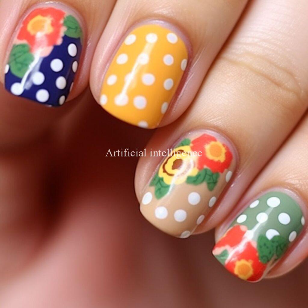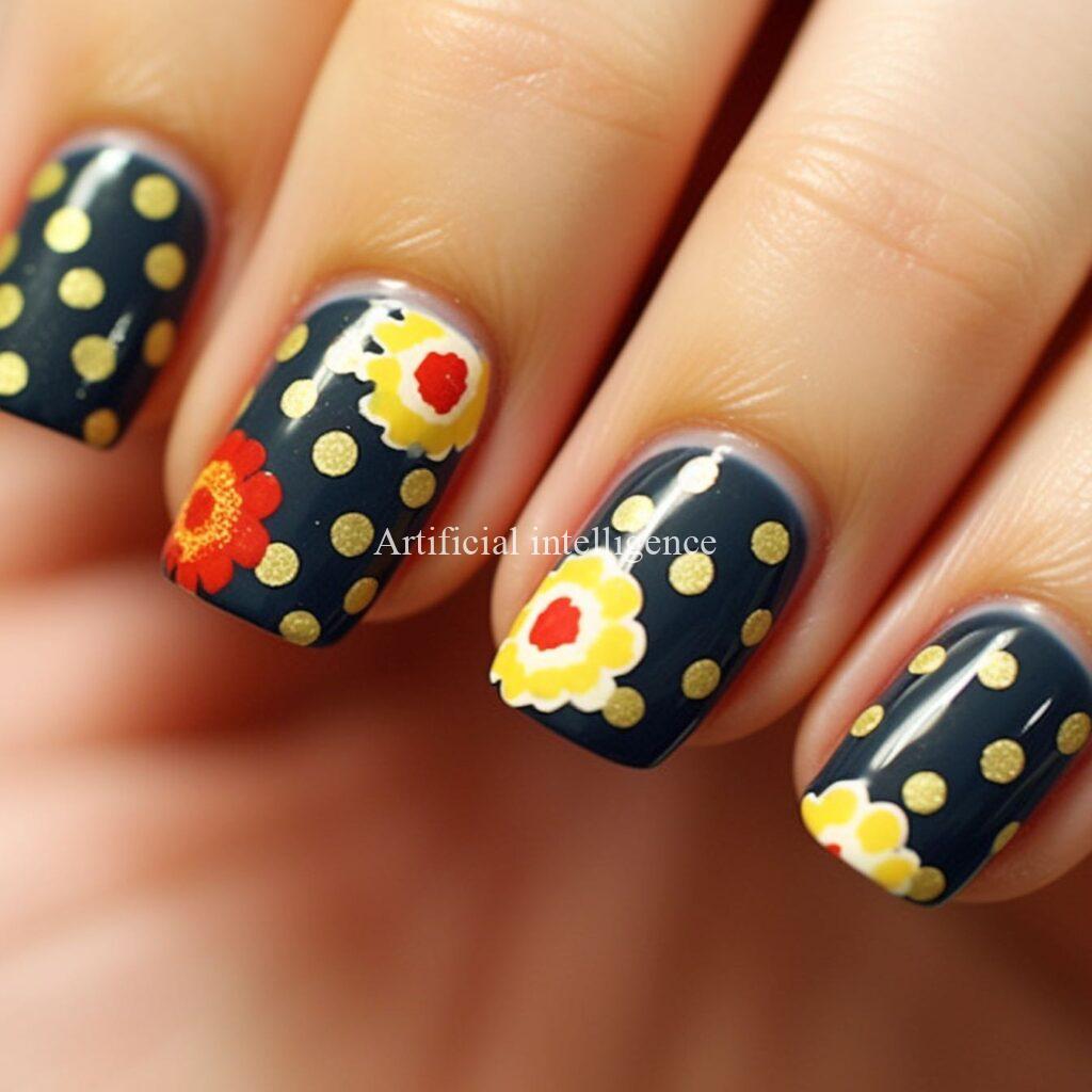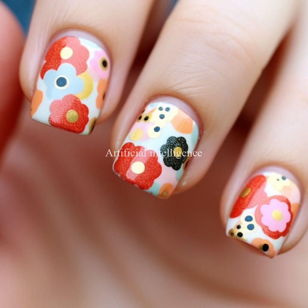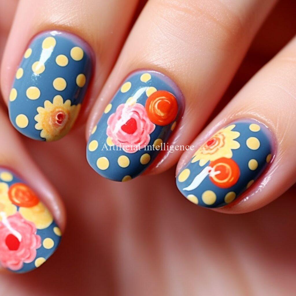 レトロなフラワードット柄ネイルをコンセプトにAIイラストツールで架空の画像を生成しました。