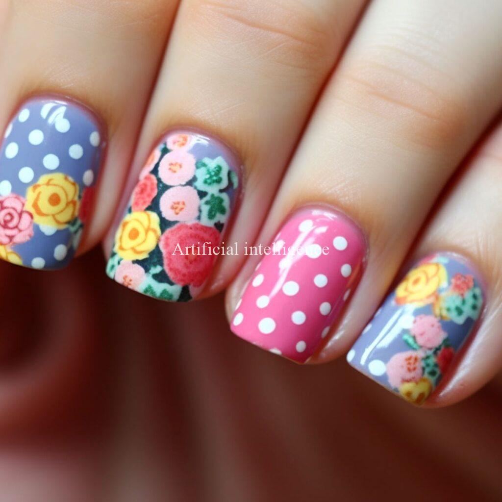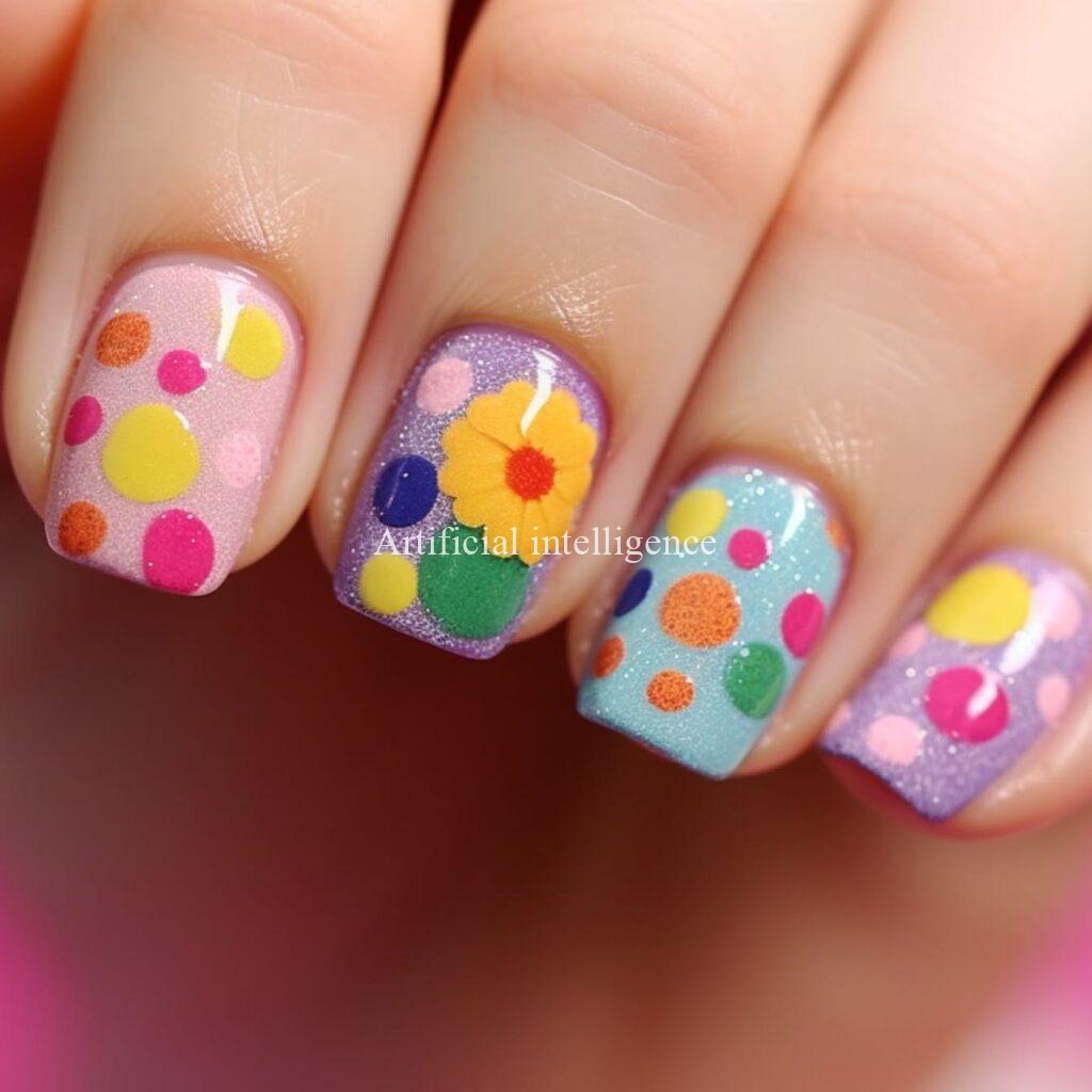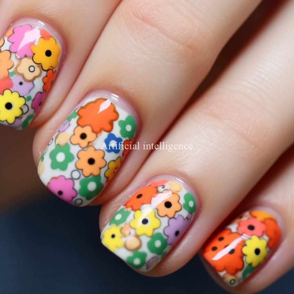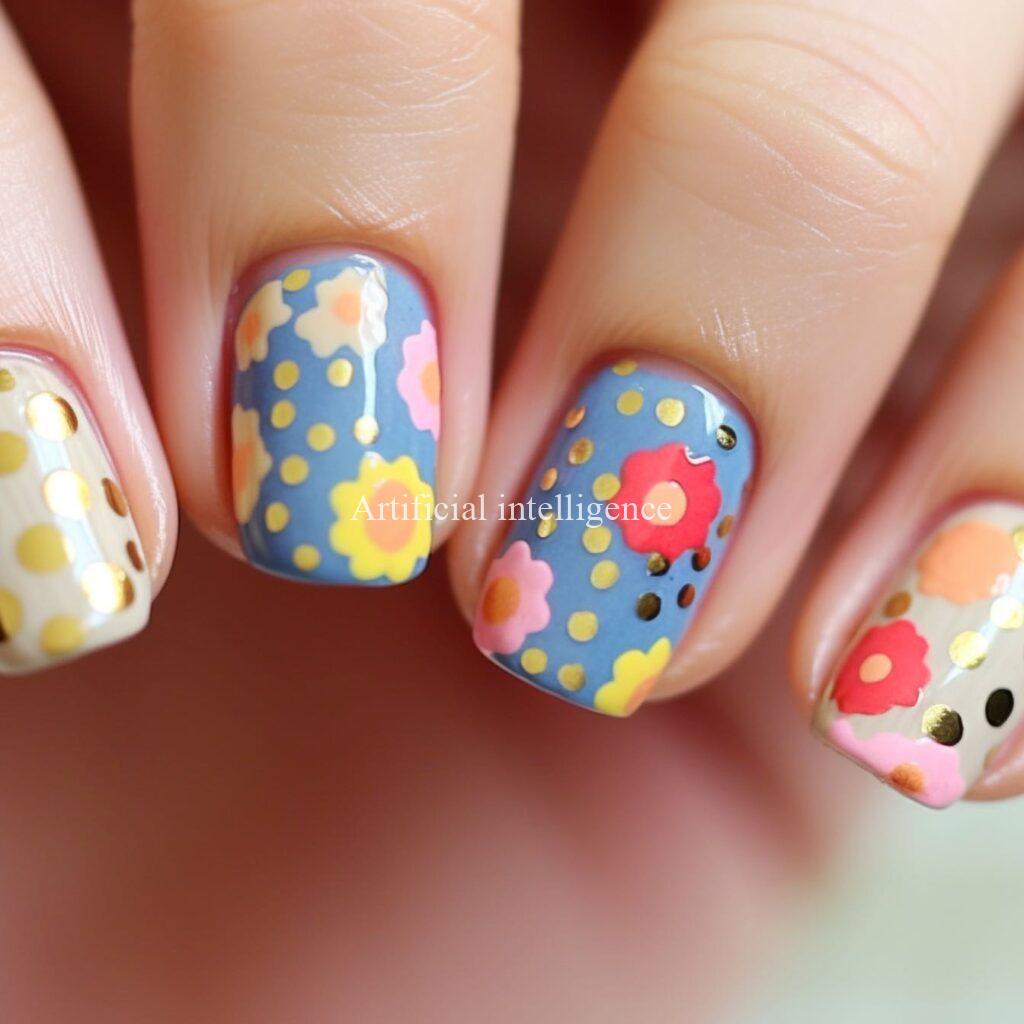 レトロなフラワードット柄ネイルをコンセプトにAIイラストツールで架空の画像を生成しました。