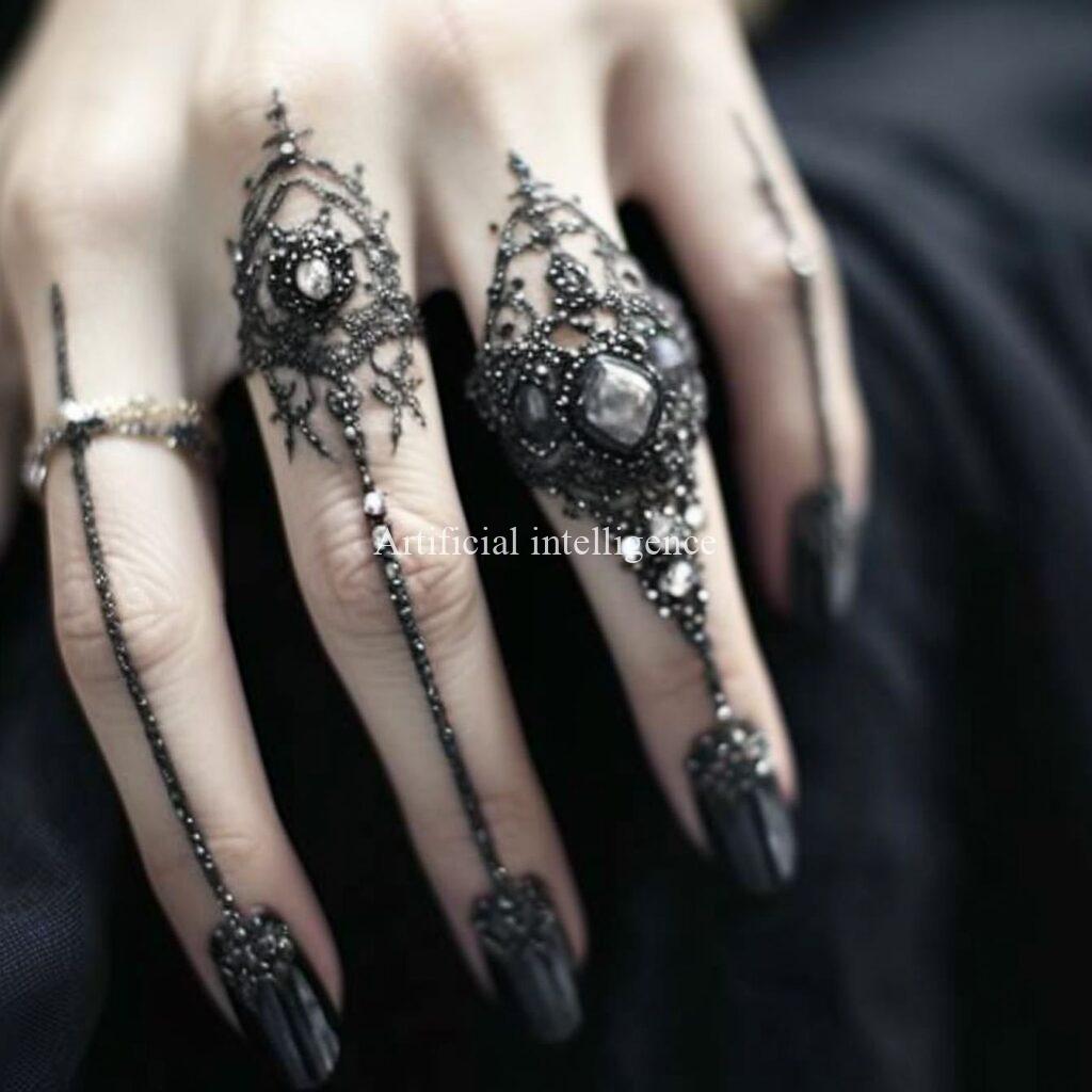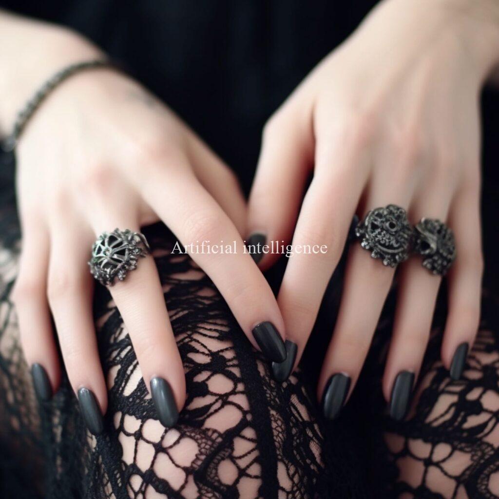 ダークな黒ネイルをコンセプトにAIイラストツールで架空の画像を生成しました。