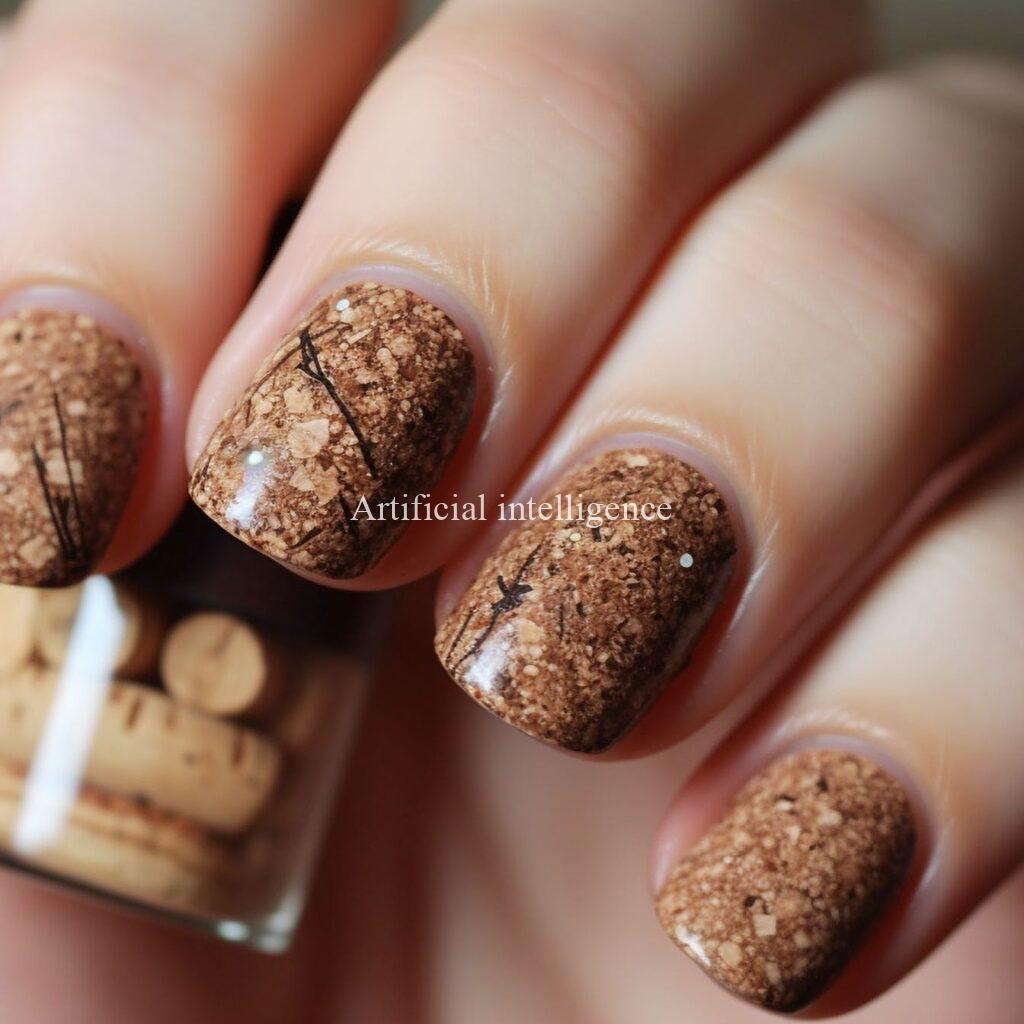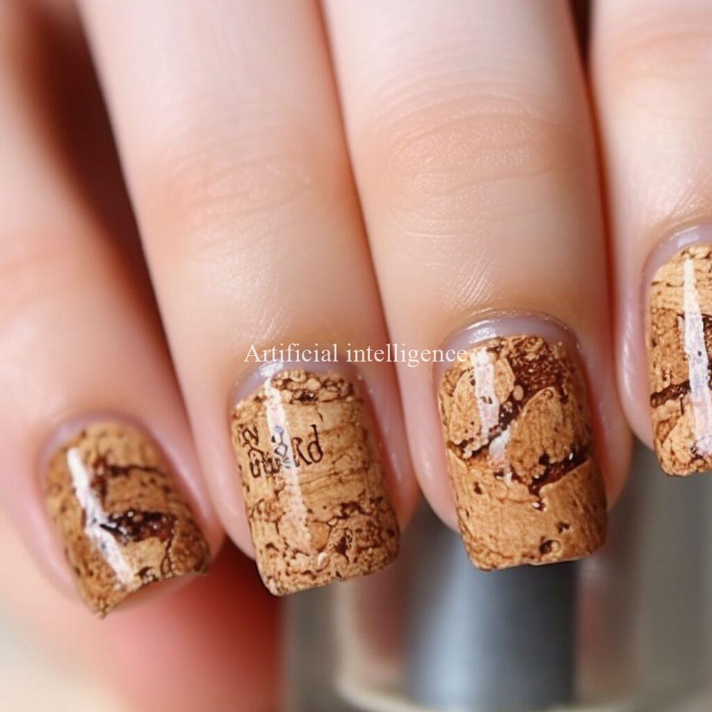 コルク柄プリントネイルをコンセプトにAIイラストツールで架空の画像を生成しました。