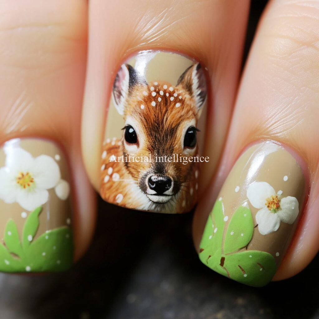 プーズー・子鹿のネイル🦌をコンセプトにAIイラストツールで架空の画像を生成しました。