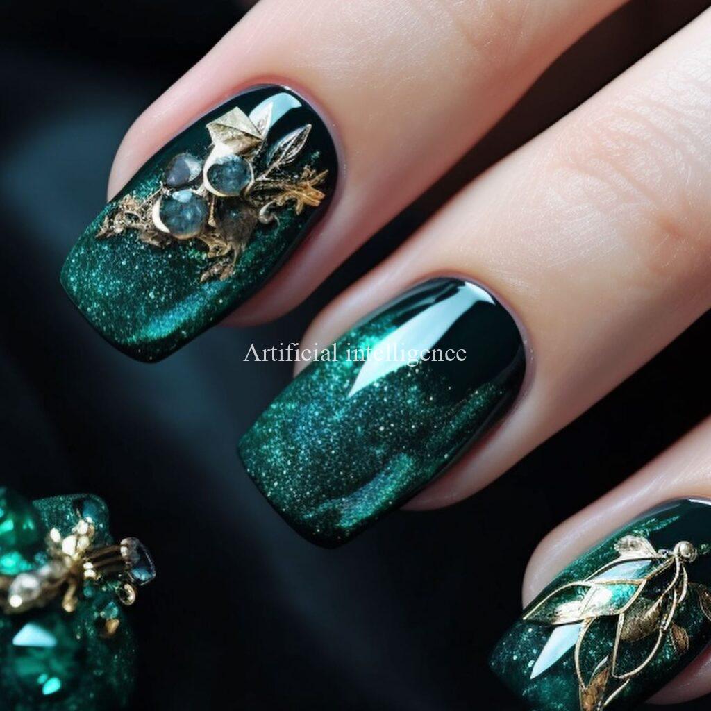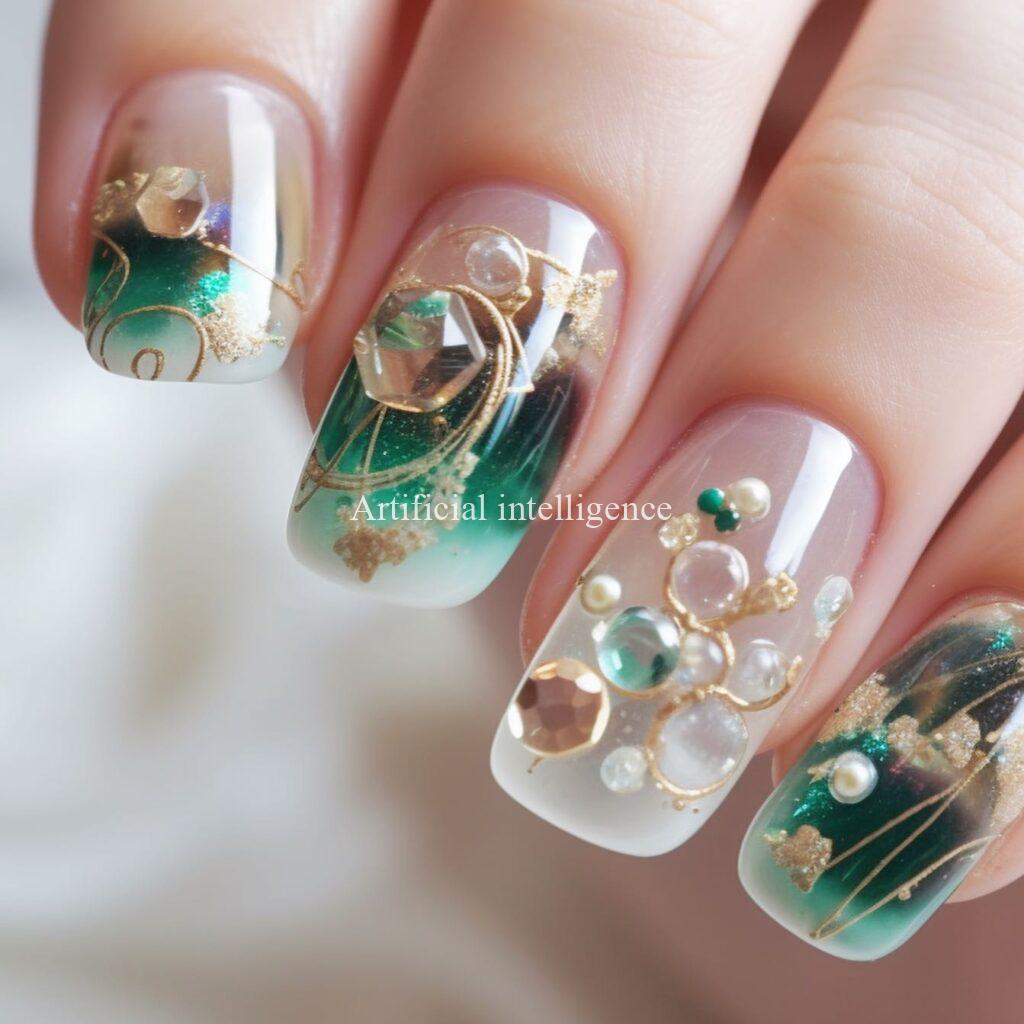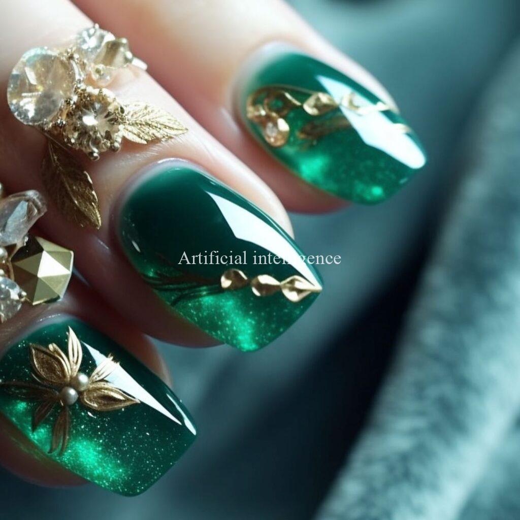 emerald and jade gem nails by AI