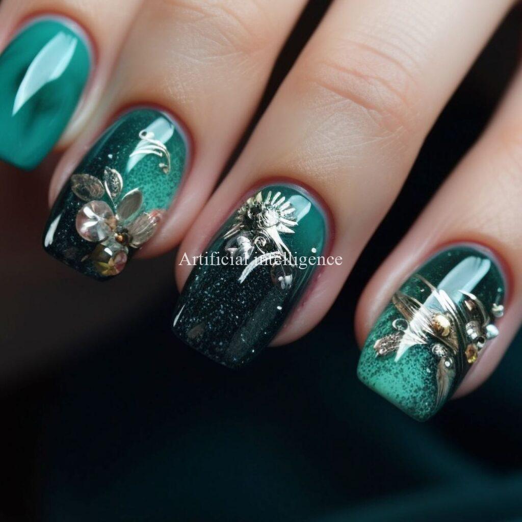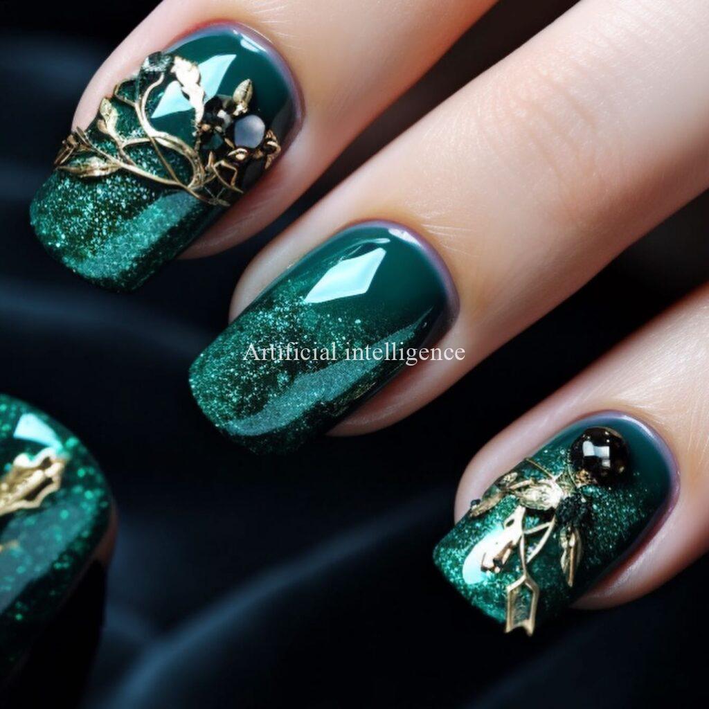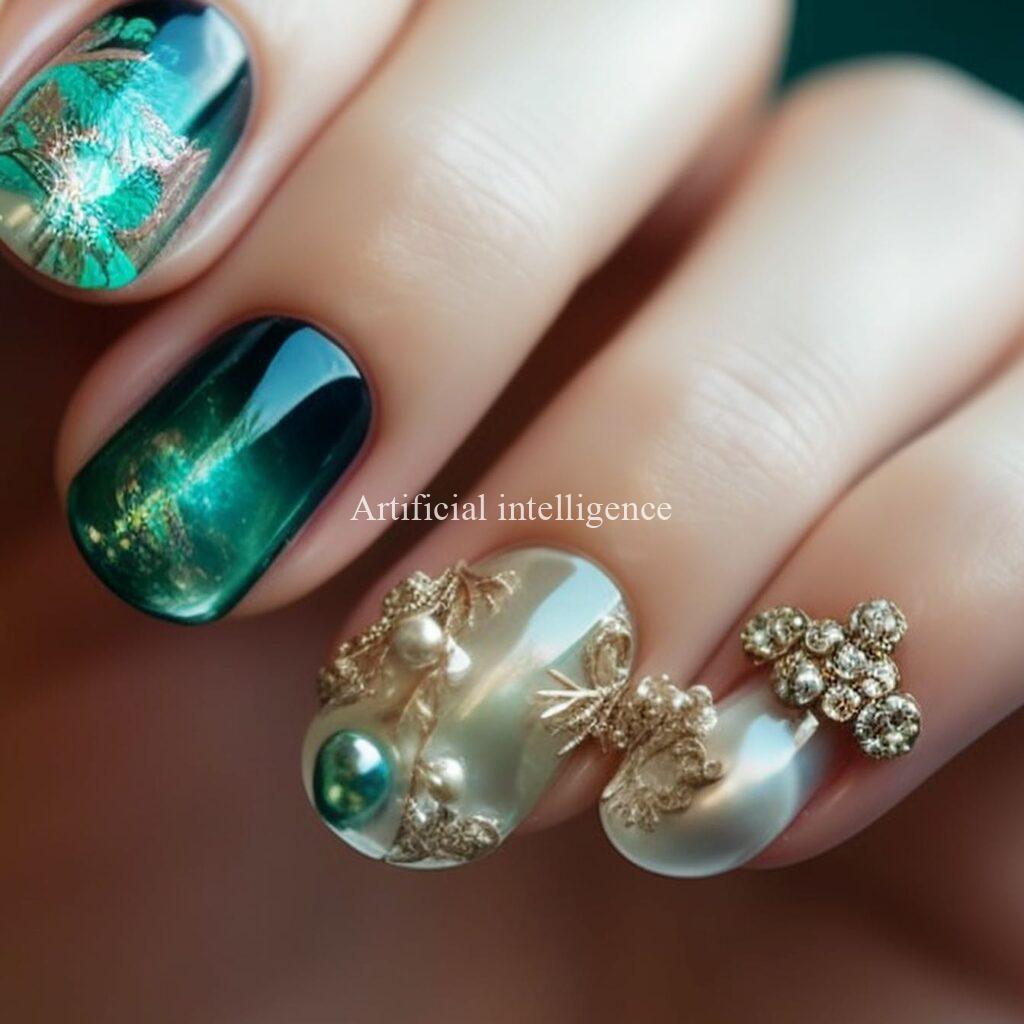 emerald and jade gem nails by AI
