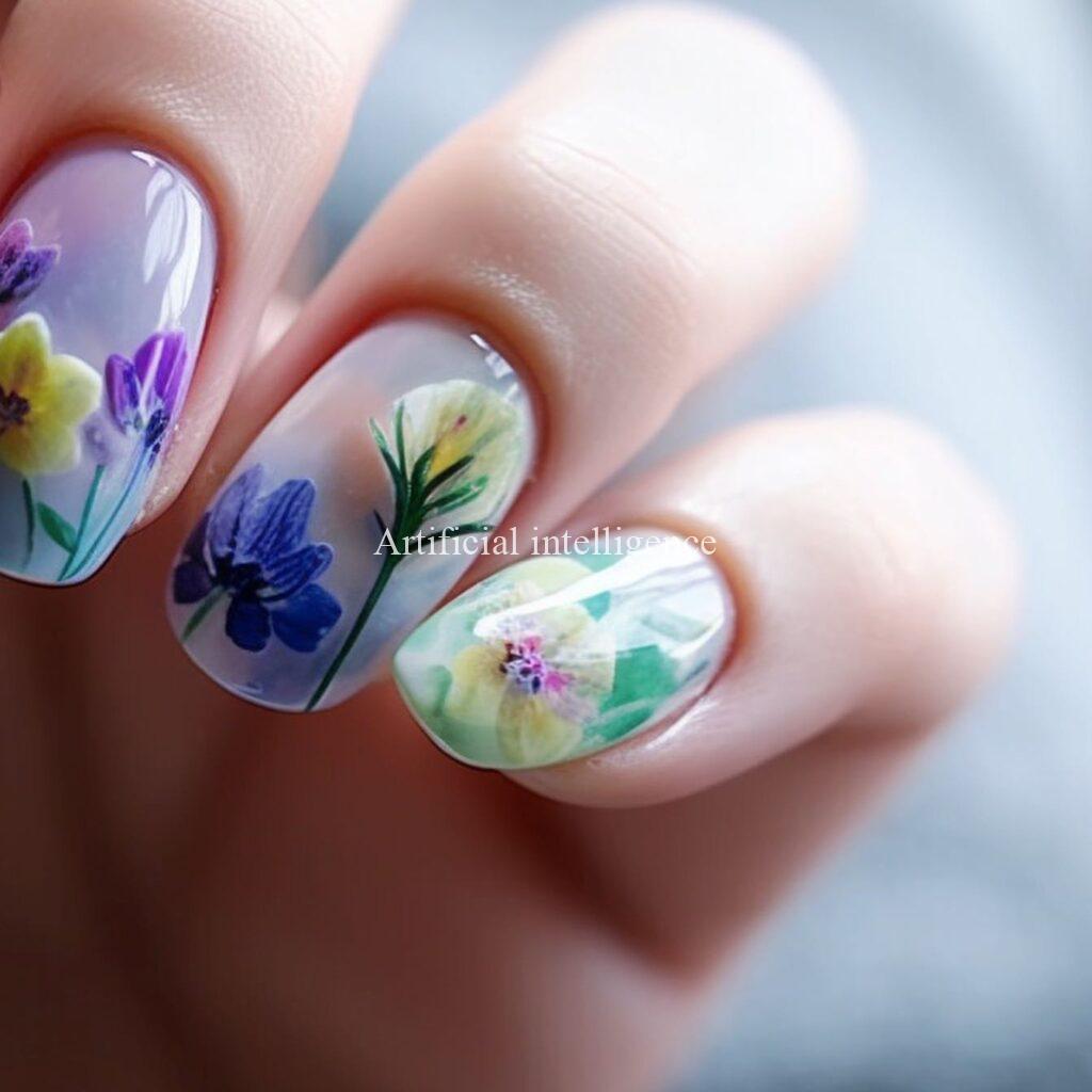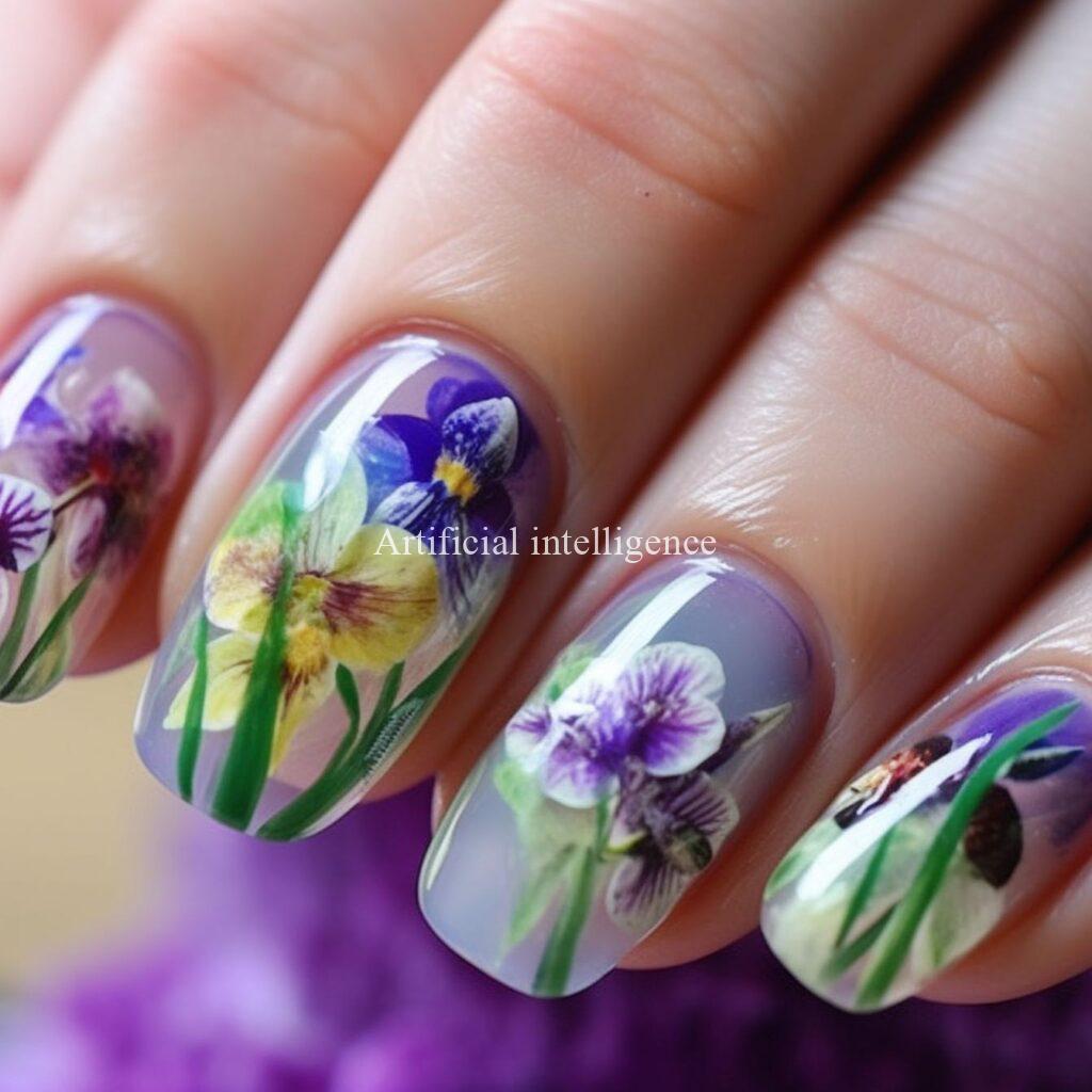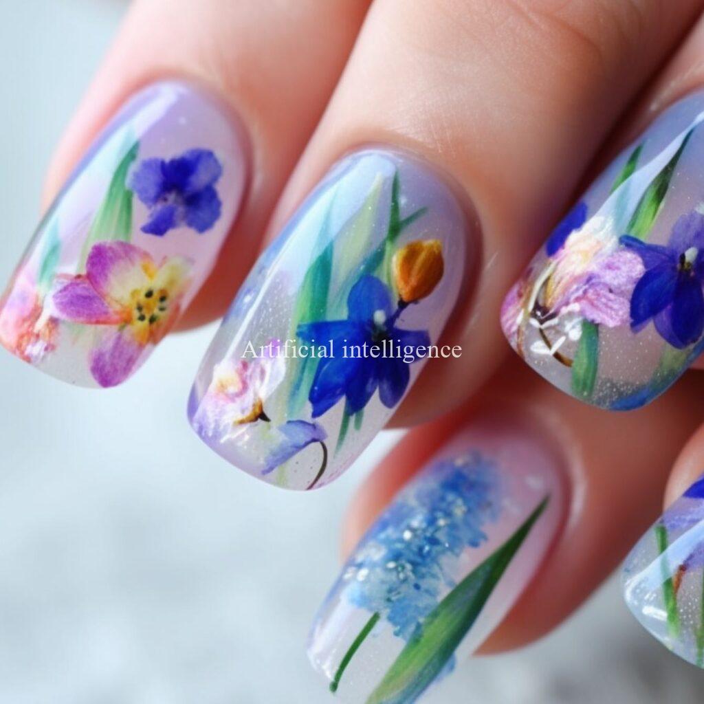 あやめ・菖蒲のネイルをコンセプトにAIイラストツールで架空の画像を生成しました。