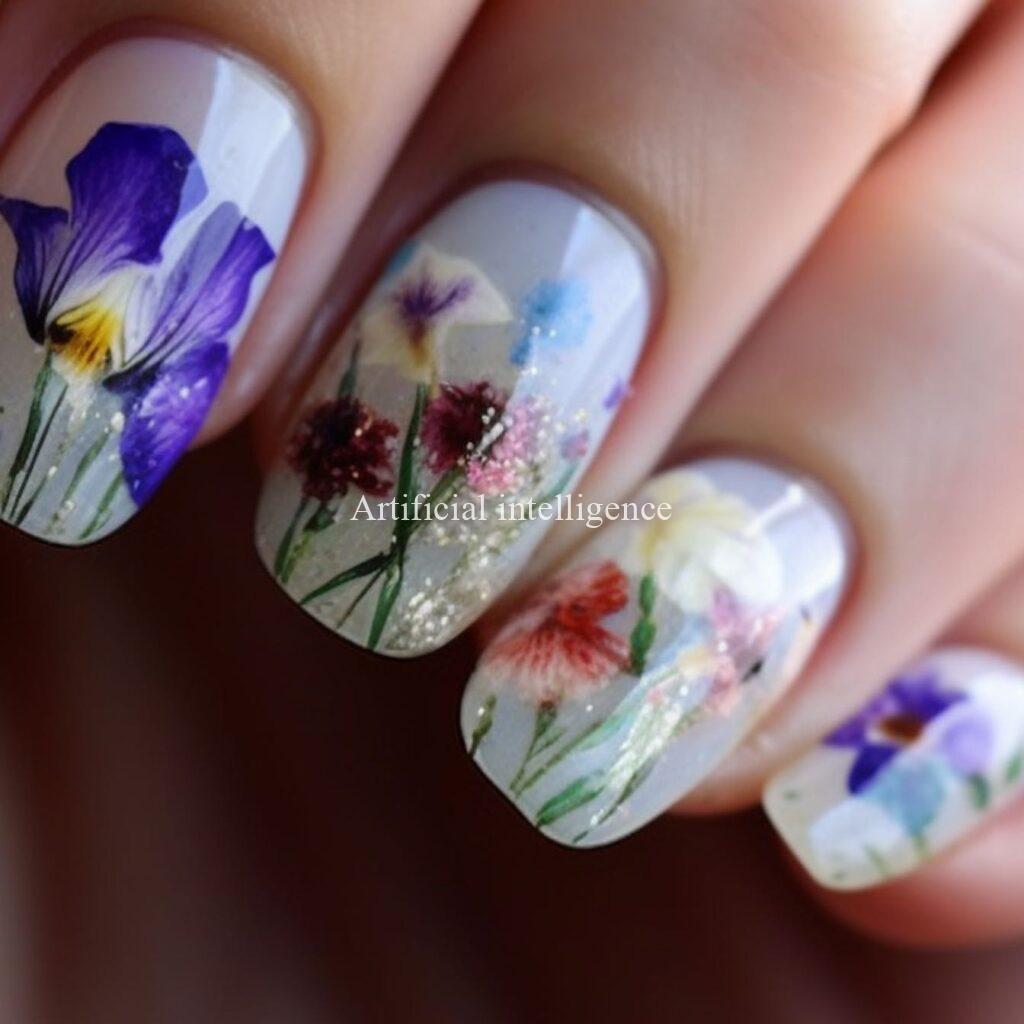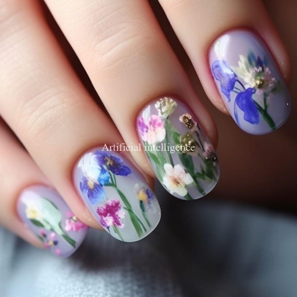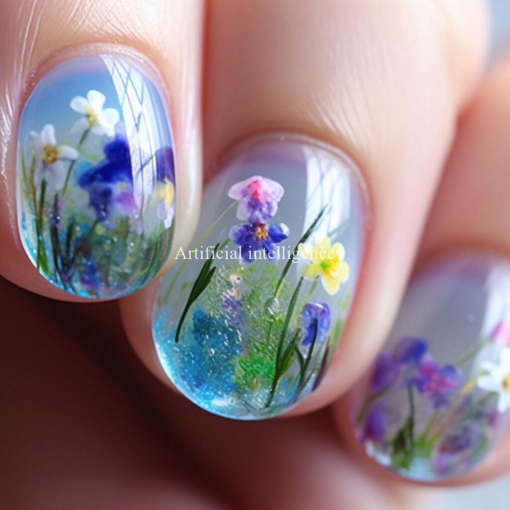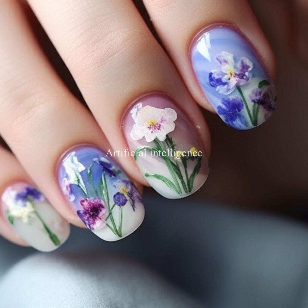 あやめ・菖蒲のネイルをコンセプトにAIイラストツールで架空の画像を生成しました。