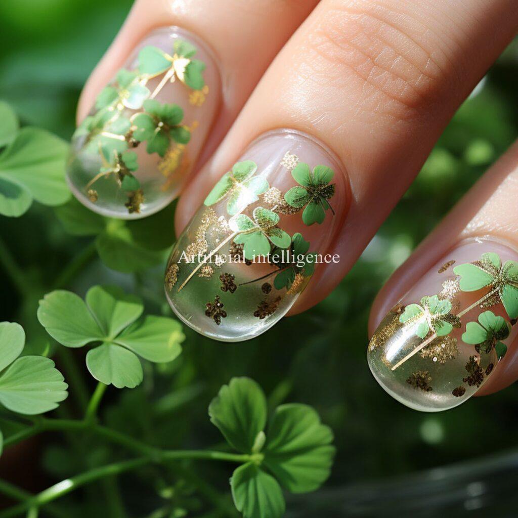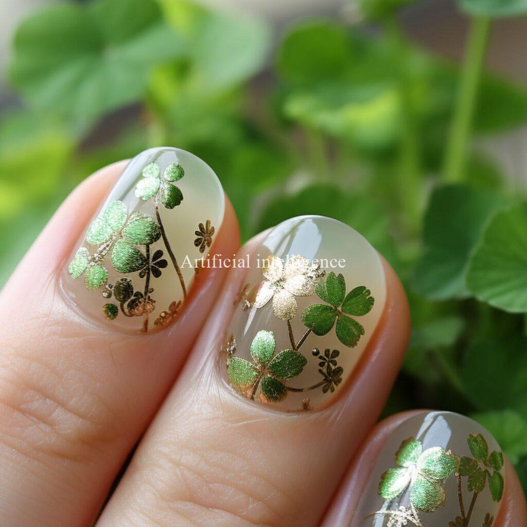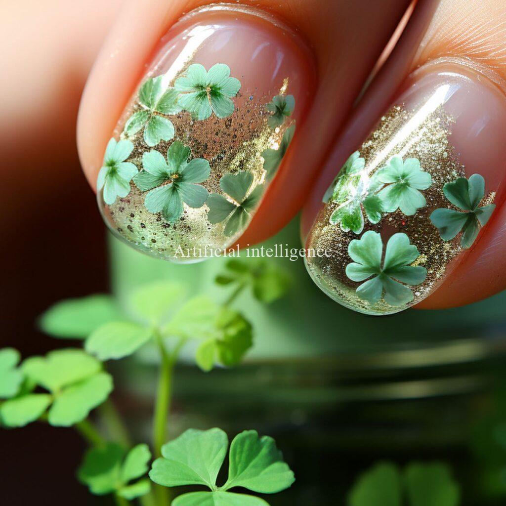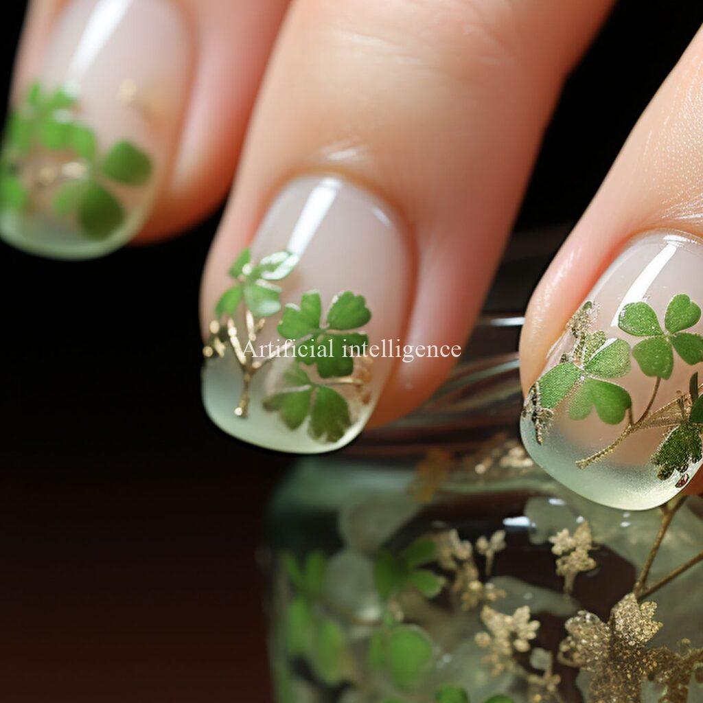 四つ葉のクローバーネイル🍀をコンセプトにAIイラストツールで架空の画像を生成しました。