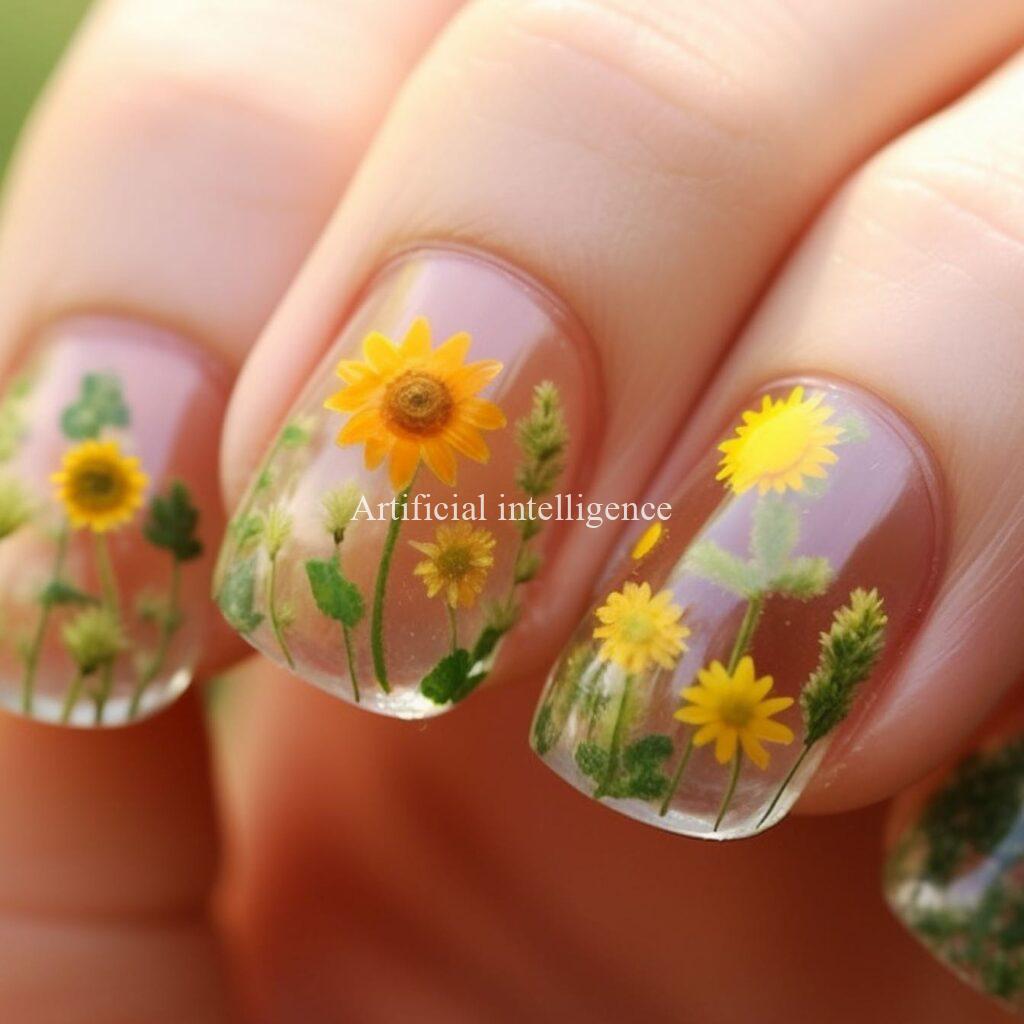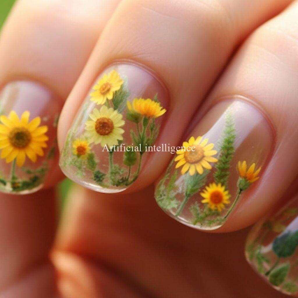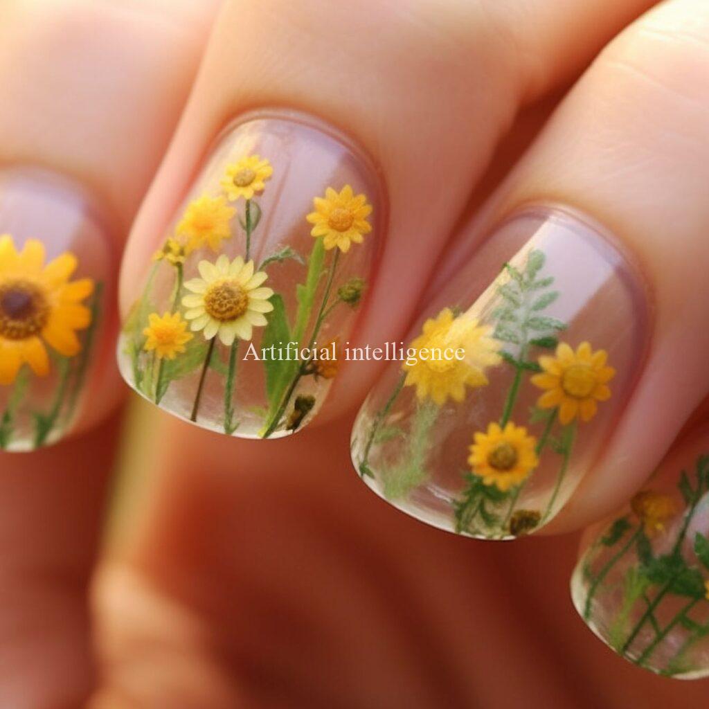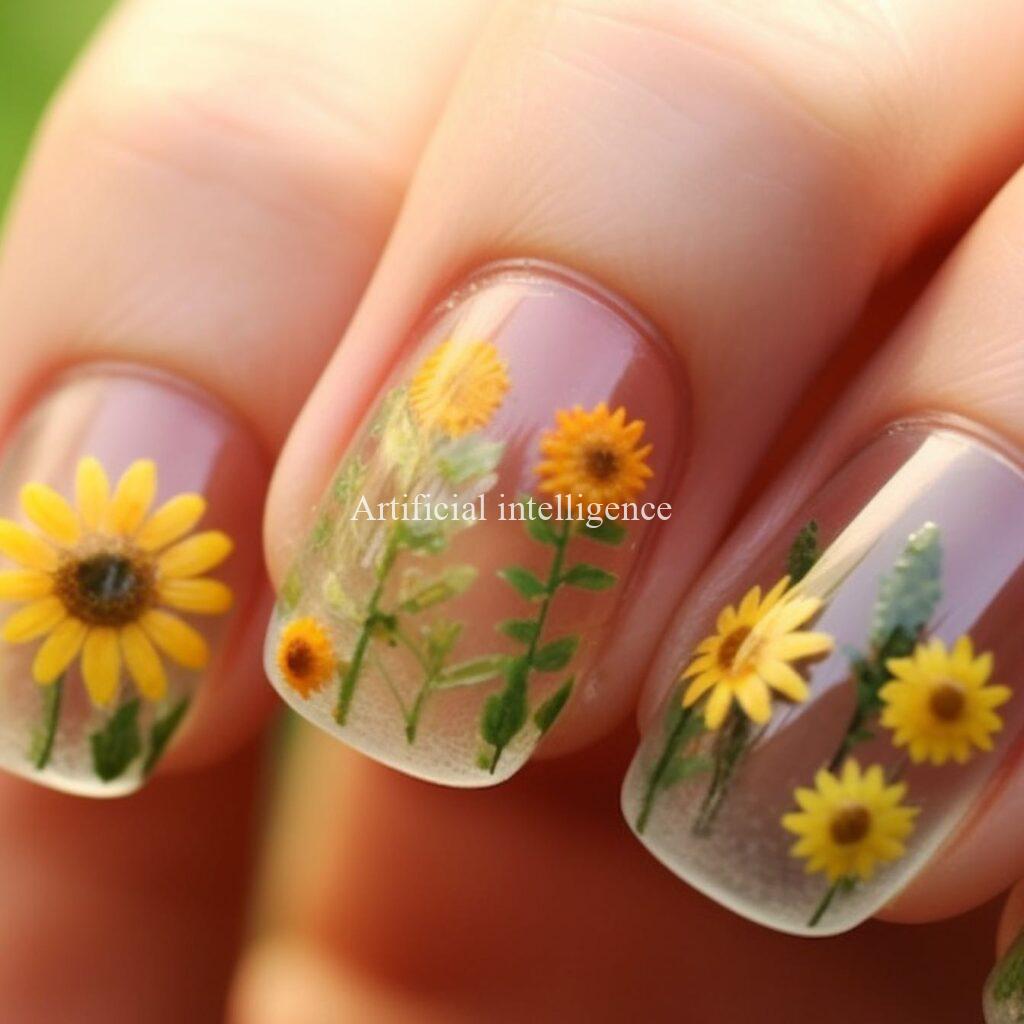 sunflower clear nails by AI
