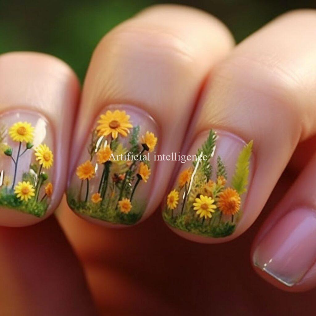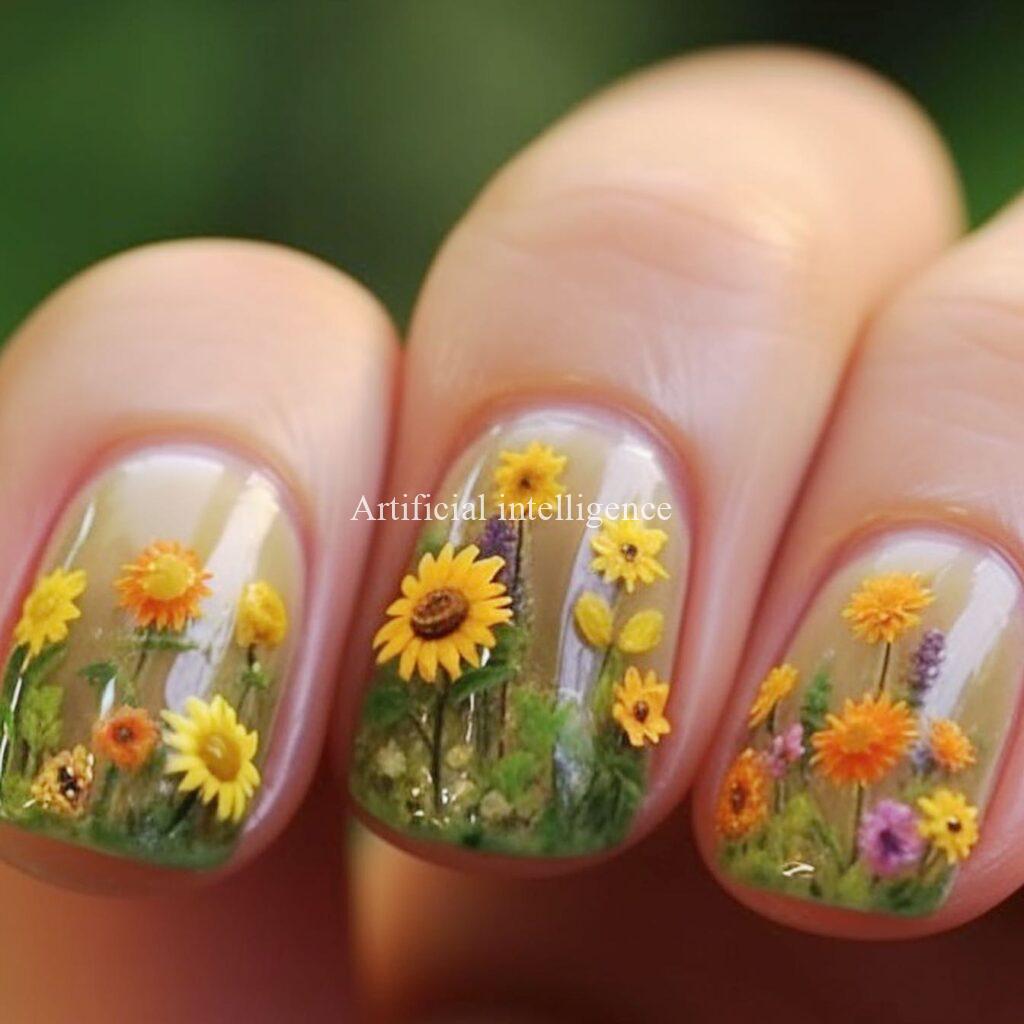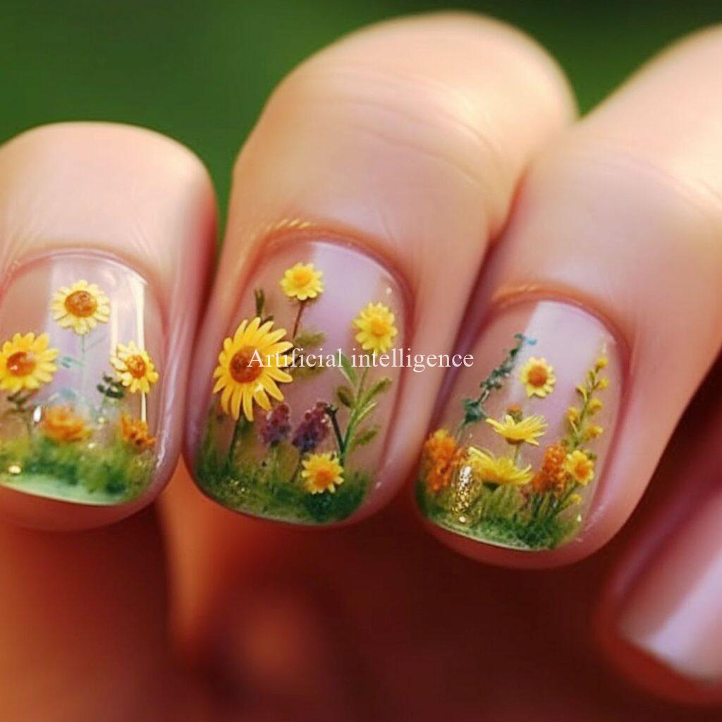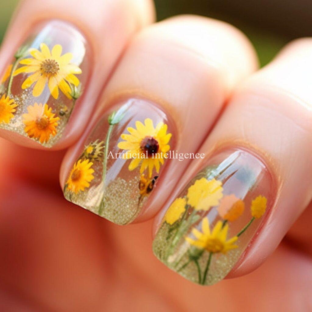sunflower clear nails by AI