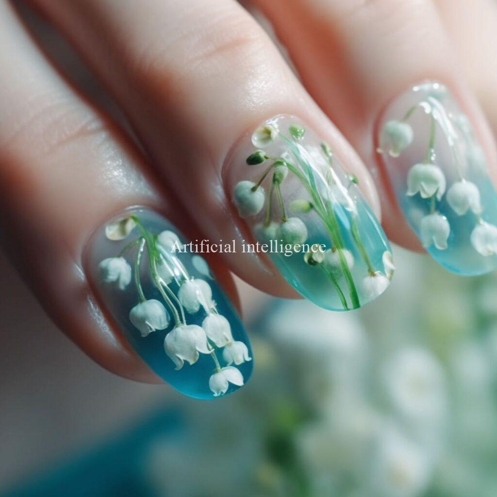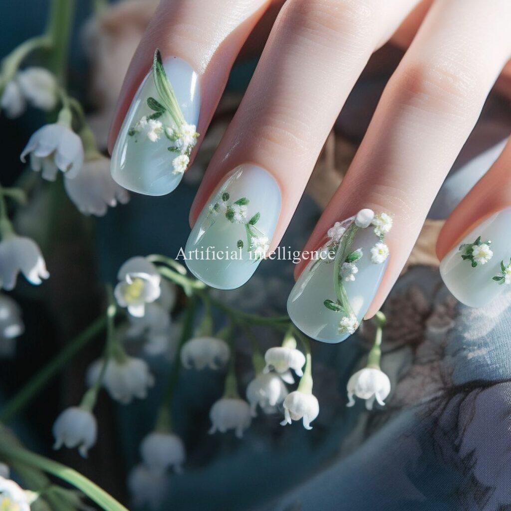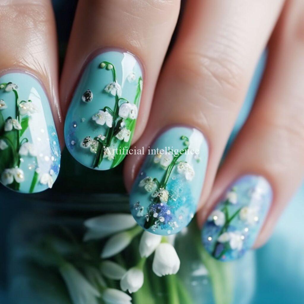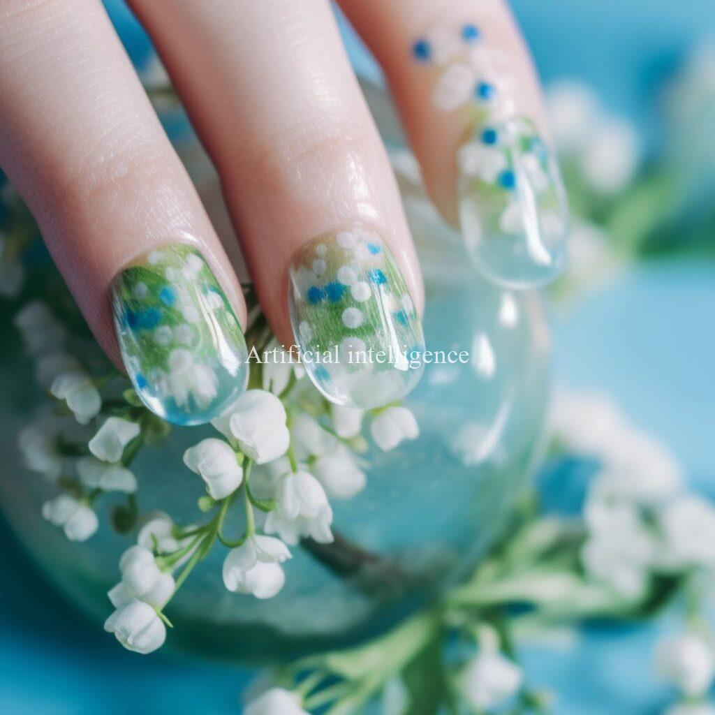 爽やかなミュゲのネイルをコンセプトにAIイラストツールで架空の画像を生成しました。