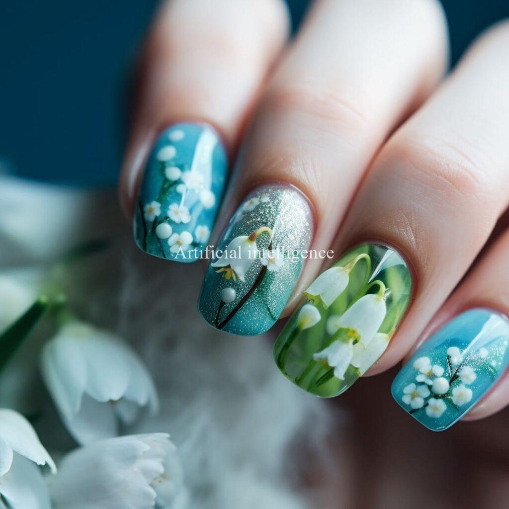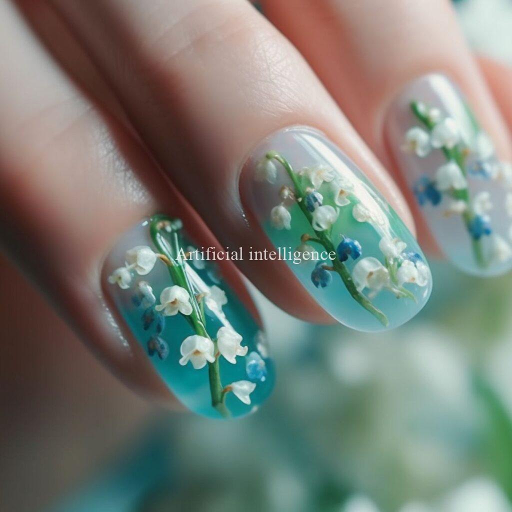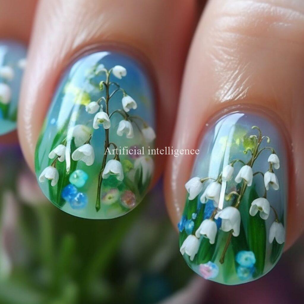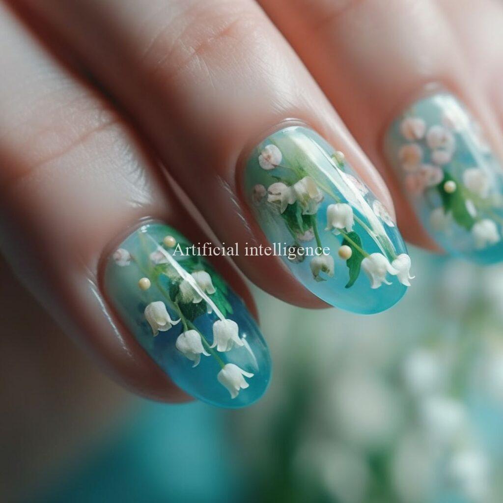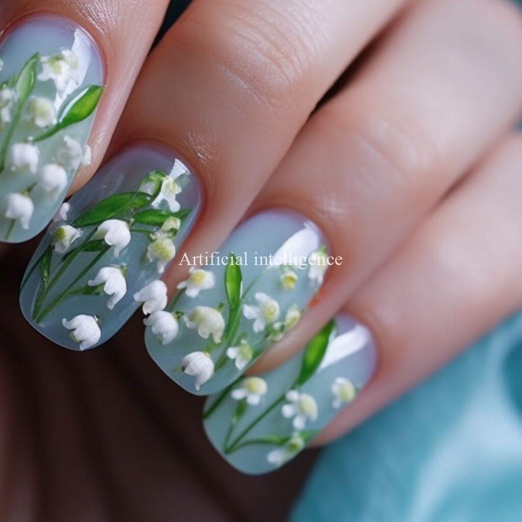 爽やかなミュゲのネイルをコンセプトにAIイラストツールで架空の画像を生成しました。