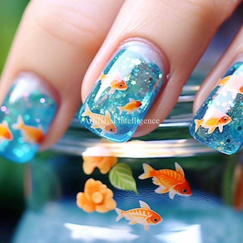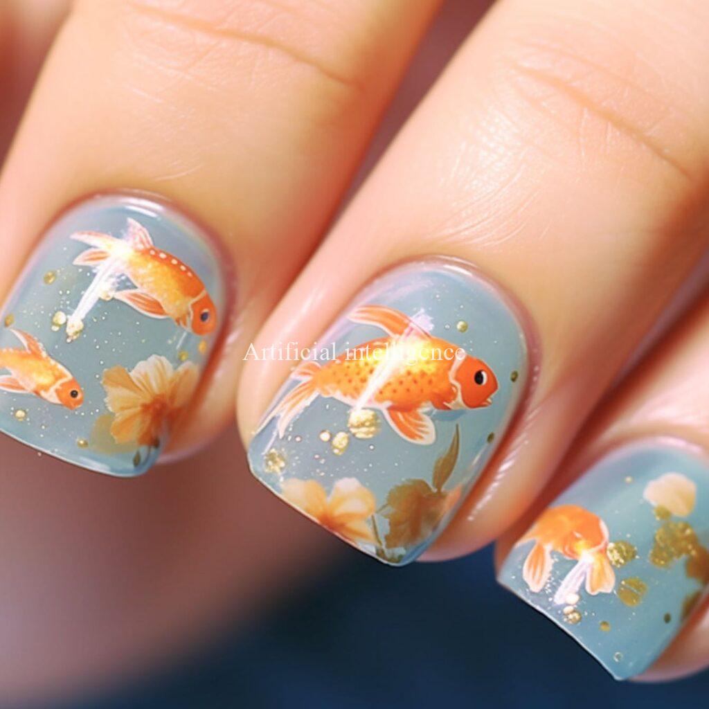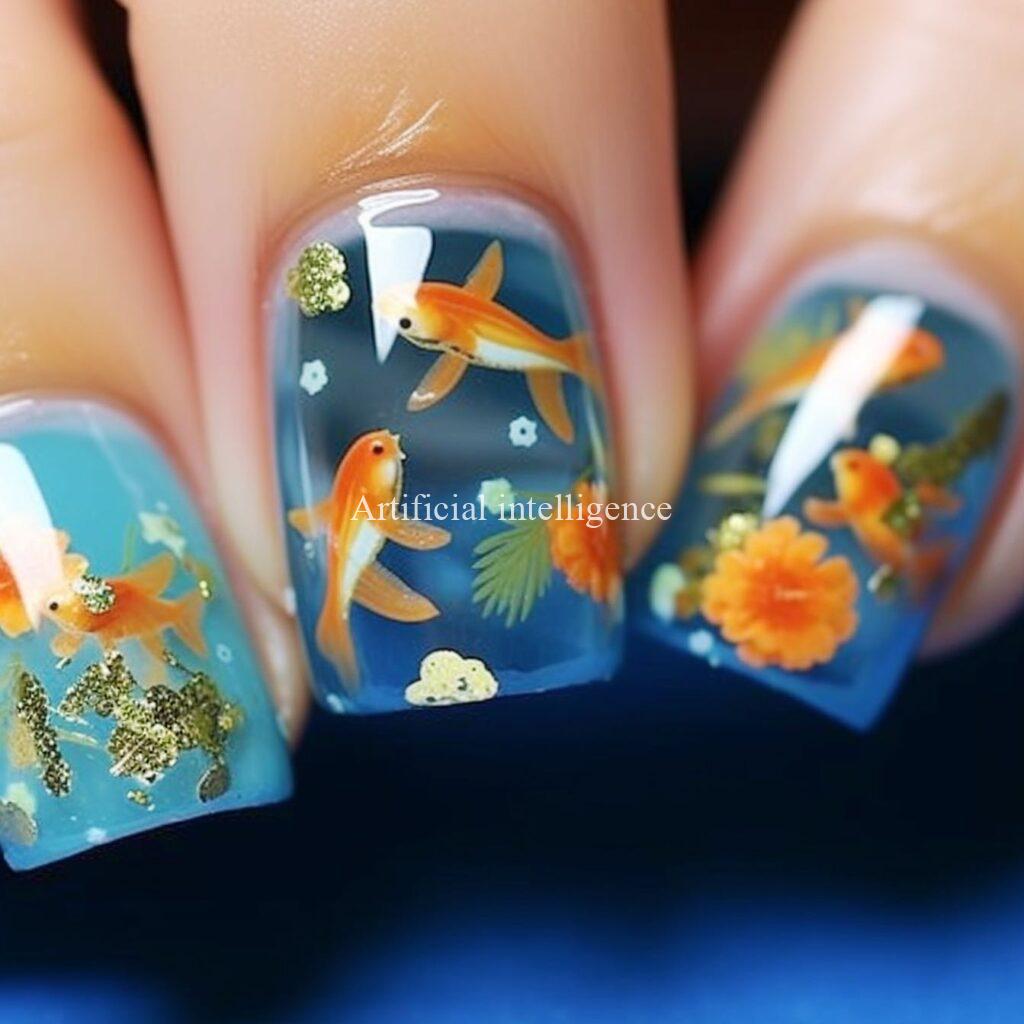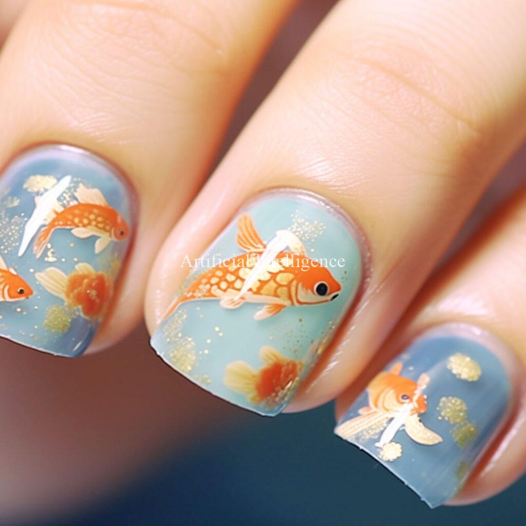 金魚鉢ネイル・鯉のネイルをコンセプトにAIイラストツールで架空の画像を生成しました。