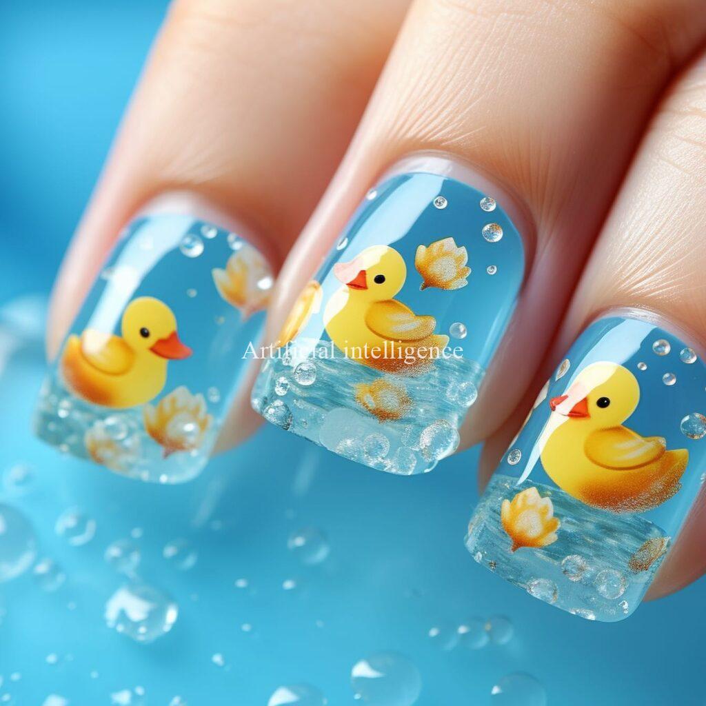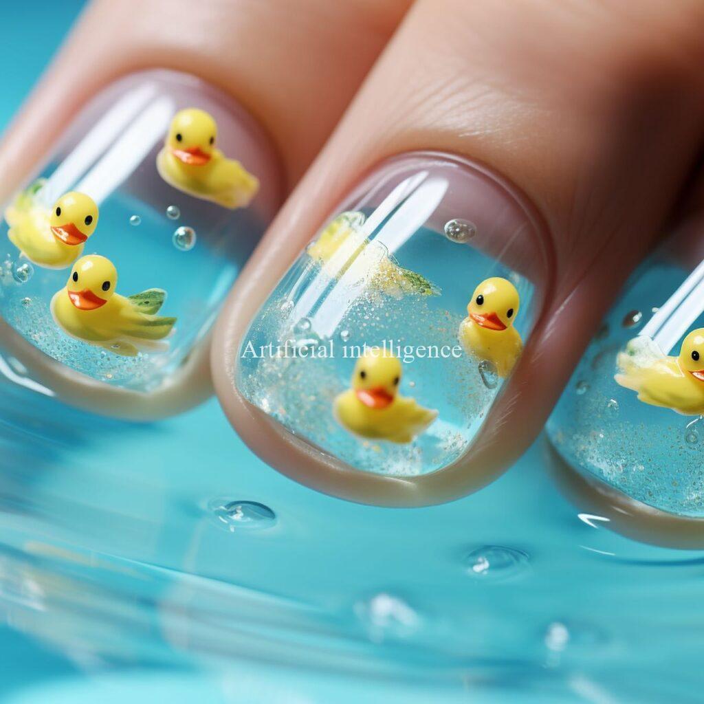泳ぐあひるちゃんネイル 🐤をコンセプトにAIイラストツールで架空の画像を生成しました。