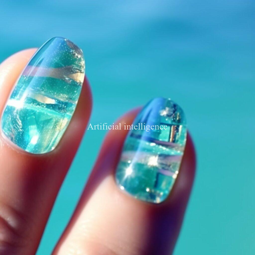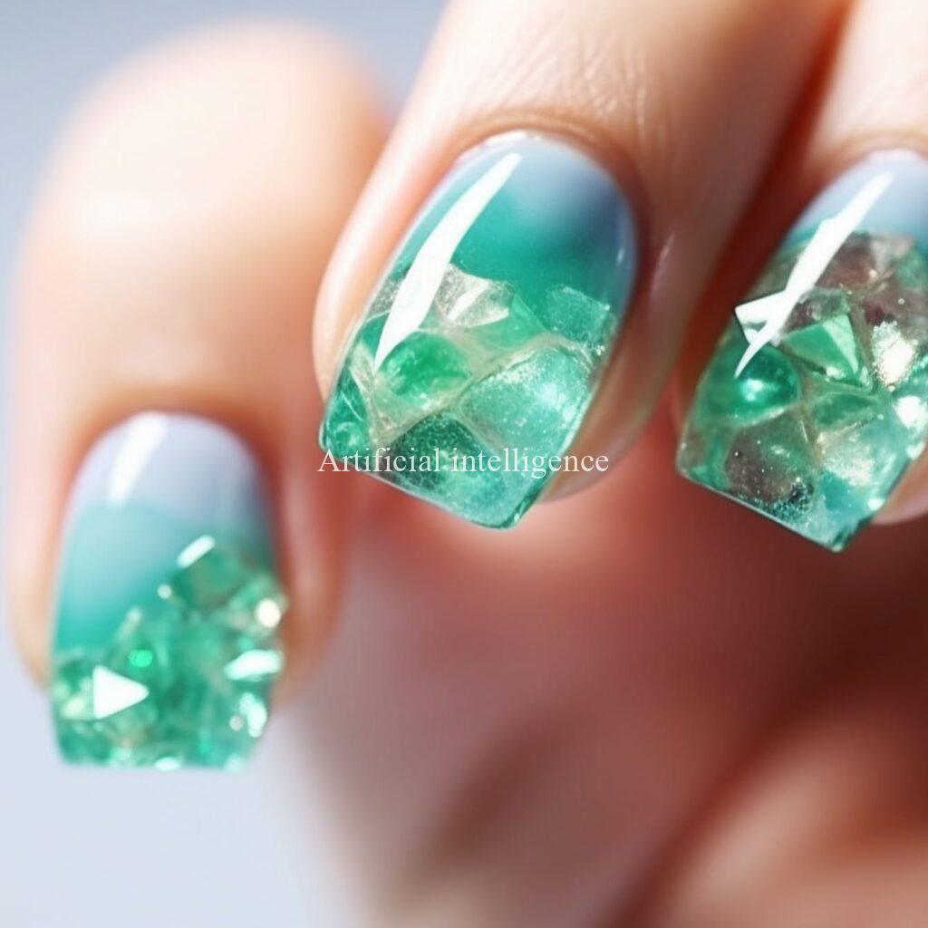 トルマリン風の宝石ネイルをコンセプトにAIイラストツールで架空の画像を生成しました。