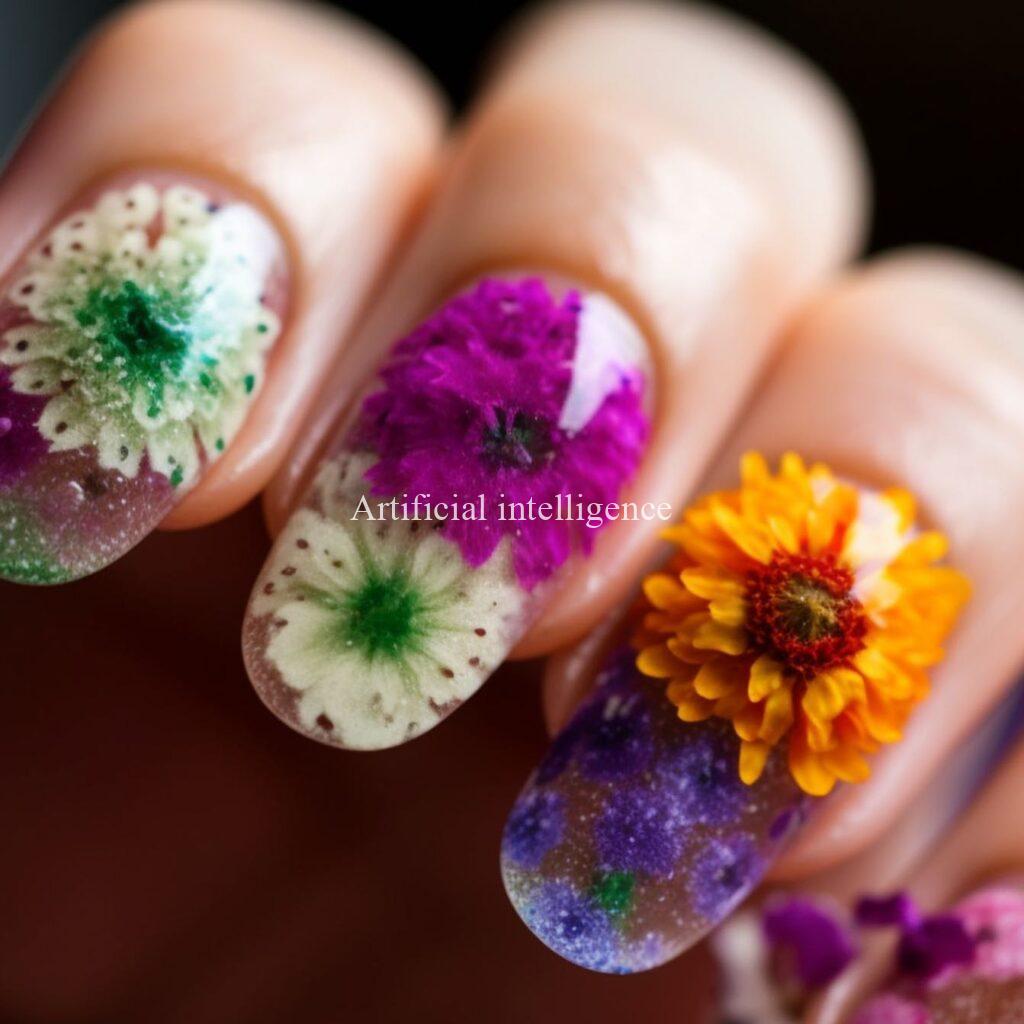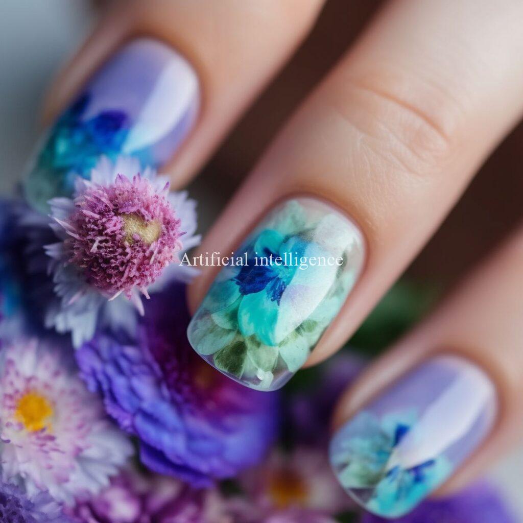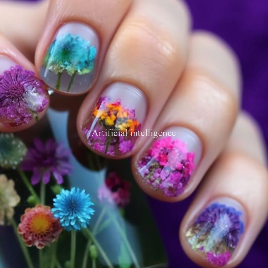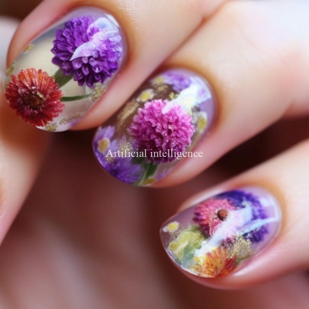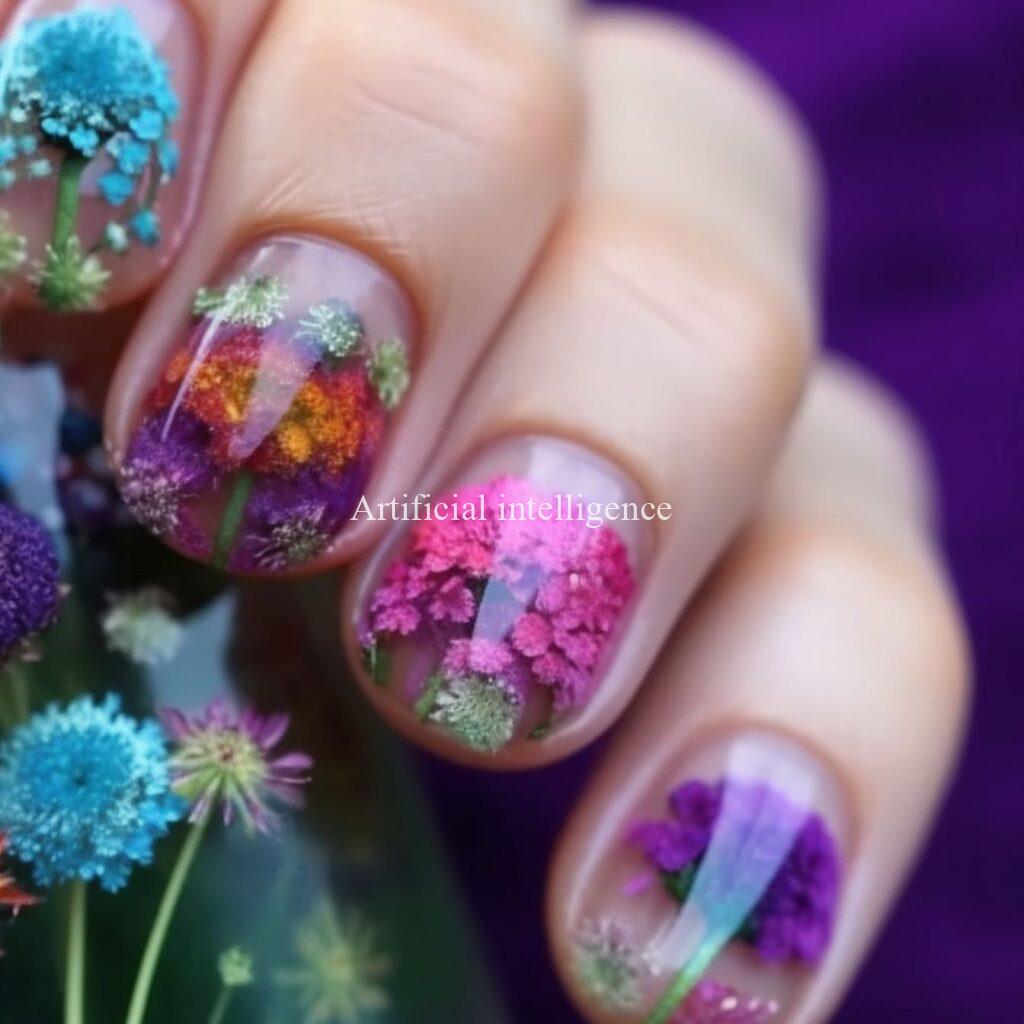 フラワーゼリー風ネイル 💐をコンセプトにAIイラストツールで架空の画像を生成しました。