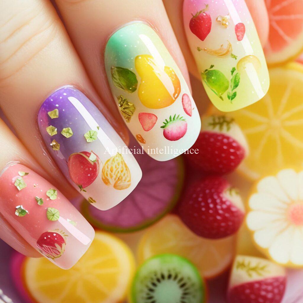フルーツパーティーネイルをコンセプトにAIイラストツールで架空の画像を生成しました。