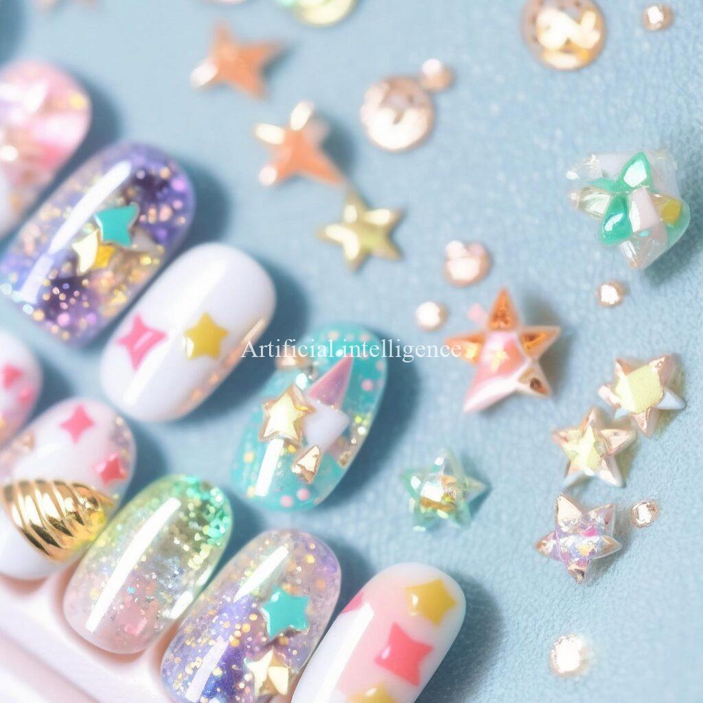 カワイイキッズネイルチップをコンセプトにAIイラストツールで架空の画像を生成しました。