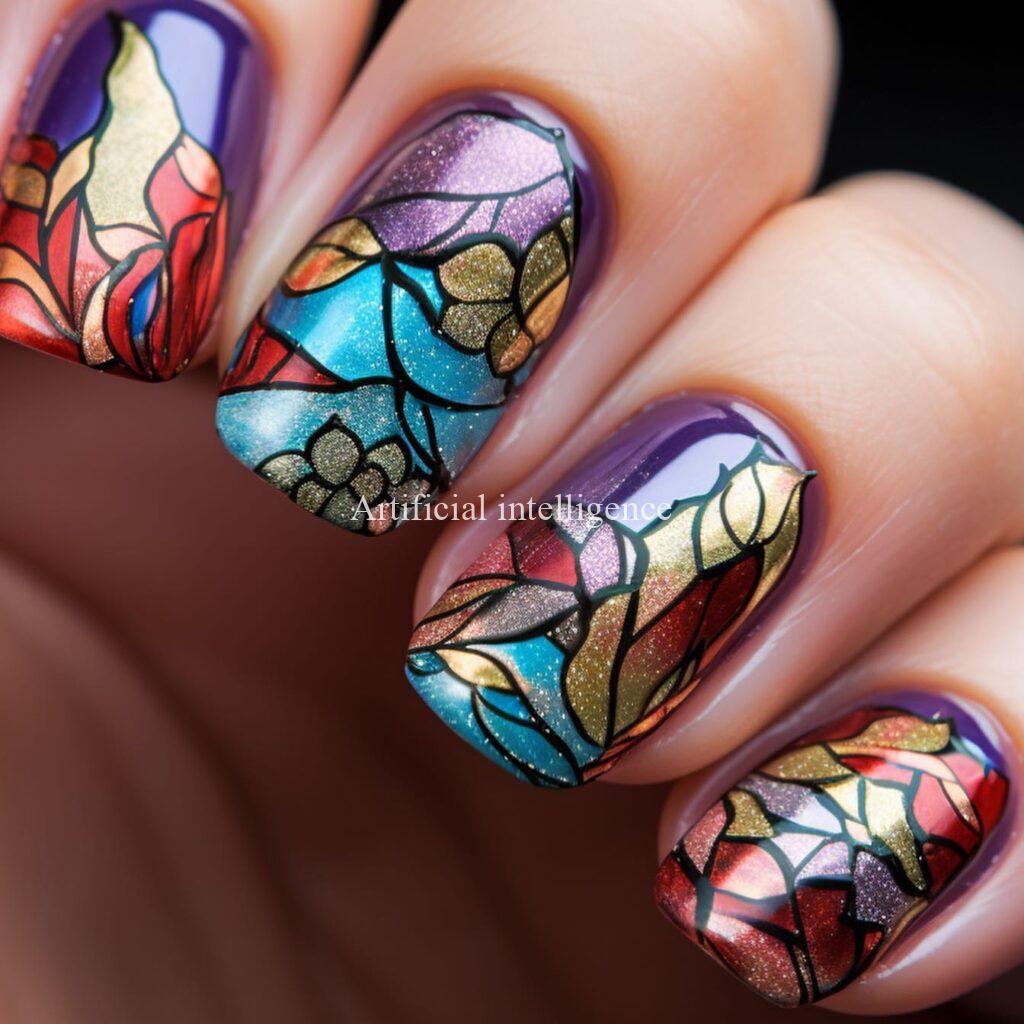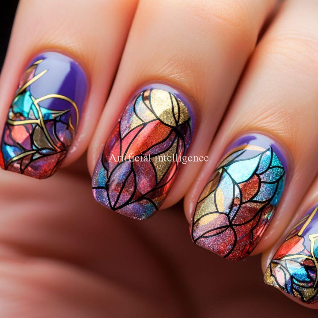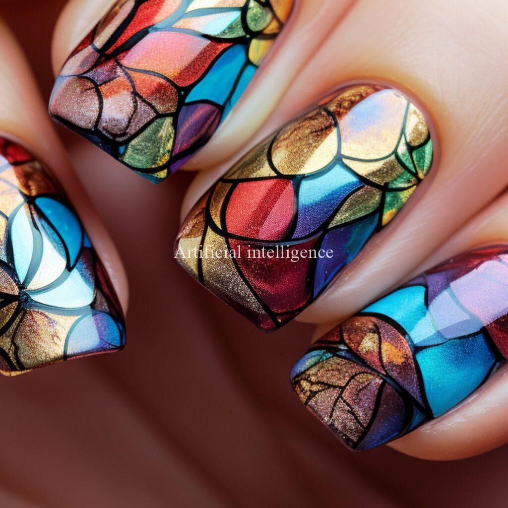 stained glass style nails by AI
