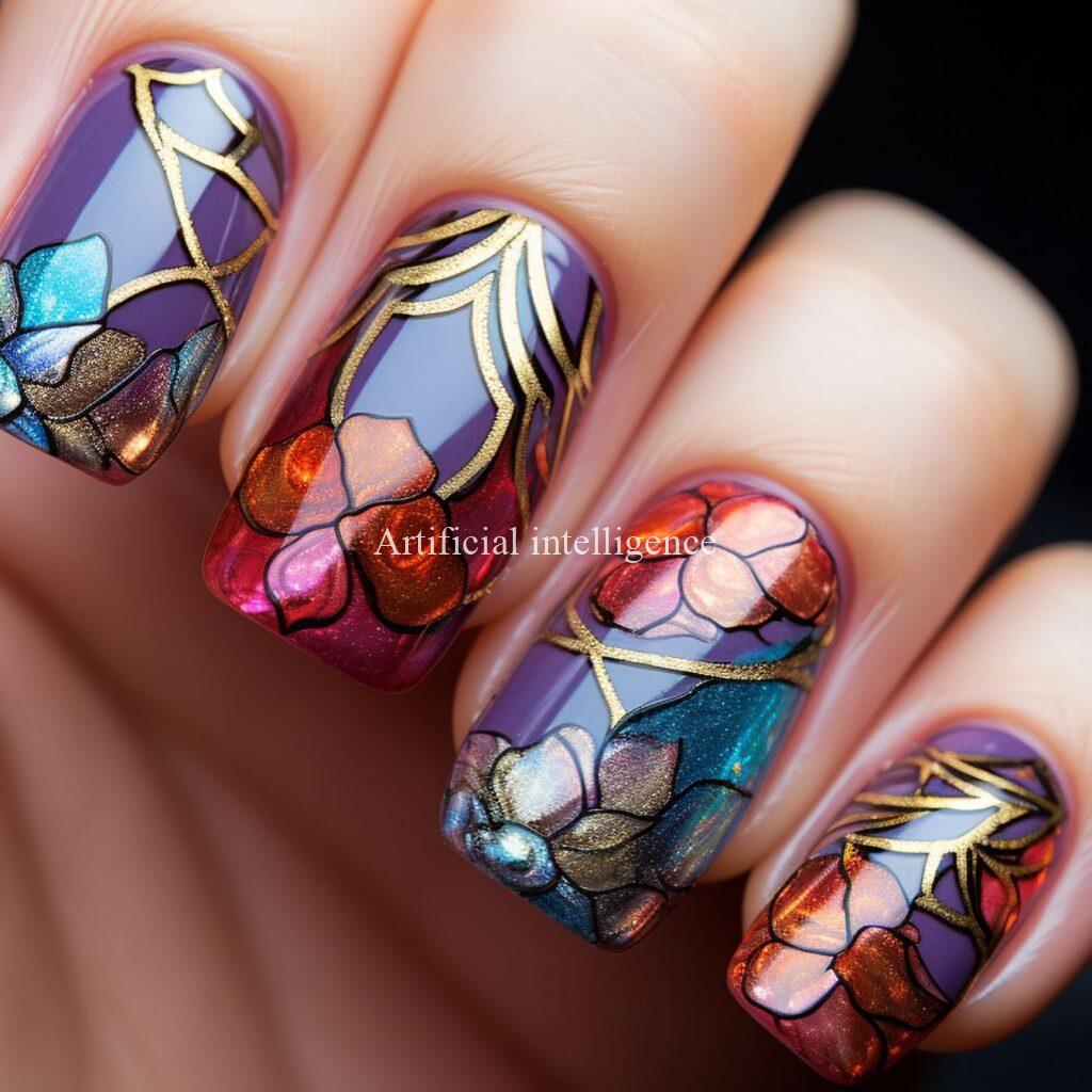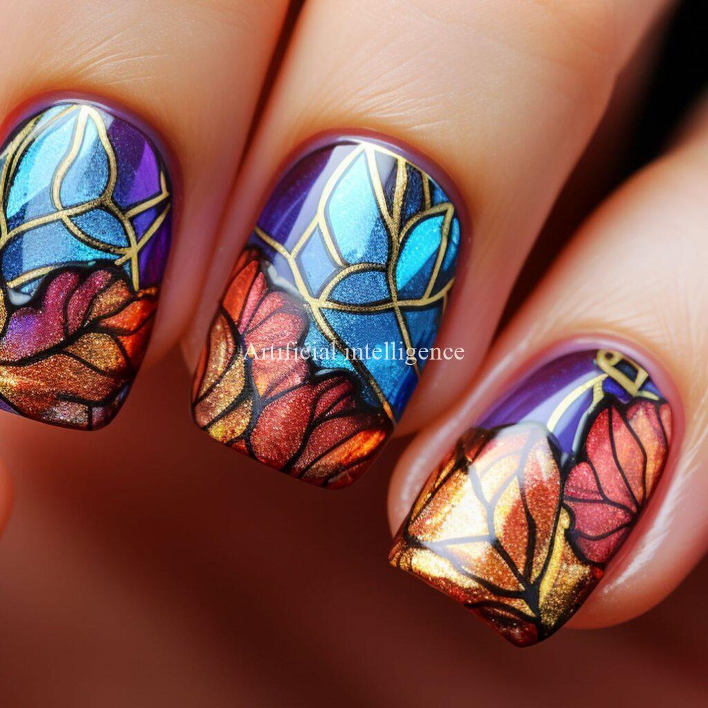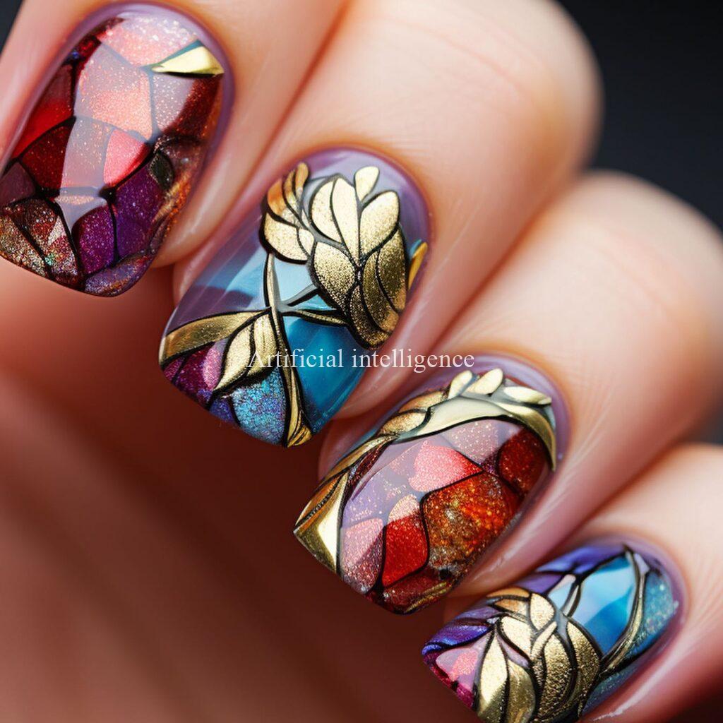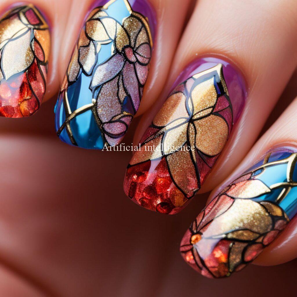 stained glass style nails by AI