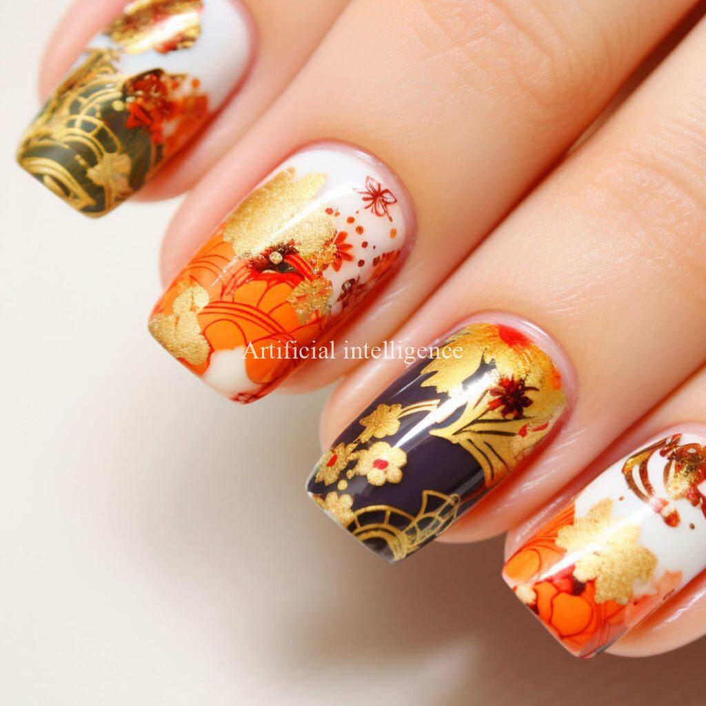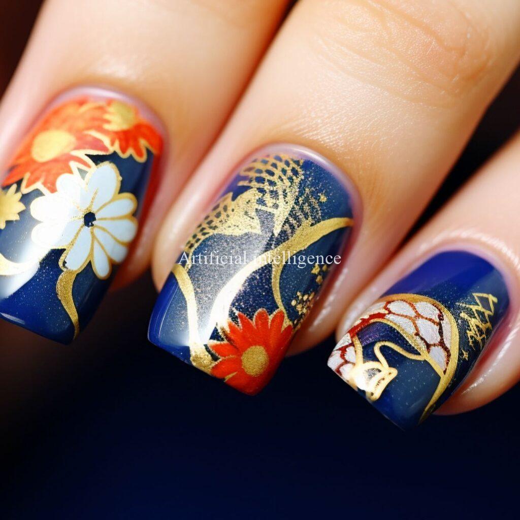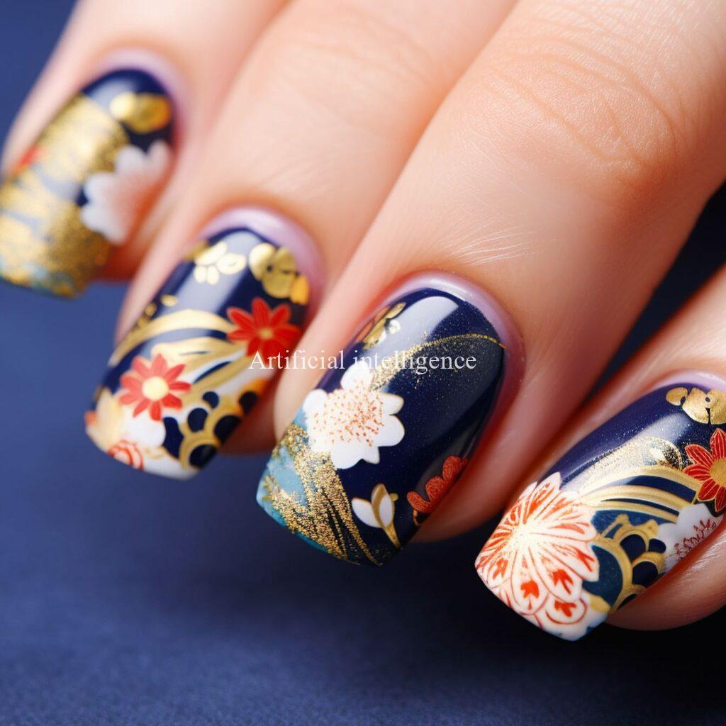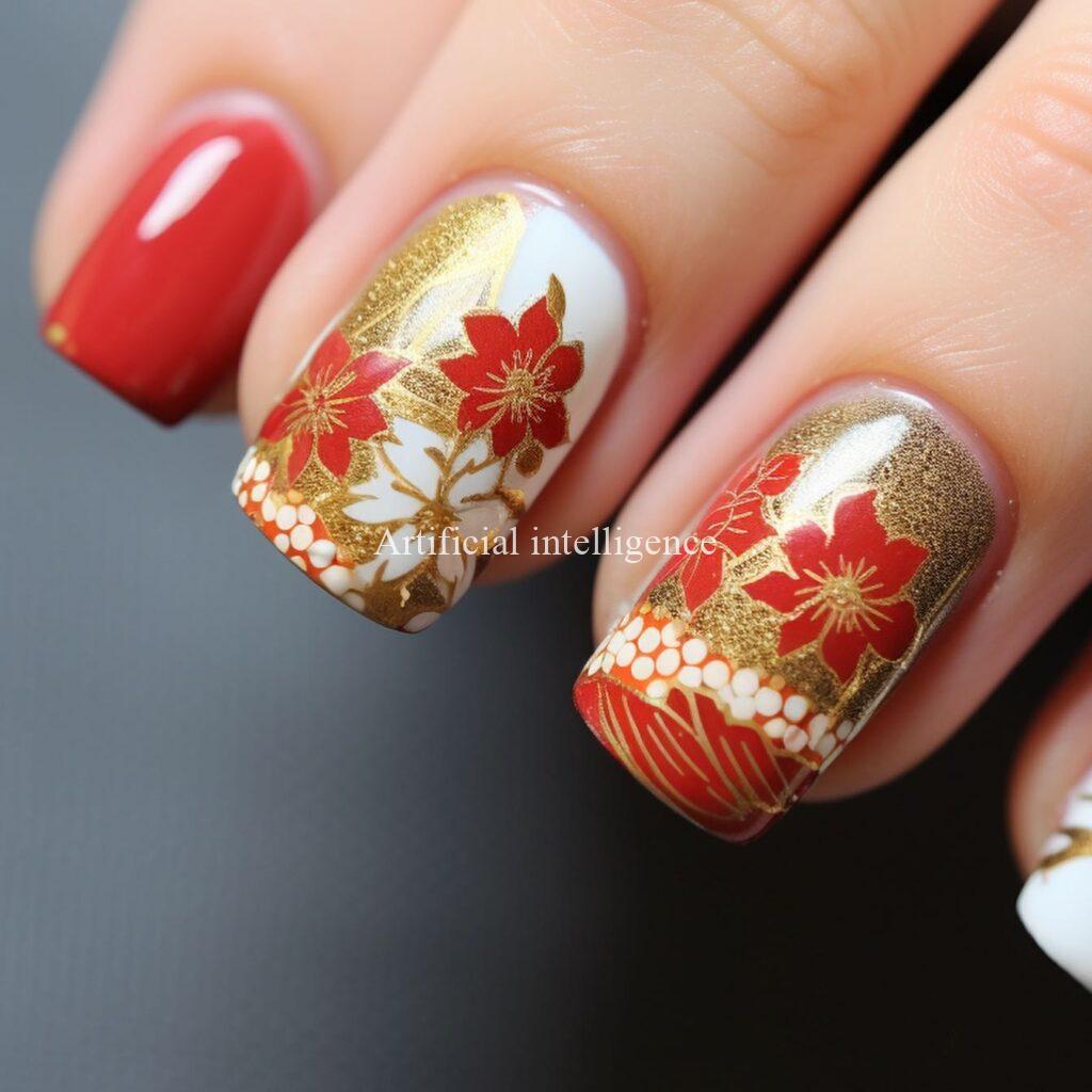 和柄風・着物柄風ネイルをコンセプトにAIイラストツールで架空の画像を生成しました。