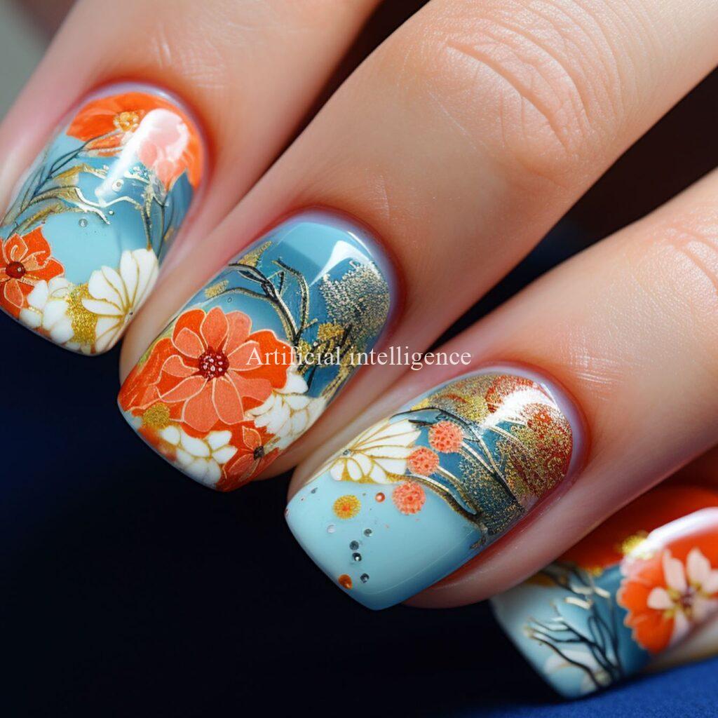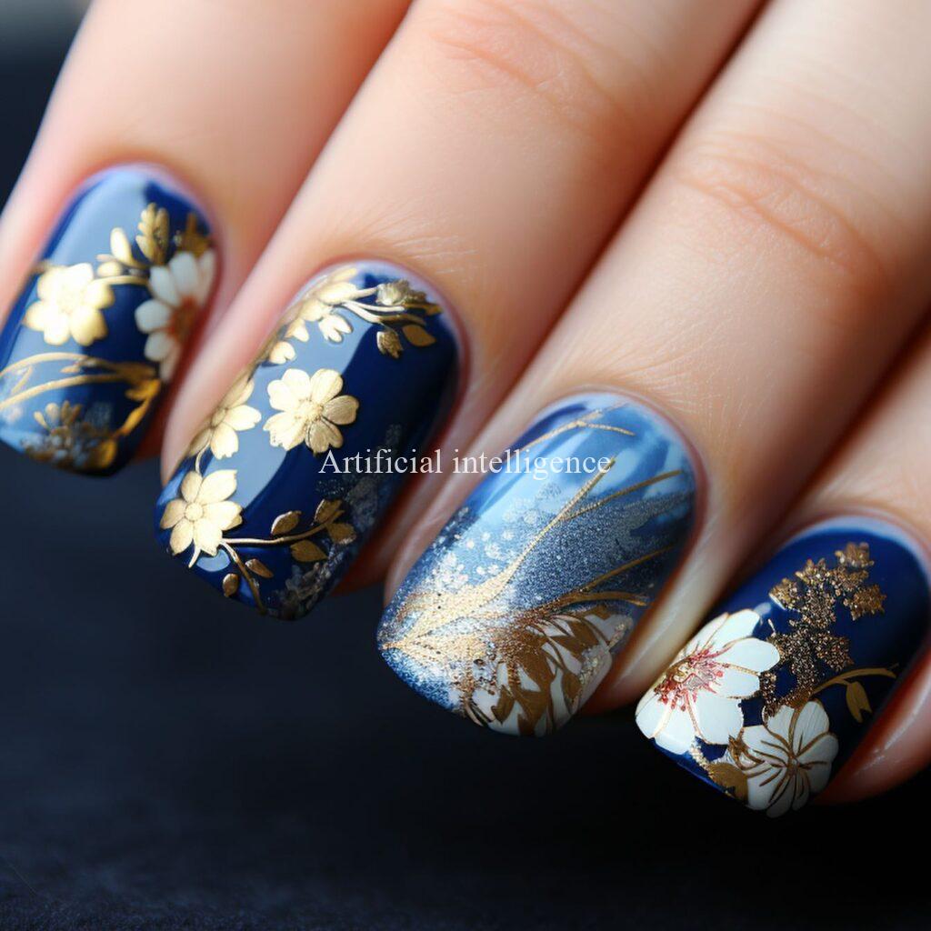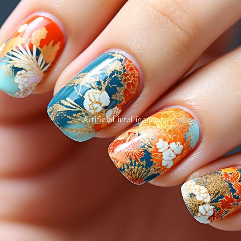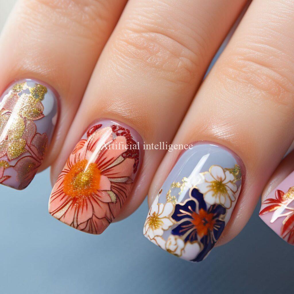 和柄風・着物柄風ネイルをコンセプトにAIイラストツールで架空の画像を生成しました。