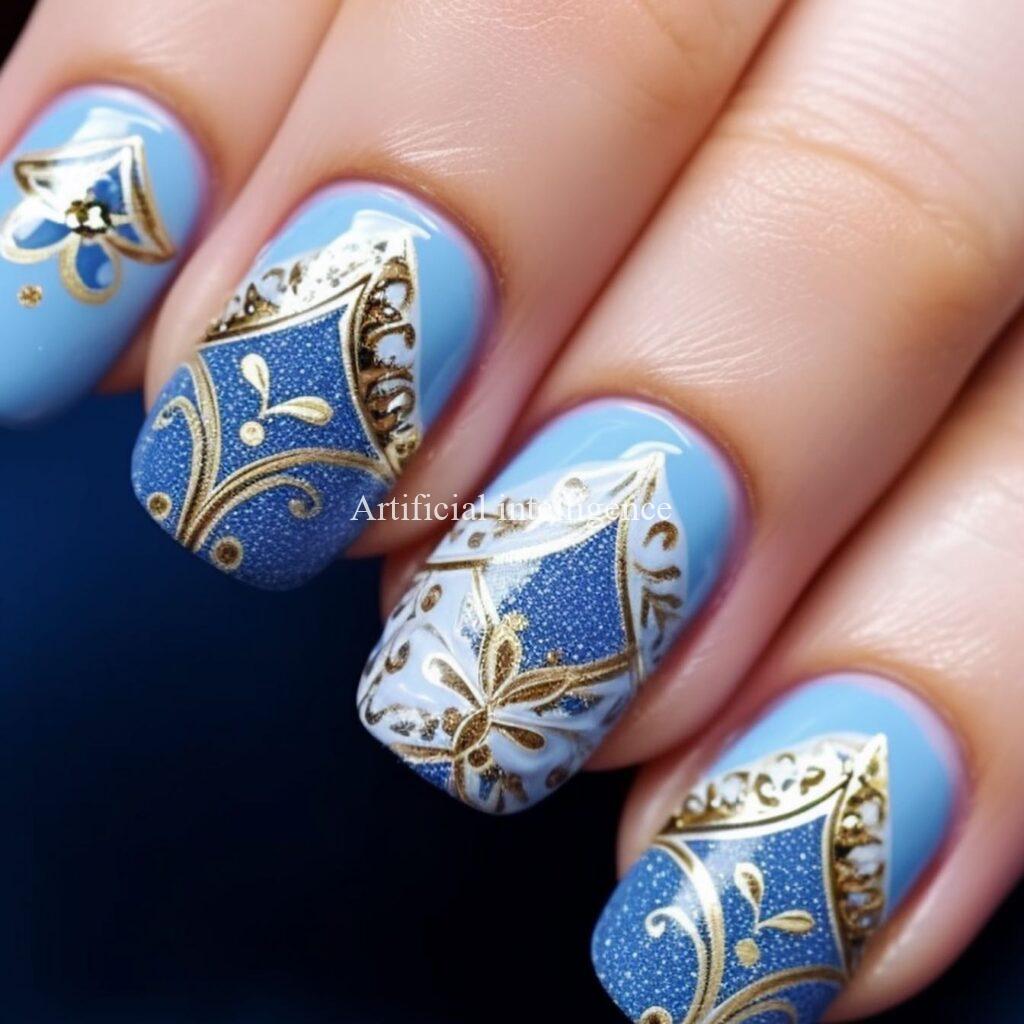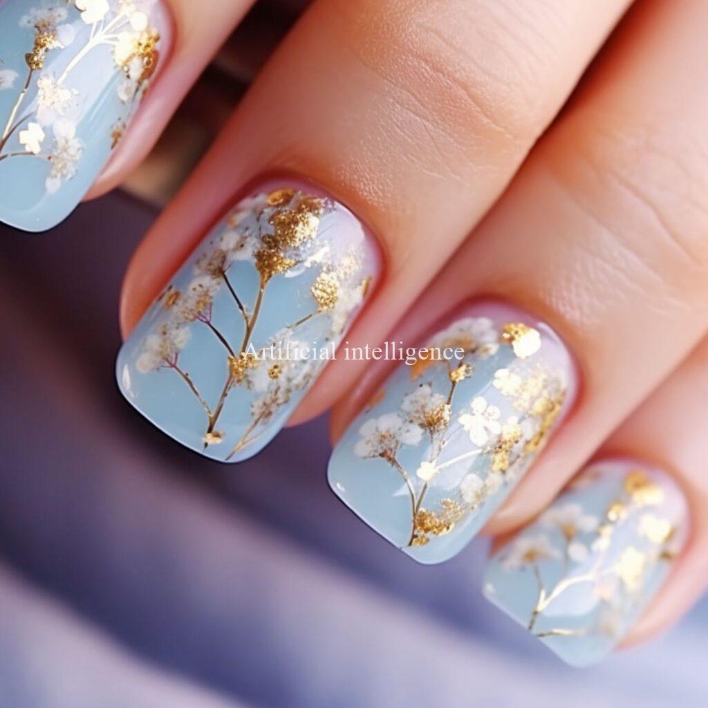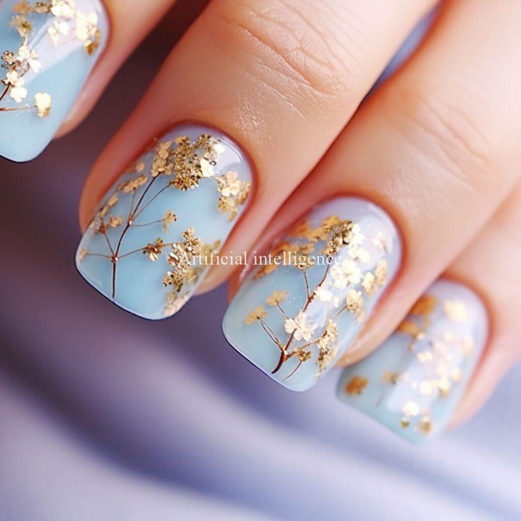 水色・青のネイルをコンセプトにAIイラストツールで架空の画像を生成しました。