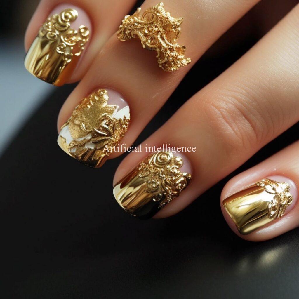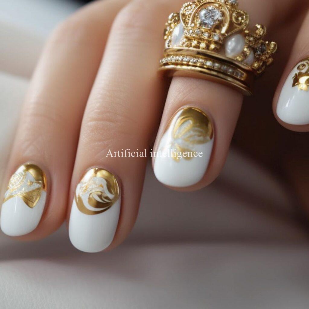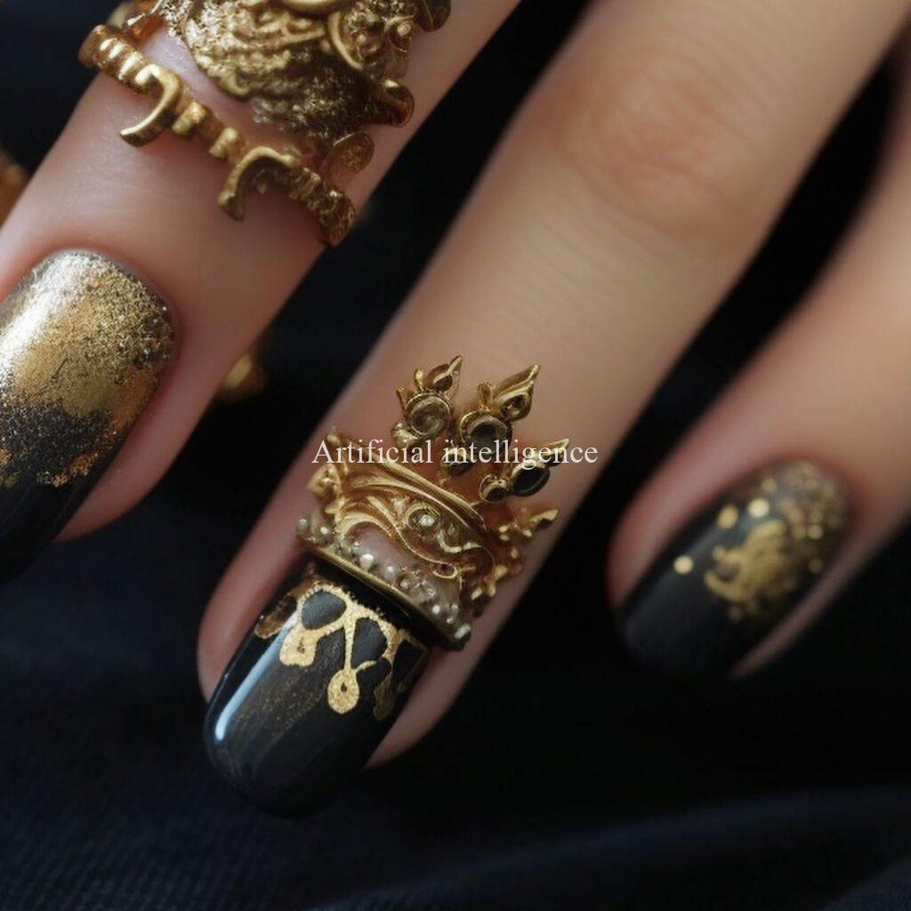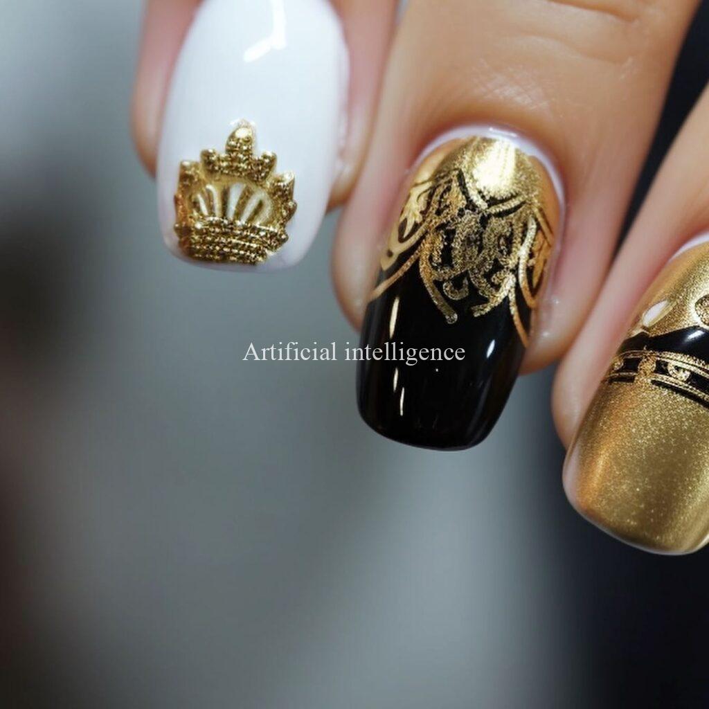 ロイヤルな雰囲気のゴールドネイルをコンセプトにAIイラストツールで架空の画像を生成しました。