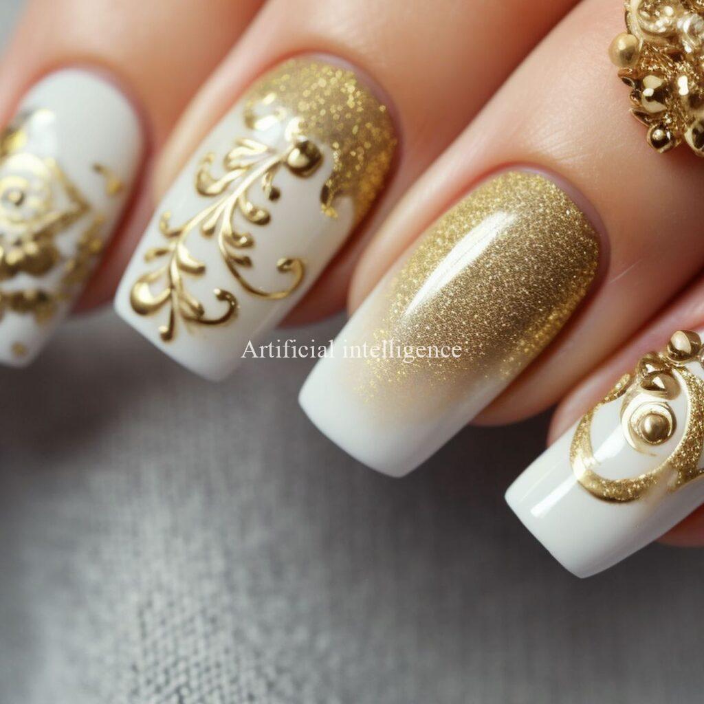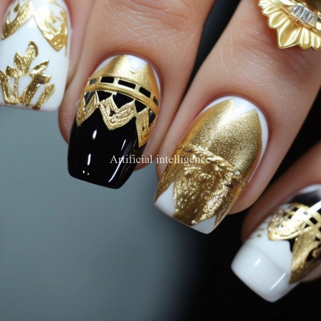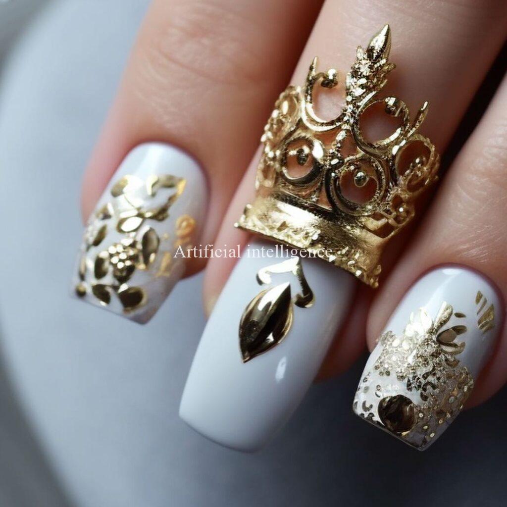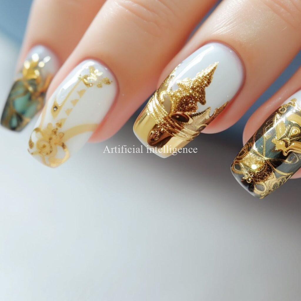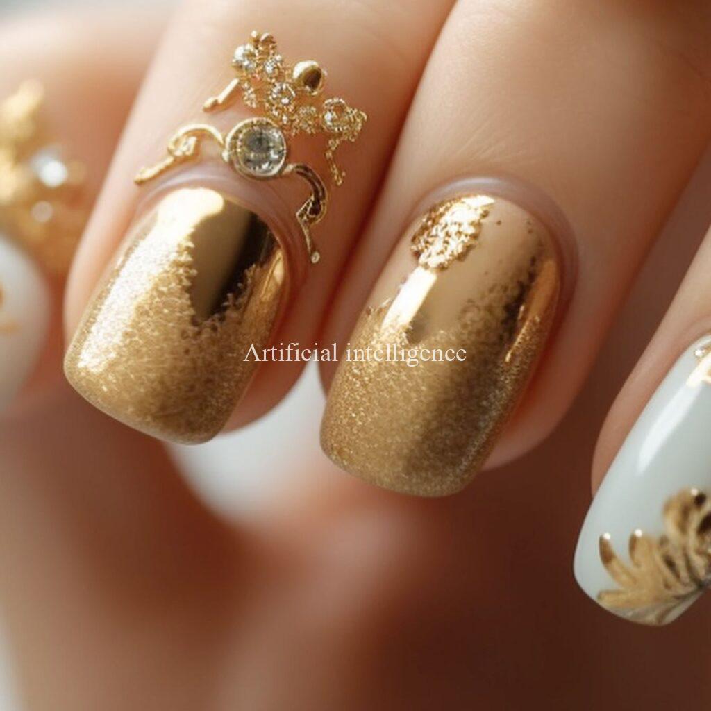 ロイヤルな雰囲気のゴールドネイルをコンセプトにAIイラストツールで架空の画像を生成しました。