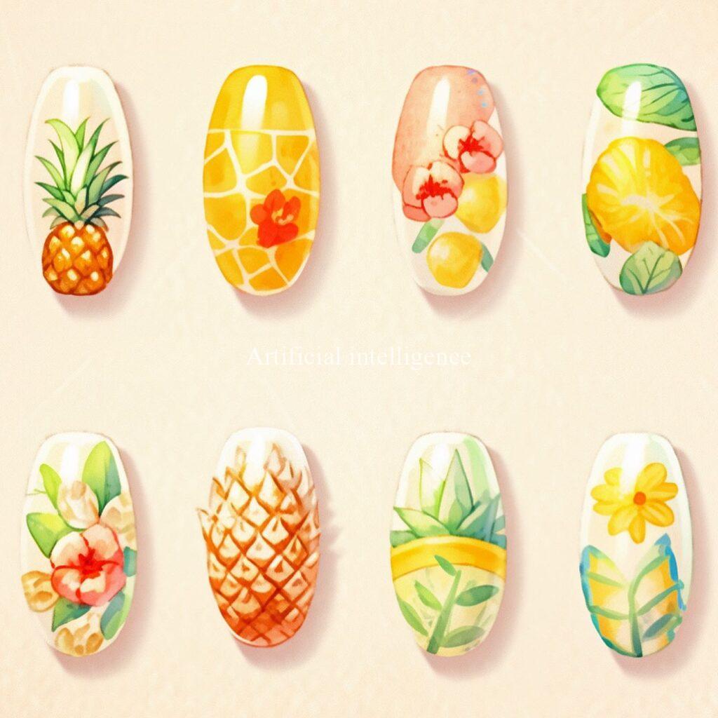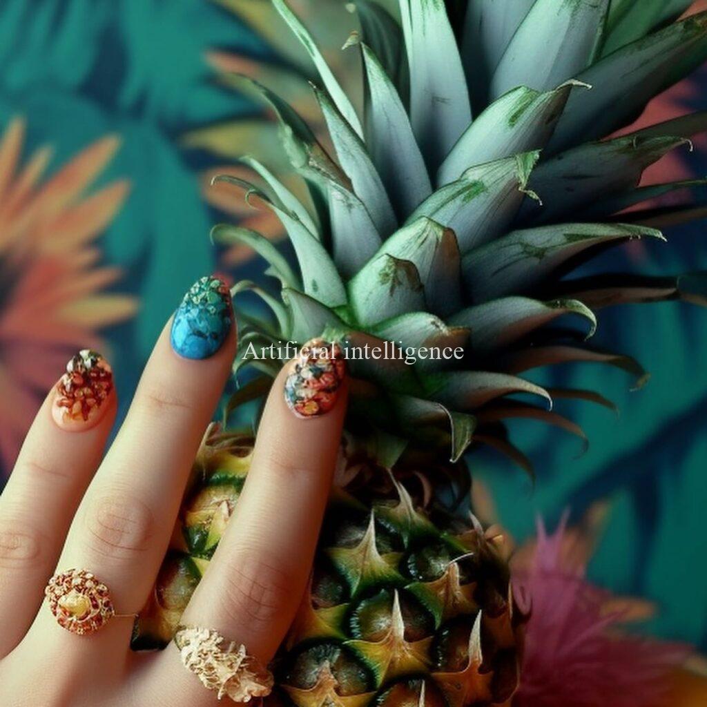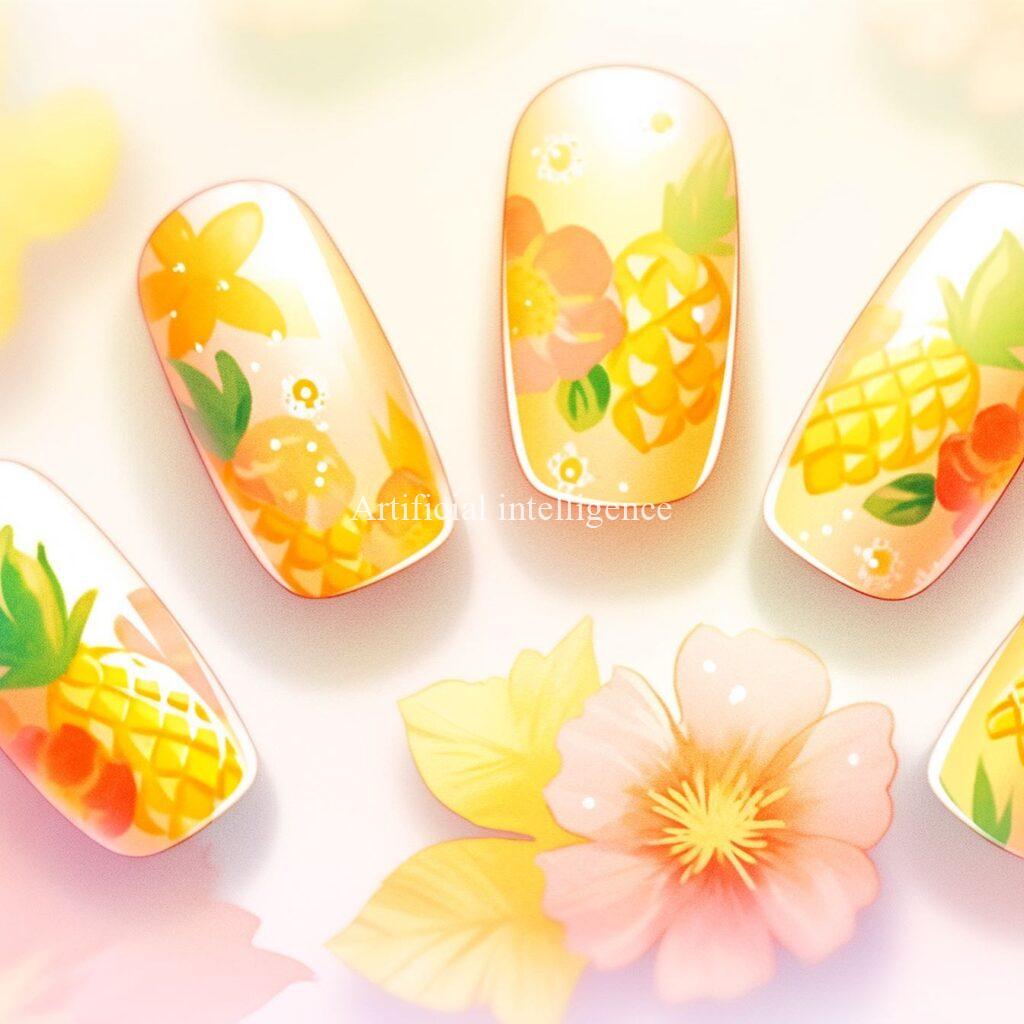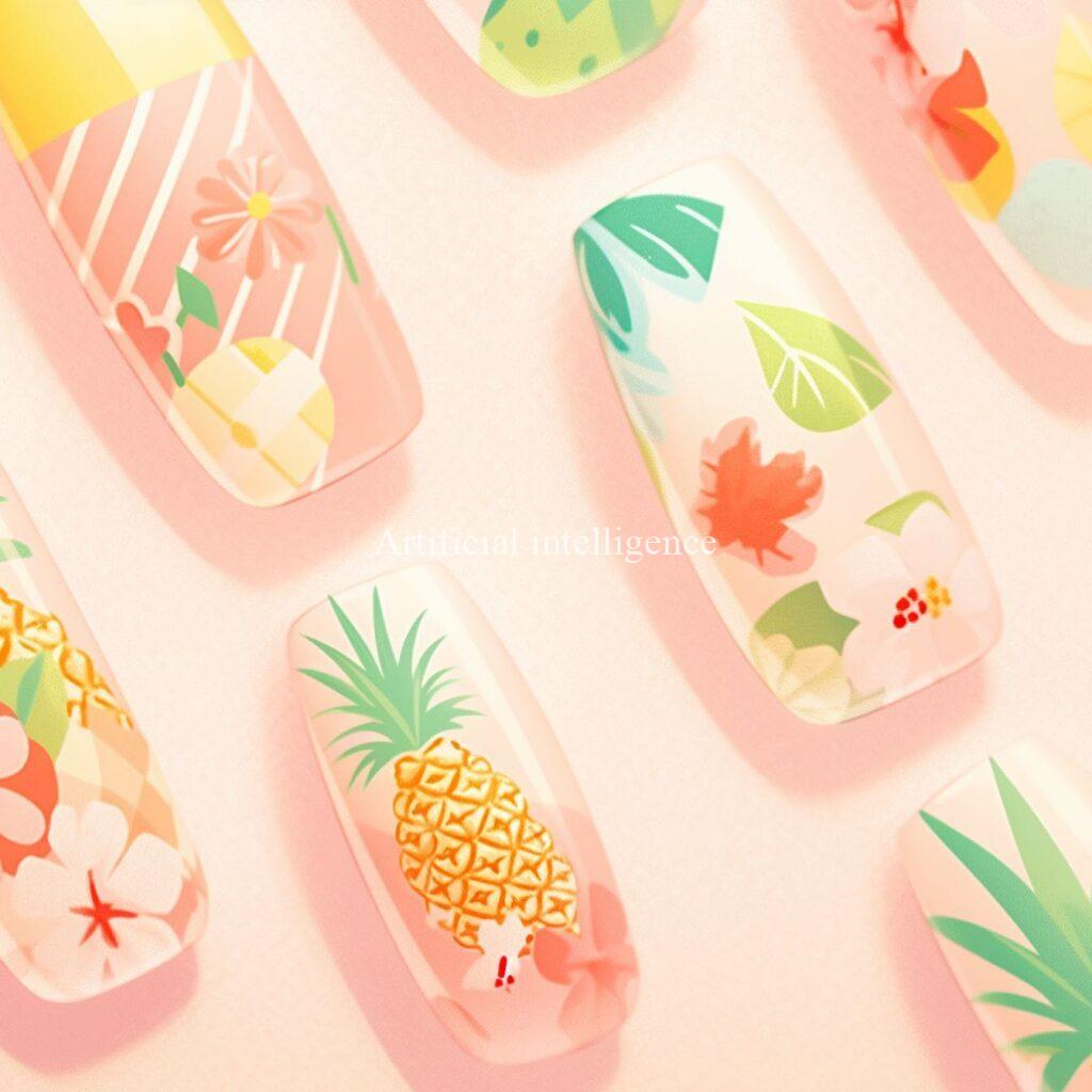 アロハなパインネイル 🍍🌺をコンセプトにAIイラストツールで架空の画像を生成しました。