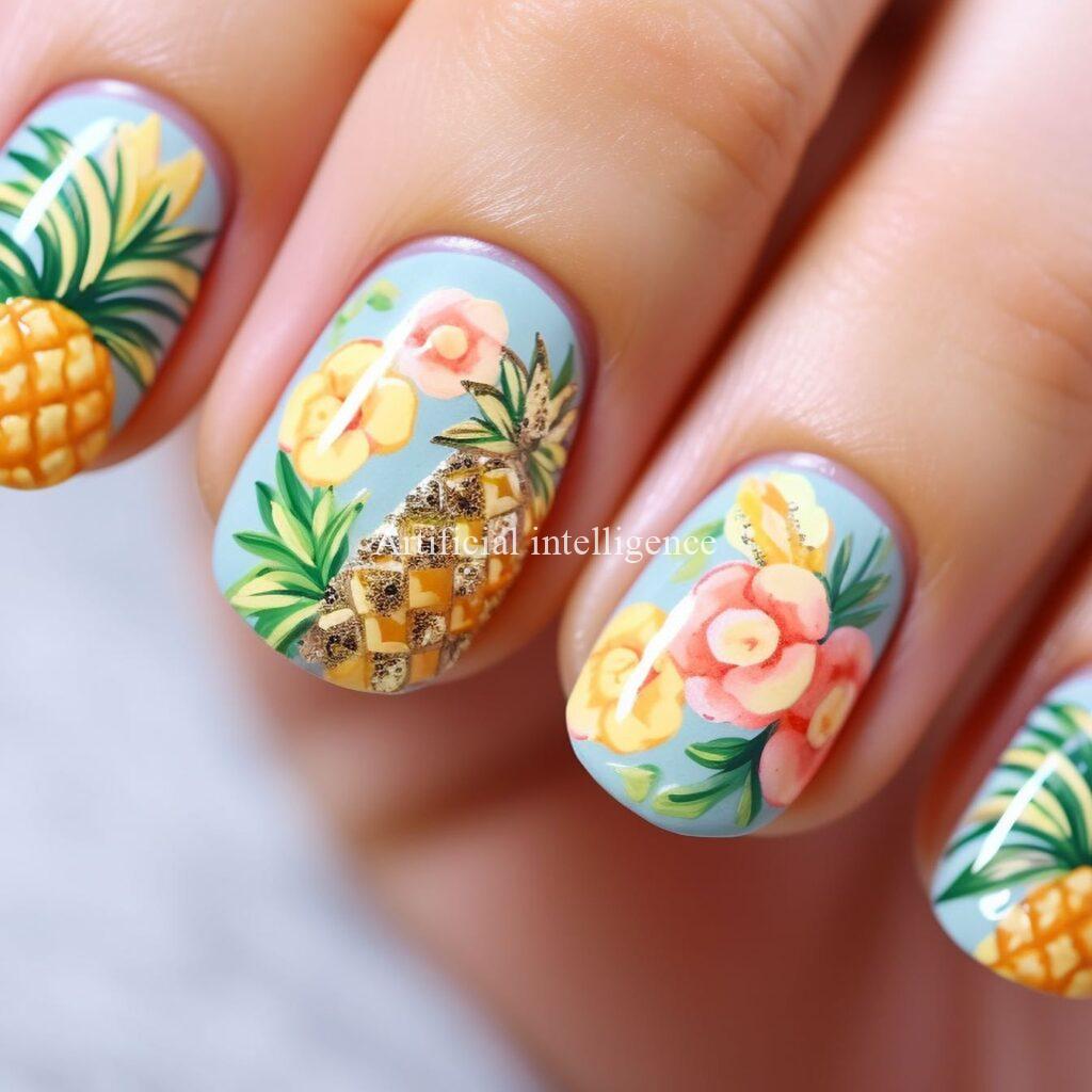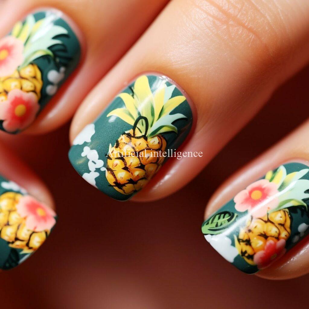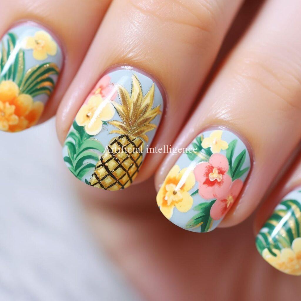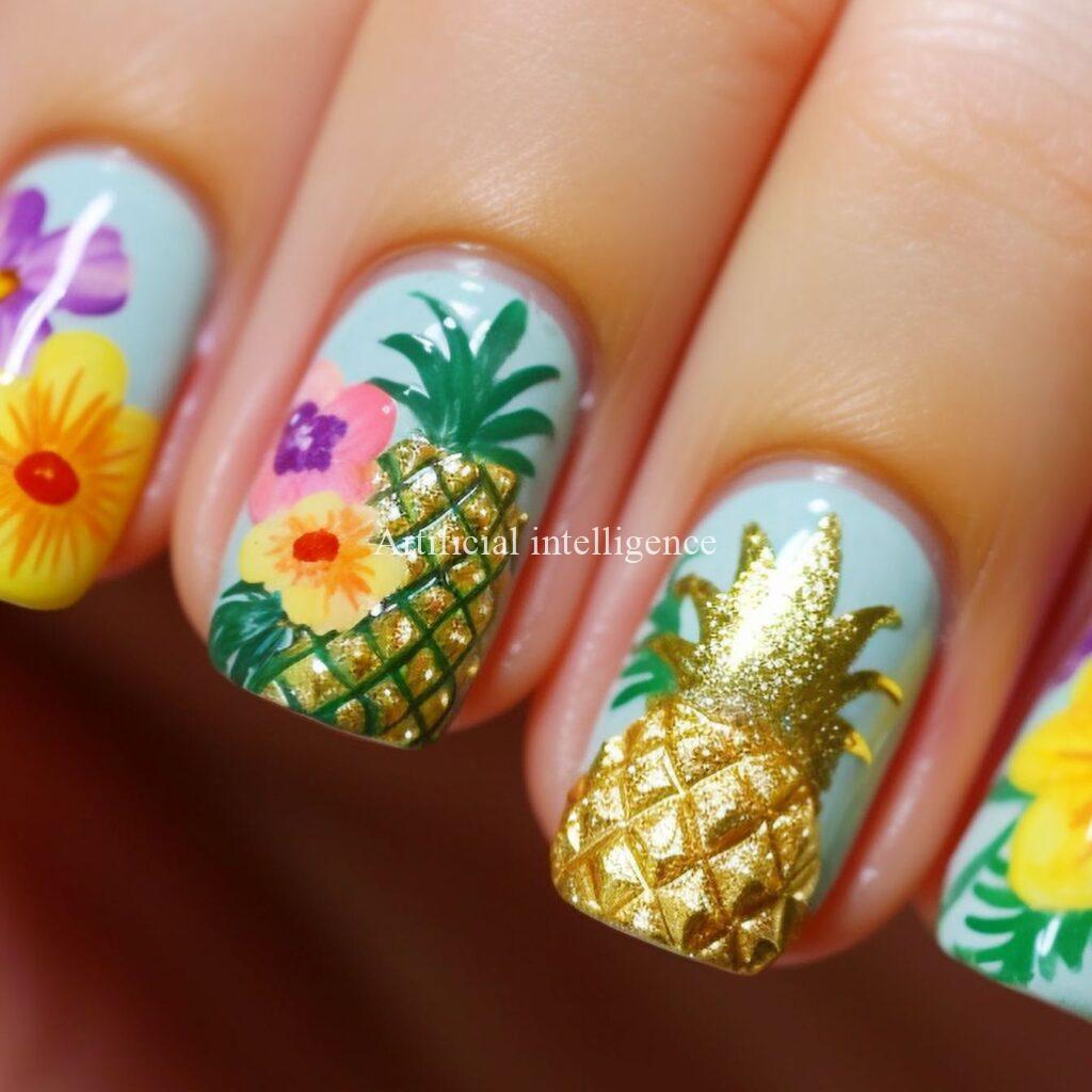 アロハなパインネイル 🍍🌺をコンセプトにAIイラストツールで架空の画像を生成しました。