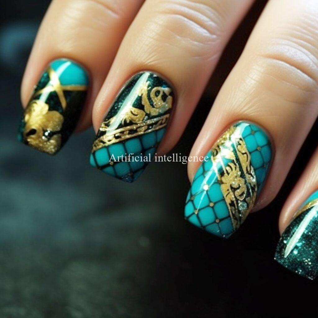 turquoise nails by AI